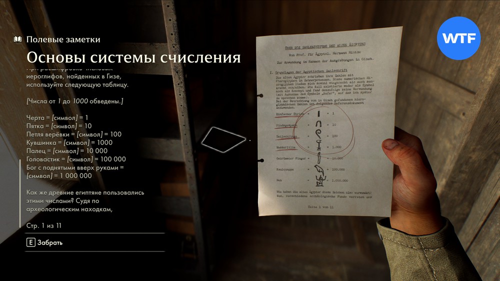 На стеллаже рядом вы найдете заметку с Основами системы счисления, которая подробно рассказывает о системе записи чисел в Древнем Египте, а также дает вам ключ к расшифровке кода в виде обведенных чисел: