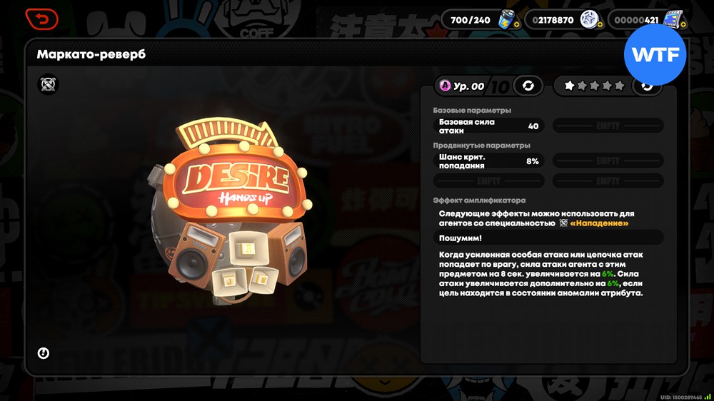 - Дополнительно увеличивает силу атаки на 6-9,6%, если цель при этом находится в состоянии аномалии атрибута.