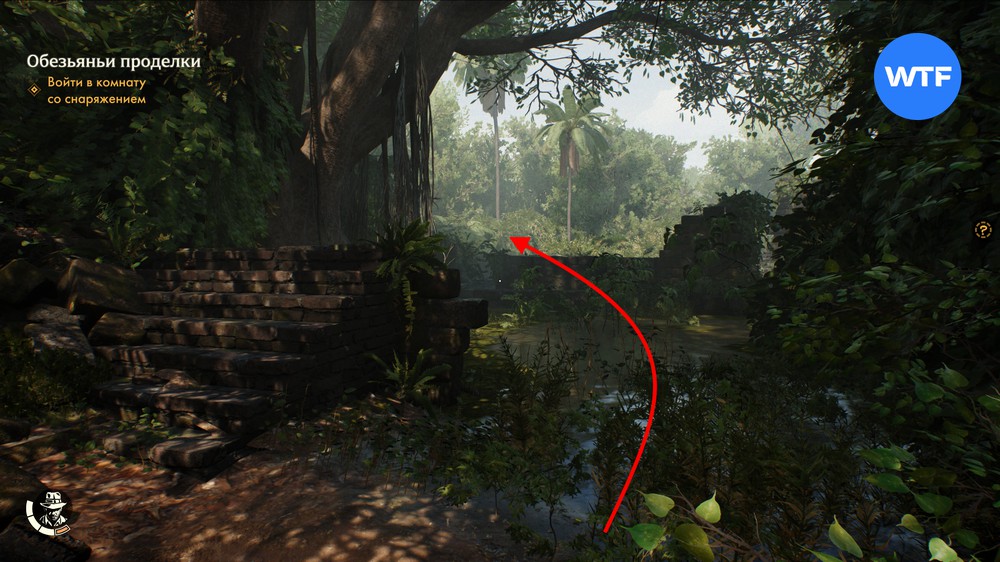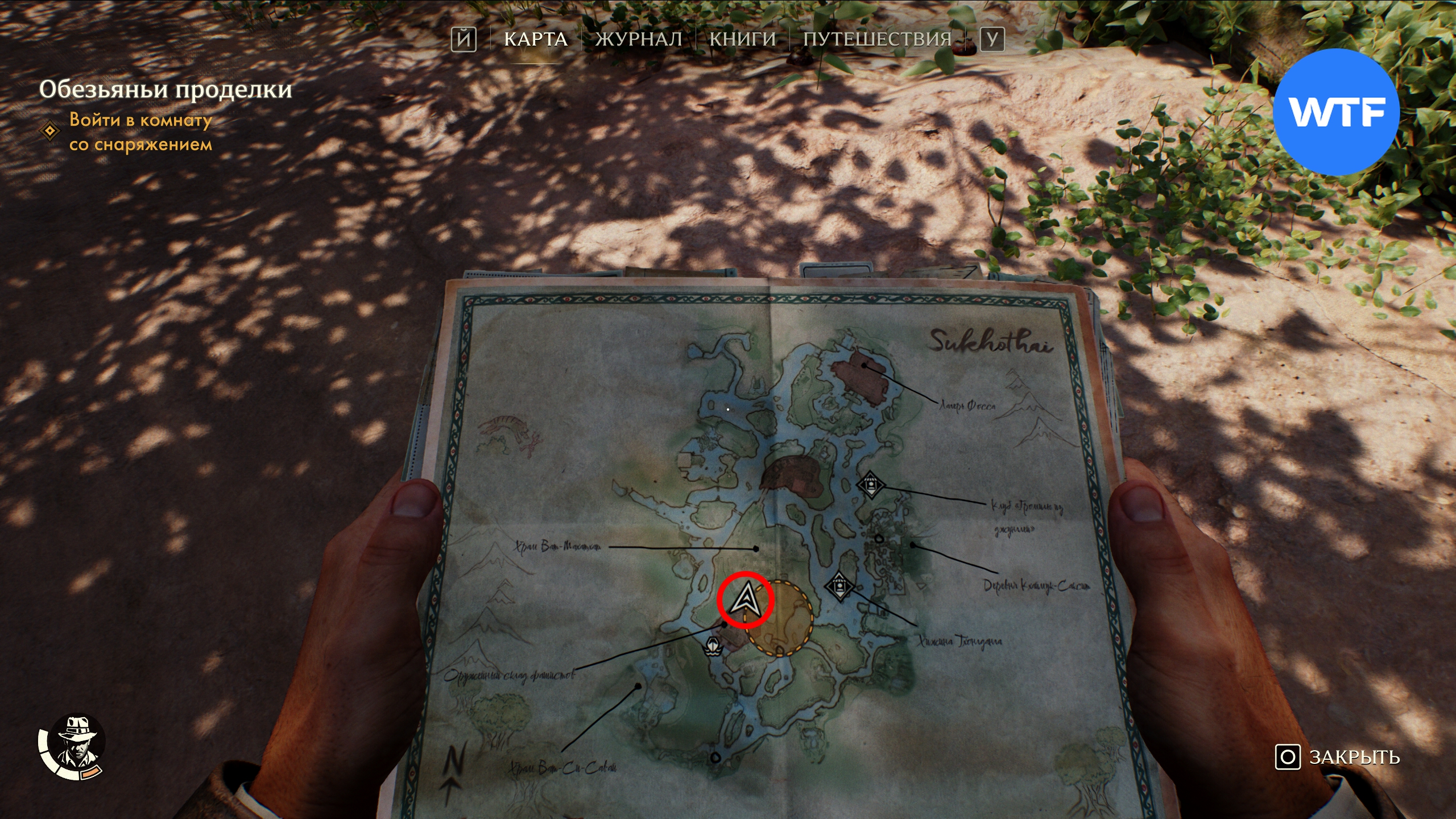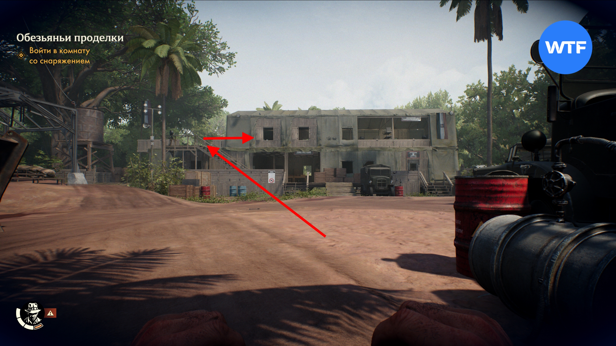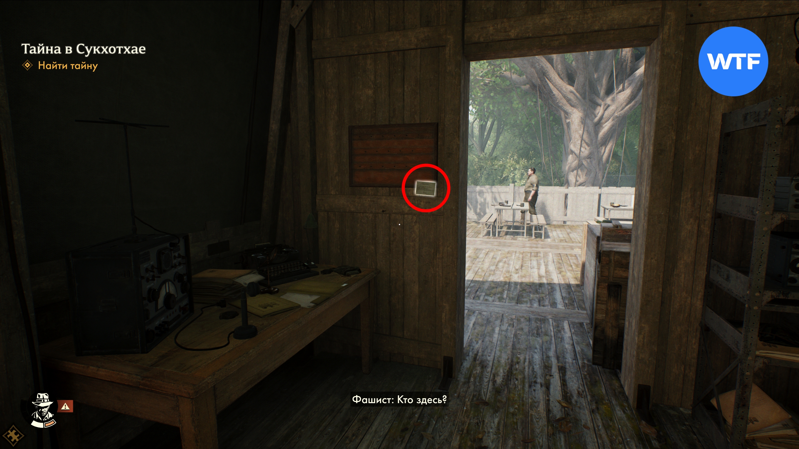 Для открытия тайны «Обезьяньи проделки», отправляйтесь на Оружейный склад фашистов в Сукхотхае. Поднимитесь на второй этаж большого двухэтажного здания, зайдите внутрь и осмотритесь.