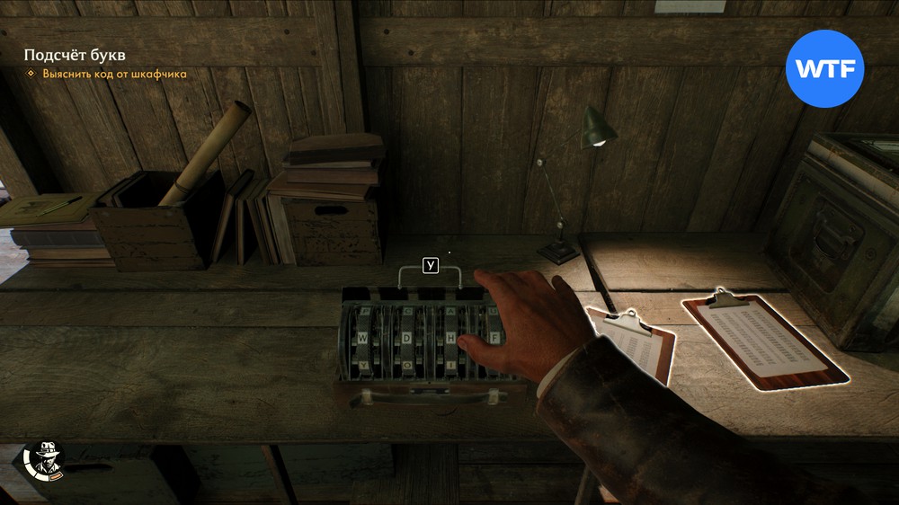 Чтобы выяснить код от шкафчика, подберите четыре кодовых диска со стола и вставьте их в шифровальную машину. Принцип у это й задачки точно такой же, как и в шифре капитана, который мы разгадывали на линкоре «Куммец» в Гималаях.