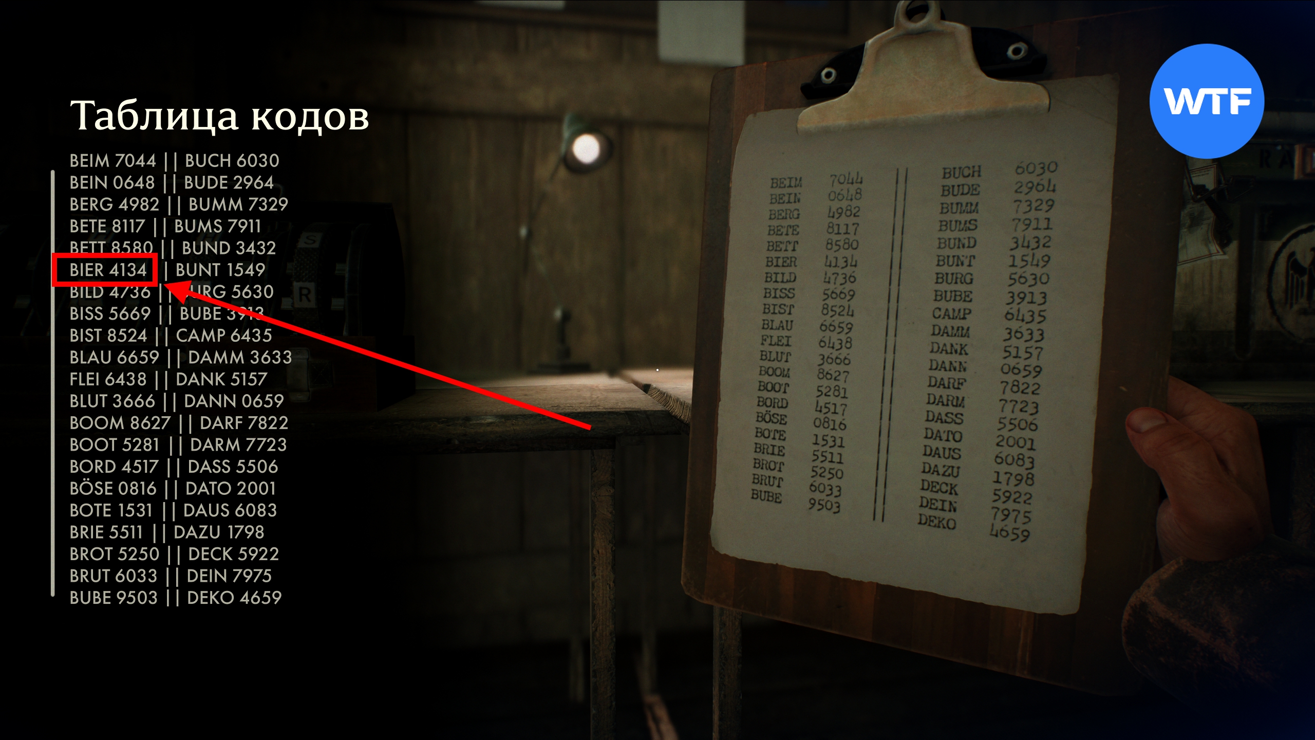 Теперь открываем Таблицу кодов, лежащую на столе рядом, и ищем там подходящее значение. Так мы выясним, что код от шкафчика Бартоломео — 4134. Откройте его и заберите деньги, а также книгу приключений Уличный бой III в награду.