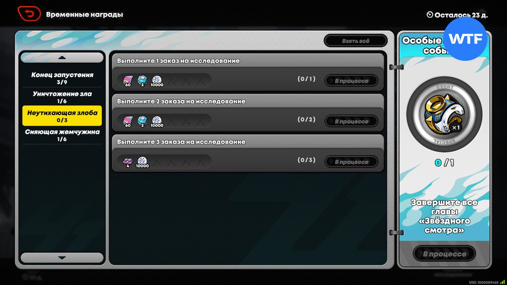 Помимо этого временные награды будут включать полихромы, пропуск в «Хомячью клетку» и другие ресурсы для прокачки агентов. После завершения события записи о нем будут добавлены в «Хроники Риду», однако временные награды перестанут быть доступны.
