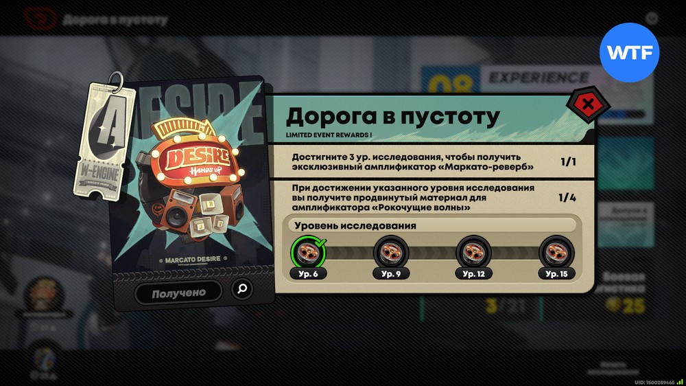 Повышение уровня исследования также позволит вам получить бесплатный амплификатор А-ранга Маркато-реверб, а также материалы для его продвижения. Сам амплификатор выдают на 3 уровне, а для получения Рокочущих вол придется прокачаться до 15 уровня.