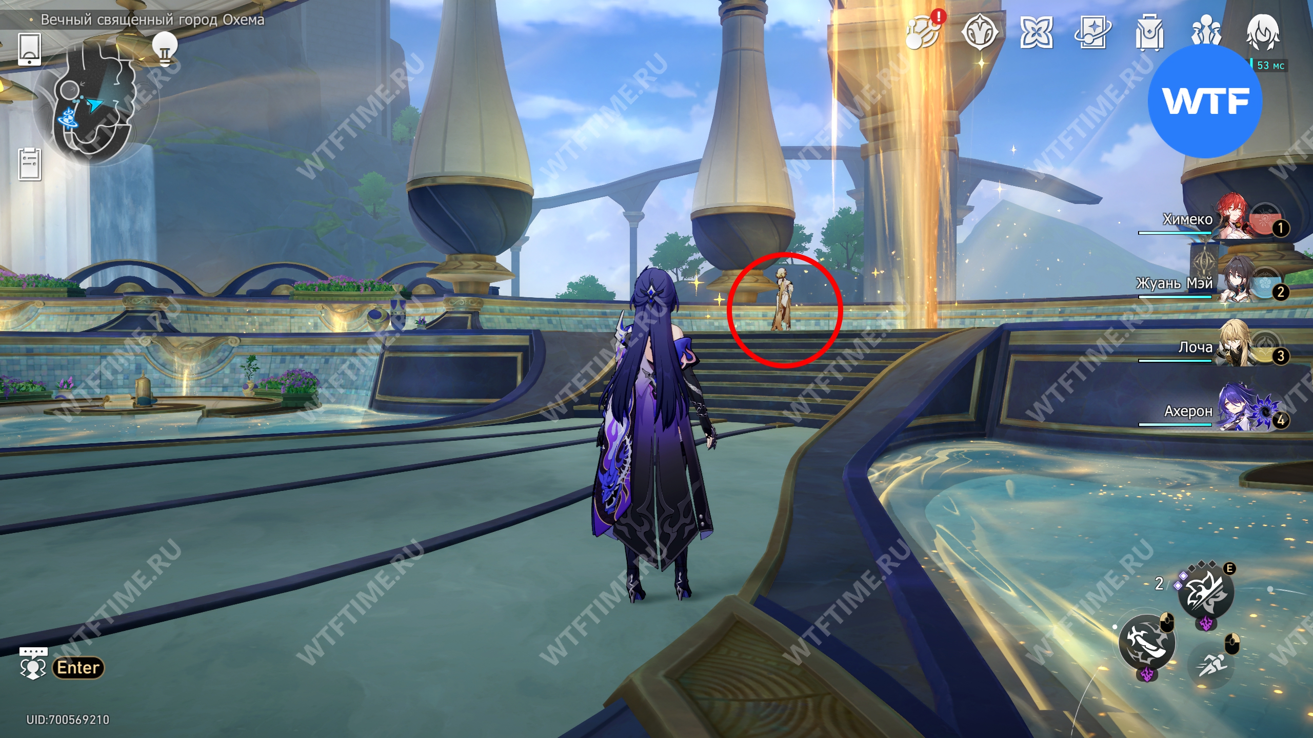 Впервые разрушив одну из круглых статуй в Вечном священном городе Охема вы также получите 1 осколок памяти. Одну из нужных статуй можно найти к юго-востоку от пространственного якоря «Мраморный дворец».