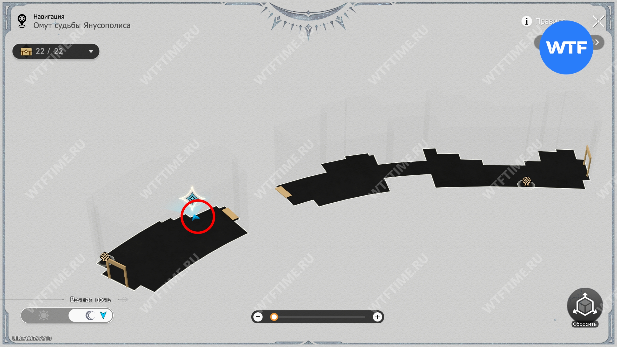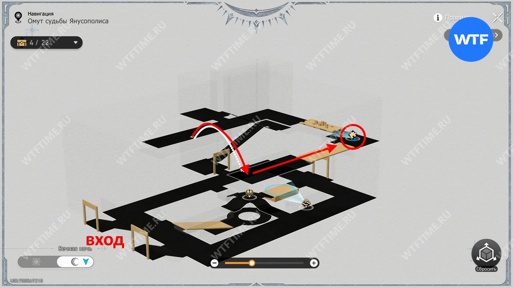 Эту плиту вы найдете в области с 3D-навигацией к северо-востоку от якоря «Заброшенная тропа судьбы». Убедитесь, что находитесь в режиме «Вечной ночи» и поднимитесь на верхний этаж, пройдя через двери в дальнем левом углу зала.