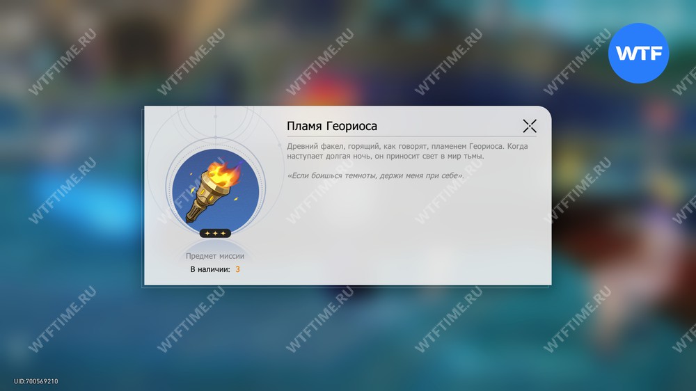 Если дать огоньку Геориоса правильный предмет, он разгорится сильнее, а вы получите Пламя Геориоса в награду. Несмотря на то что оно помечено, как предмет миссии, на данный момент его предназначение не известно.