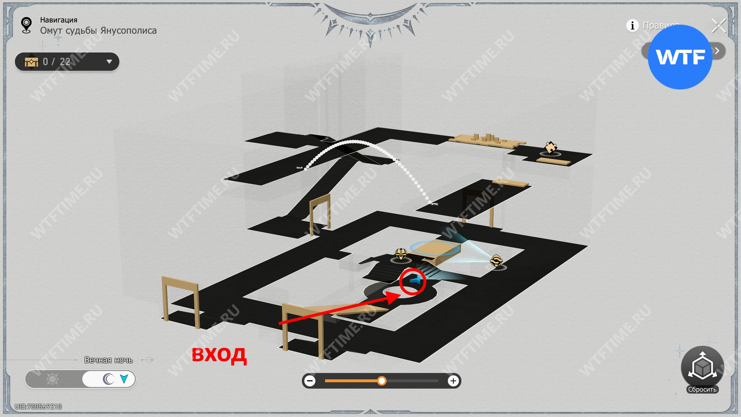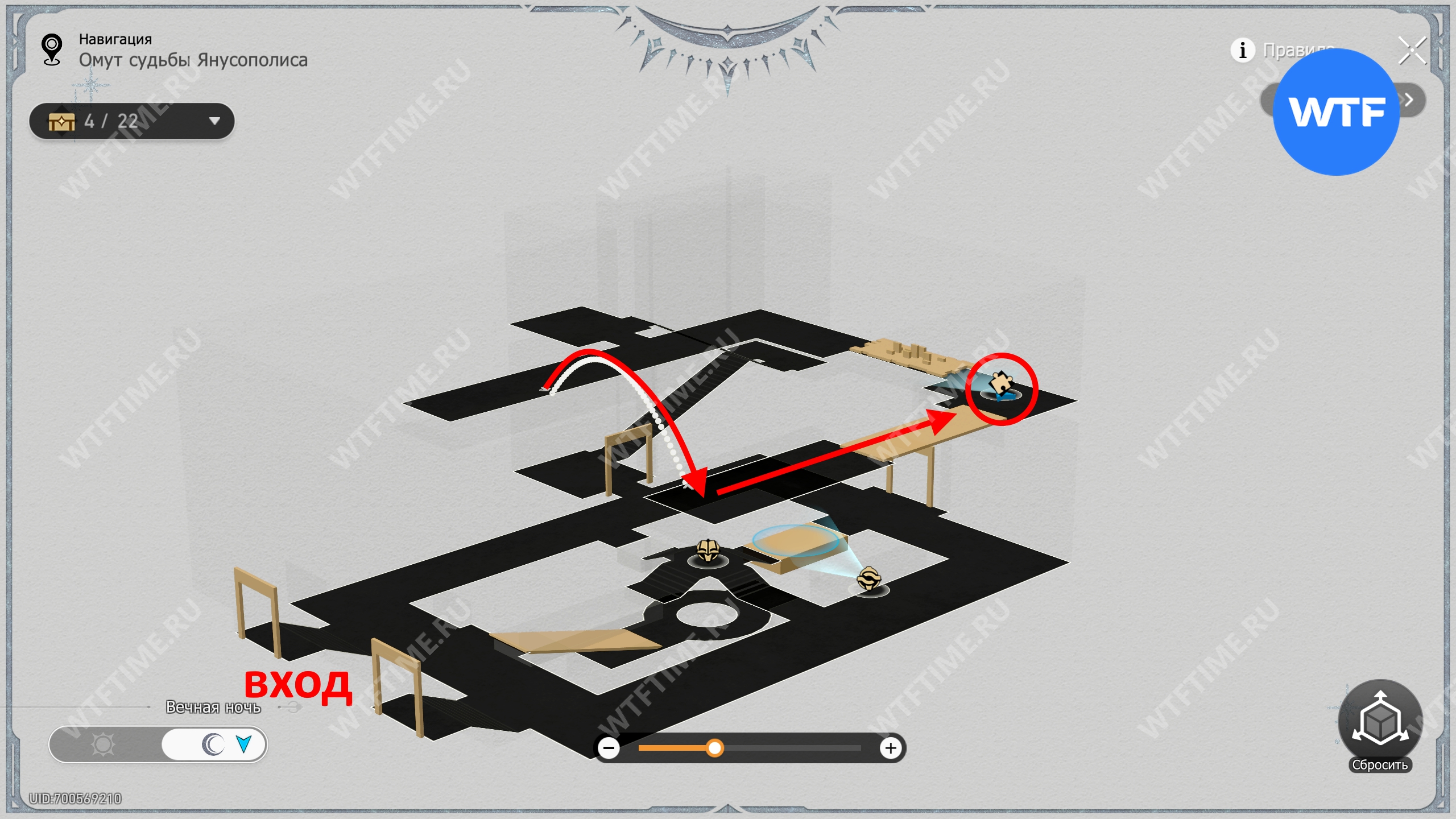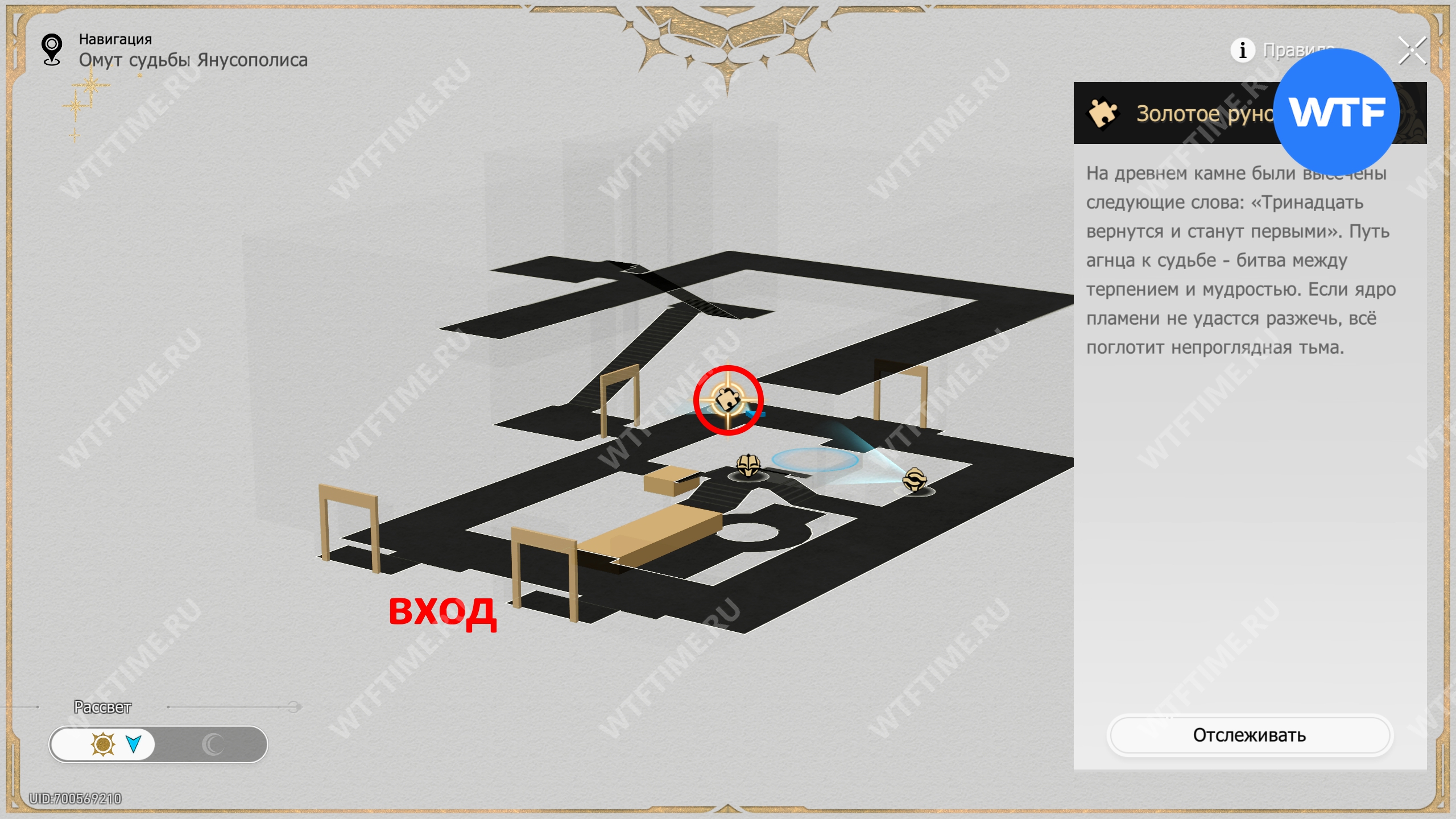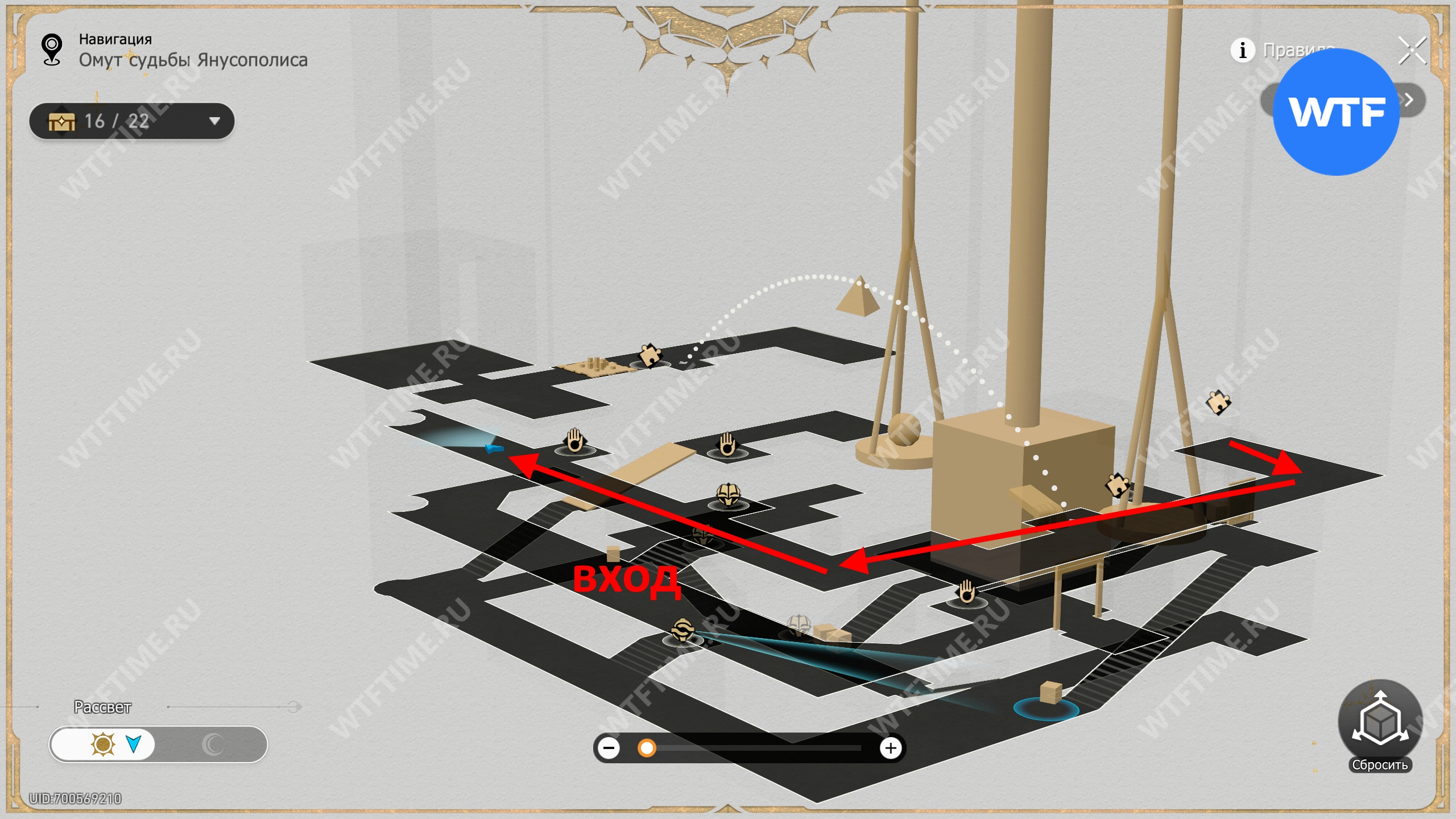 От пространственного якоря «Врата вечного сна» войдите в область с 3D-навигацией. На третьем этаже этого зала есть три плиты пророчества. Чтобы туда попасть, используйте Книгу чудес и переключитесь в режим «Рассвет».