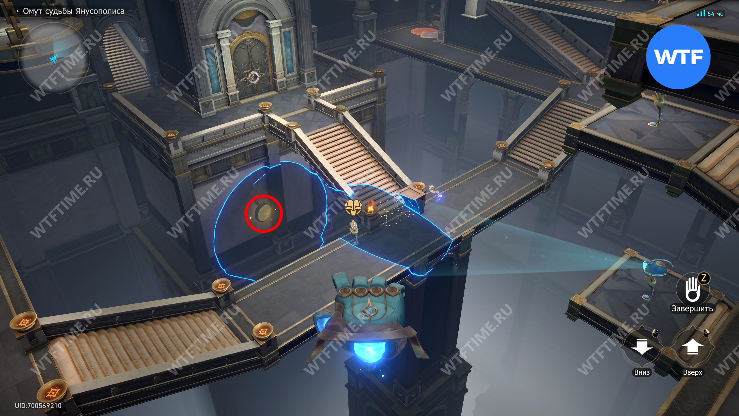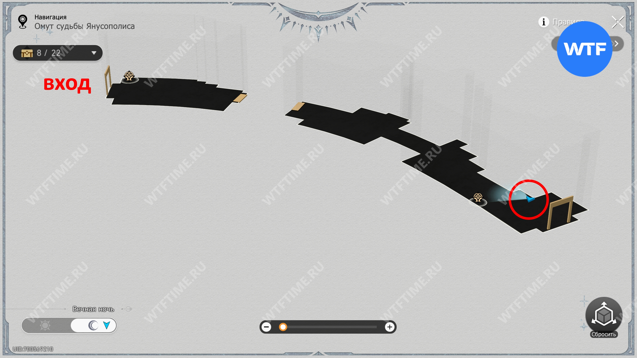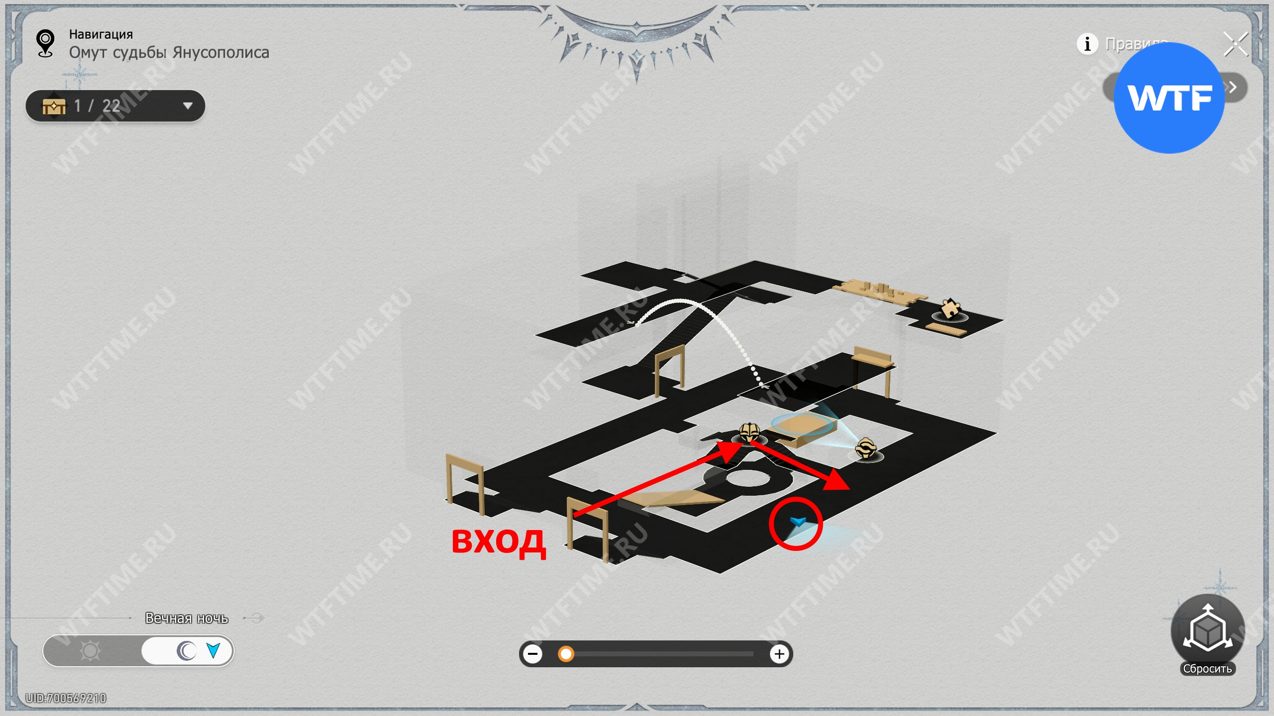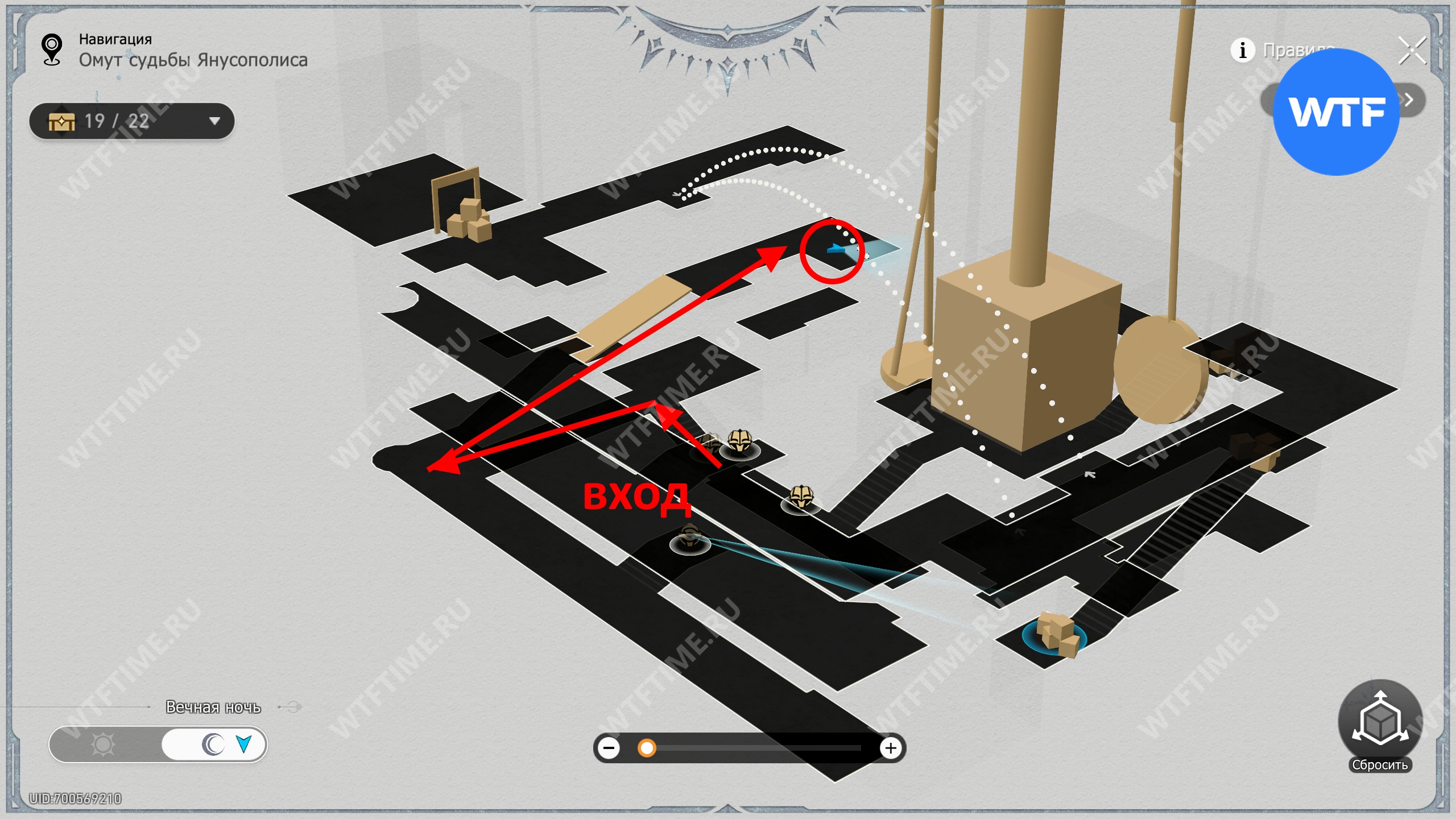 От пространственного якоря «Врата вечного сна» войдите в область с 3D-навигацией. На третьем этаже этого зала есть три плиты пророчества. Чтобы туда попасть, используйте Книгу чудес и переключитесь в режим «Рассвет».