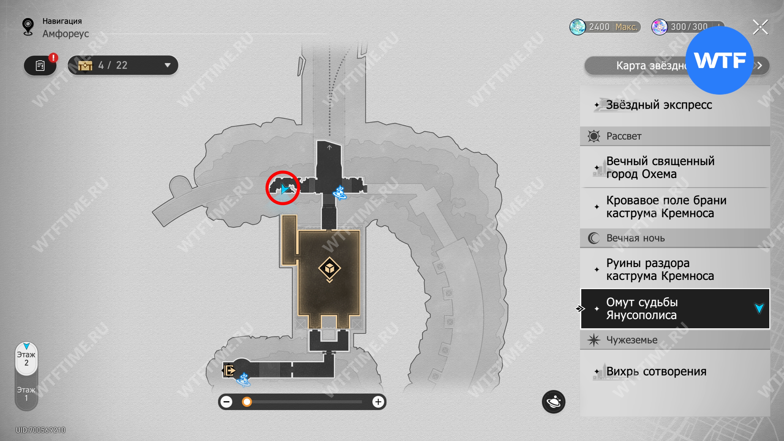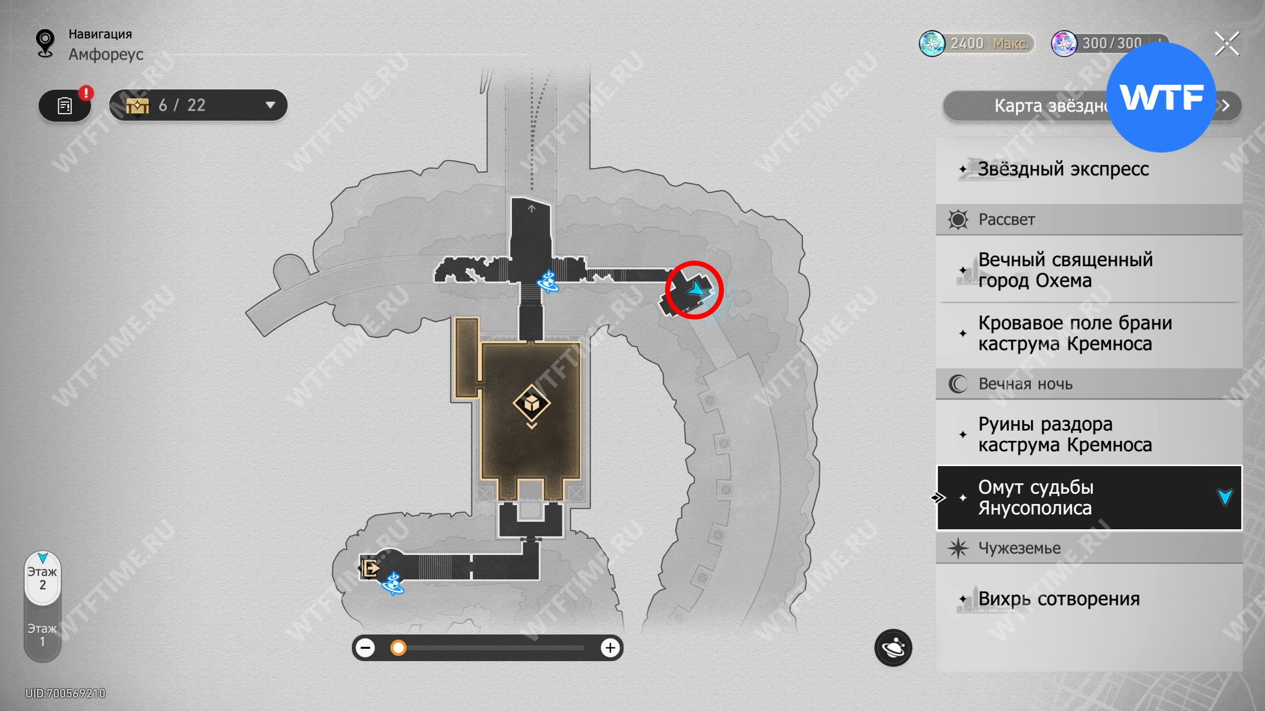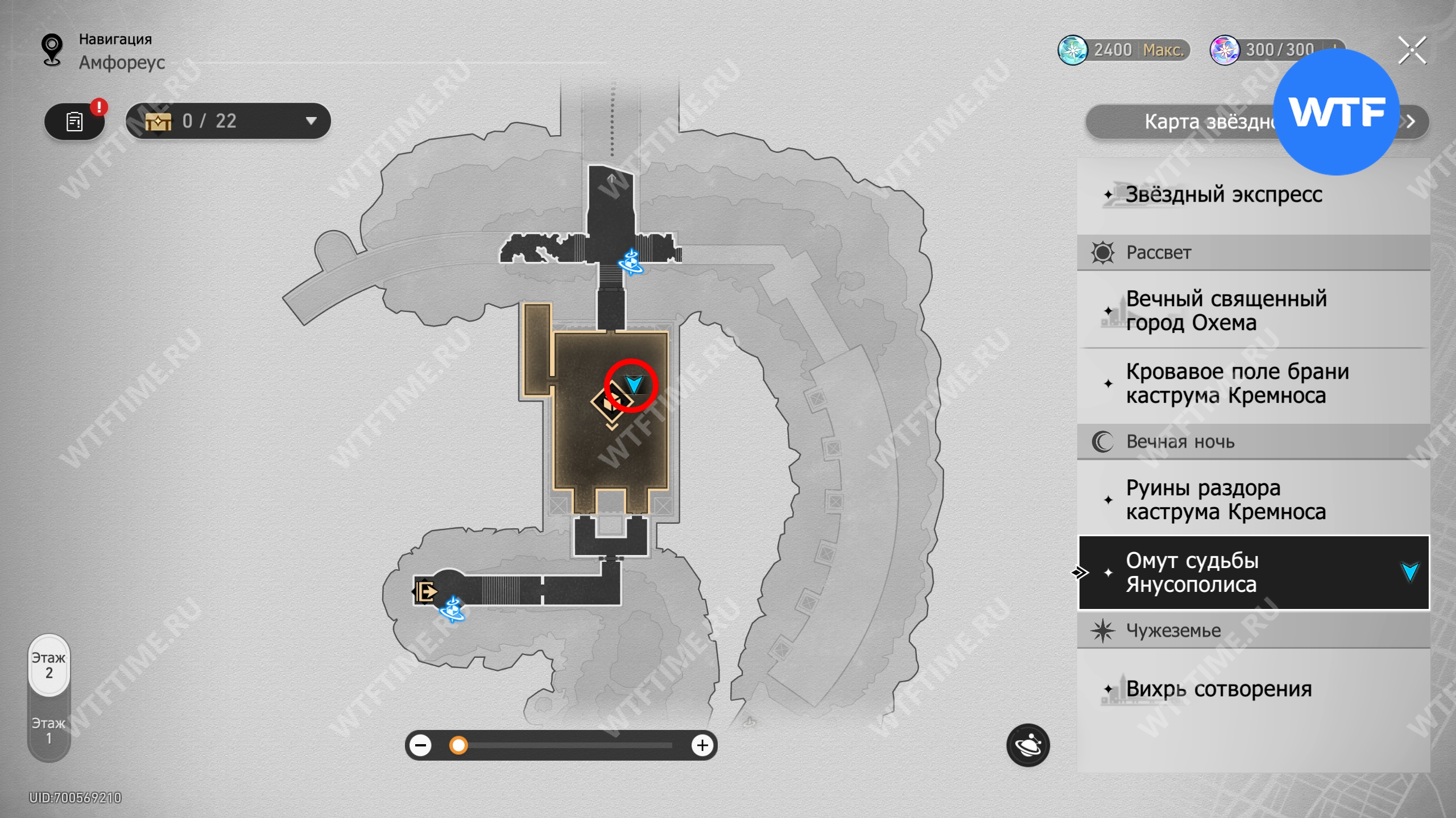 Вы окажетесь в комнате с точкой быстрого перемещения «Гробница прерванного сна», где Первопроходец и Дань Хэн впервые высадились на Амфореусе. Плита пророчества без рисунка будет прямо перед вами. Пошаговое решение головоломки показано в галерее ниже.