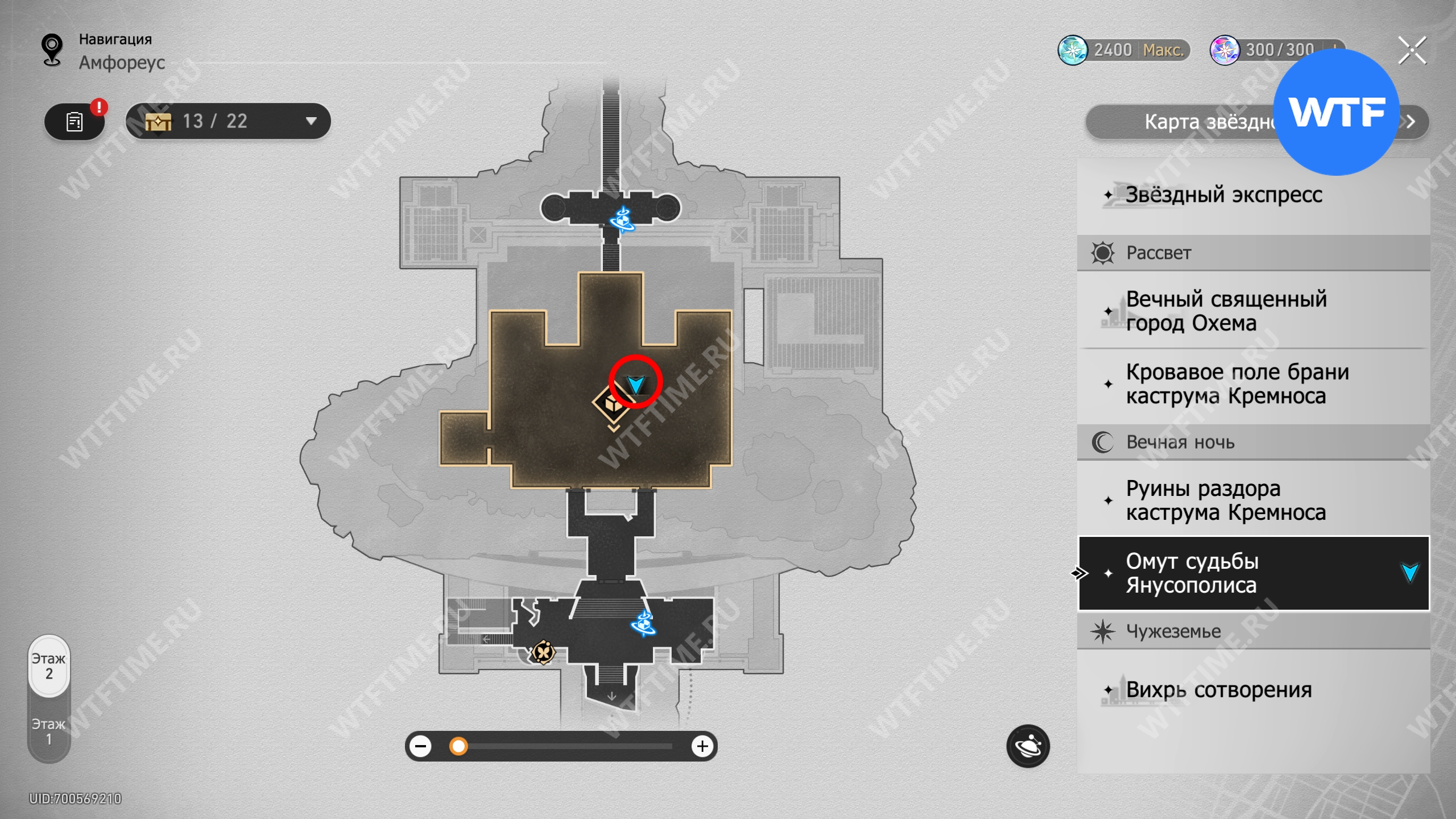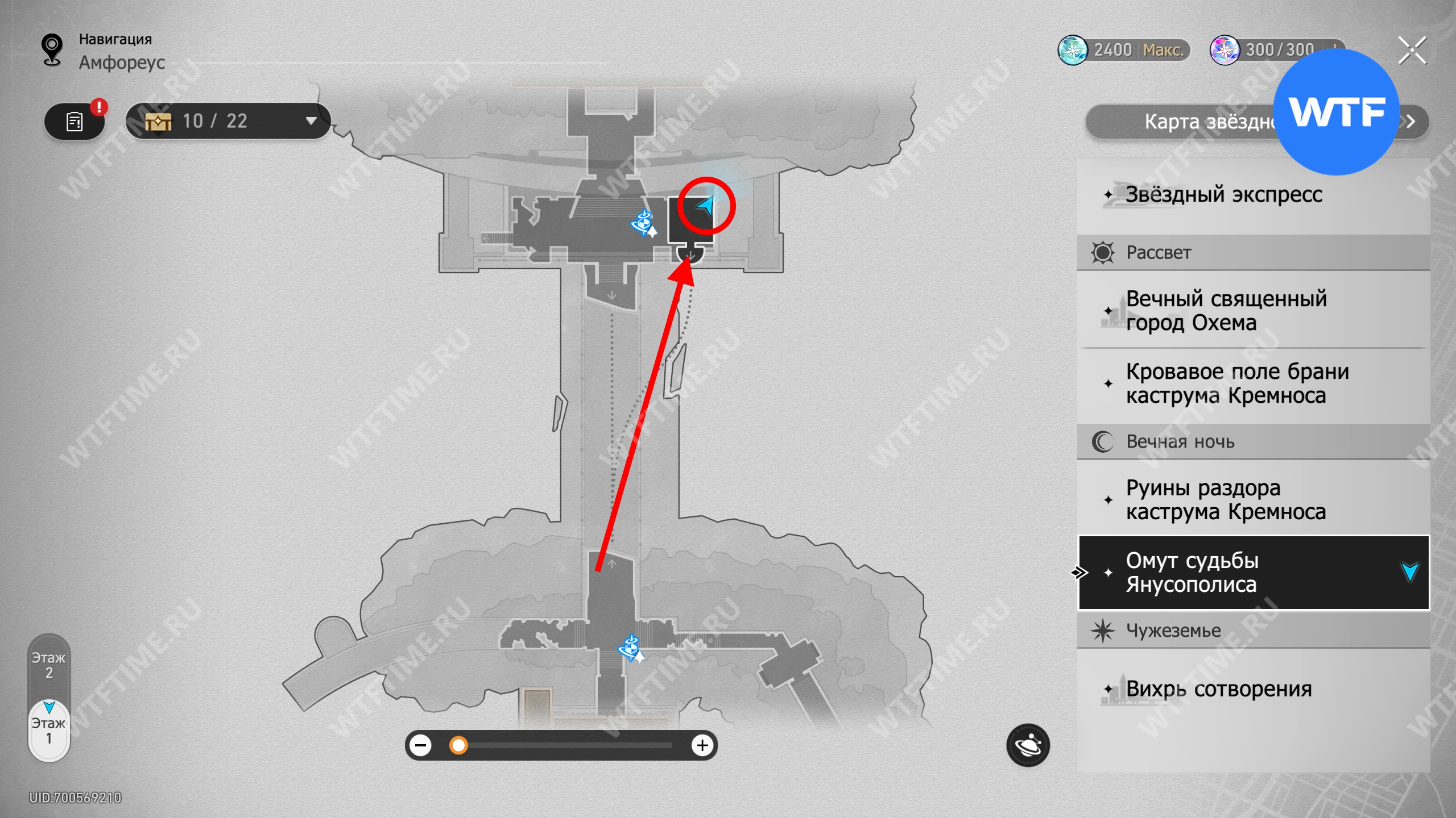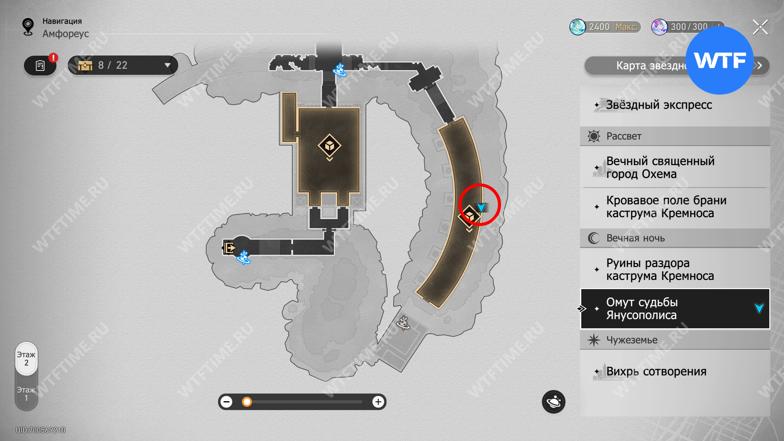 Вы окажетесь в комнате с точкой быстрого перемещения «Гробница прерванного сна», где Первопроходец и Дань Хэн впервые высадились на Амфореусе. Плита пророчества без рисунка будет прямо перед вами. Пошаговое решение головоломки показано в галерее ниже.