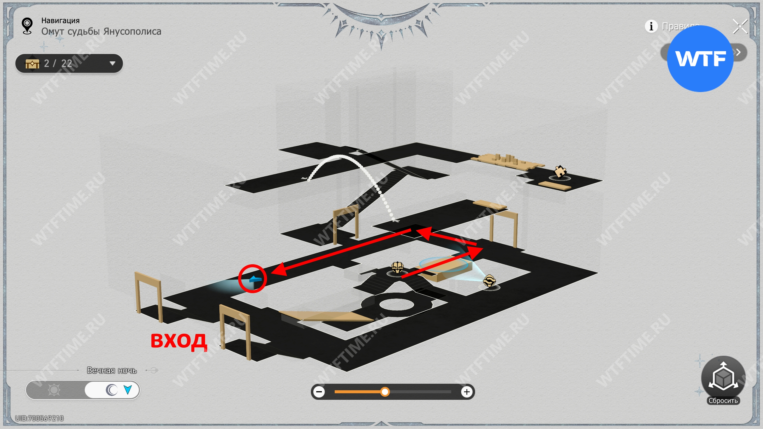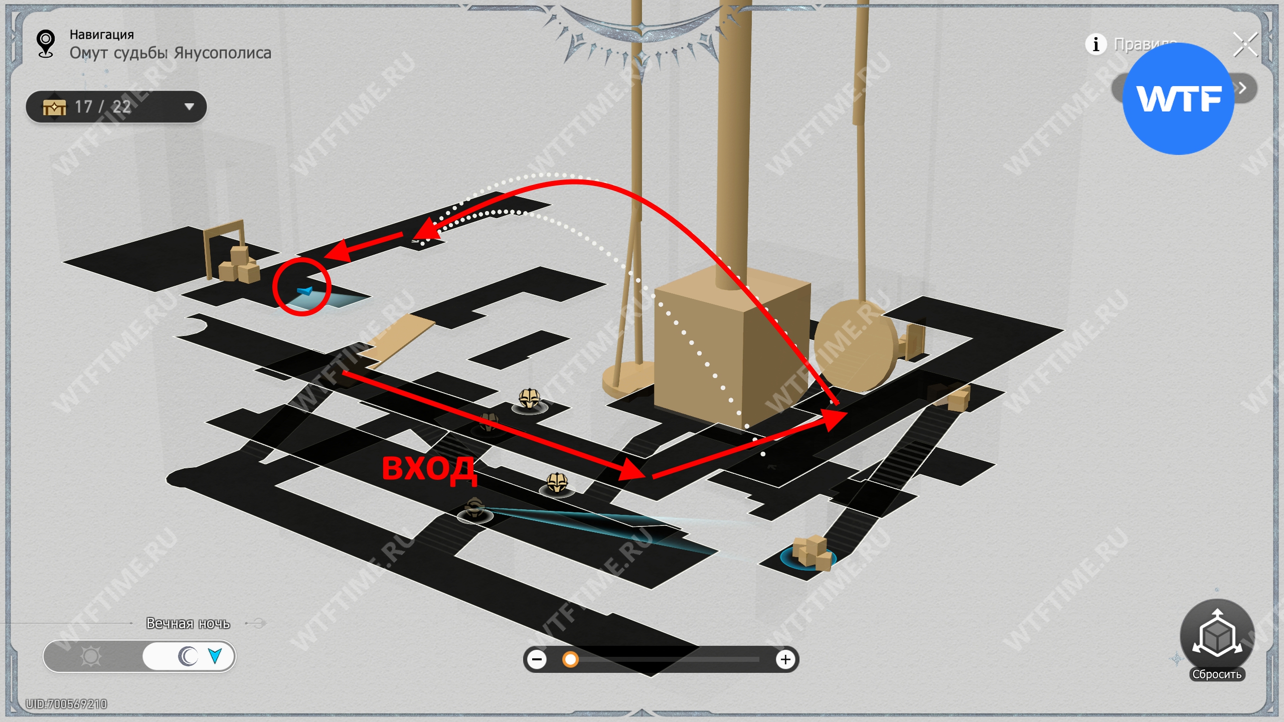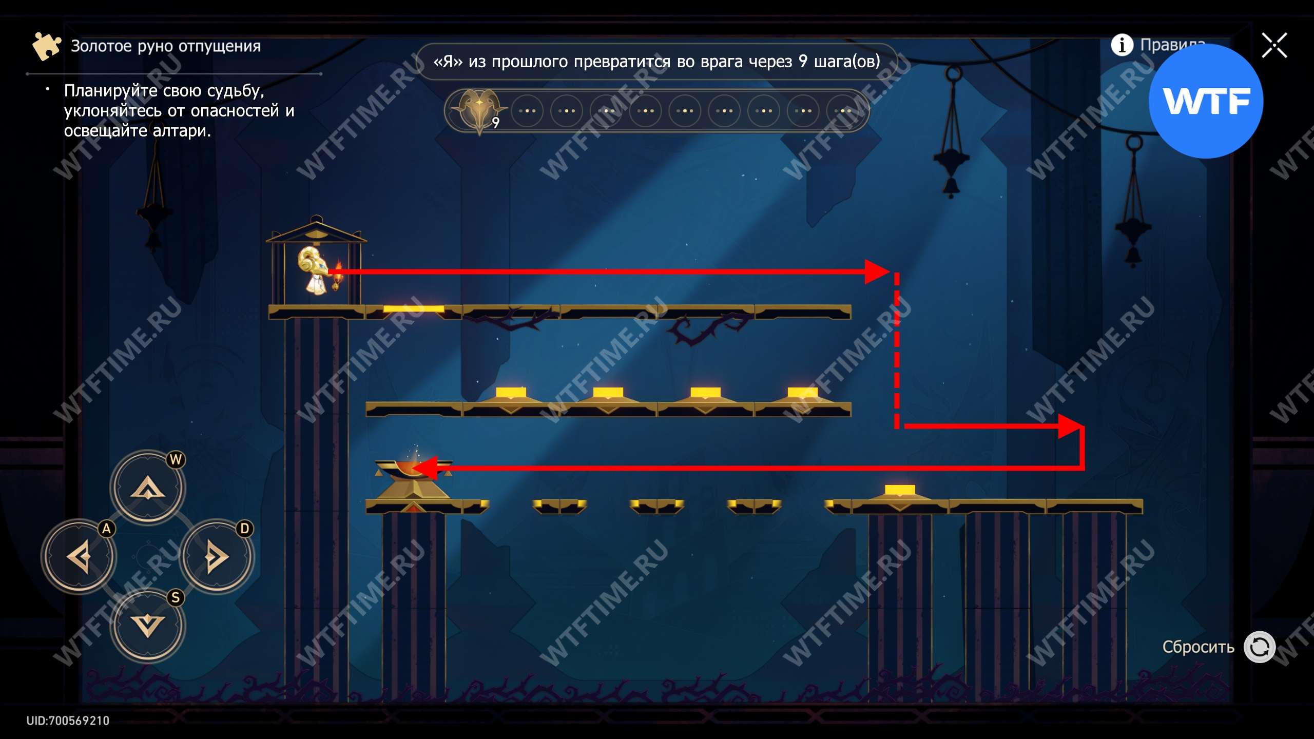 Вы окажетесь возле пространственного якоря «Гробница прерванного сна», а золотое руно отпущения будет прямо перед вами. Чтобы пройти это испытание, двигайтесь следующим образом: