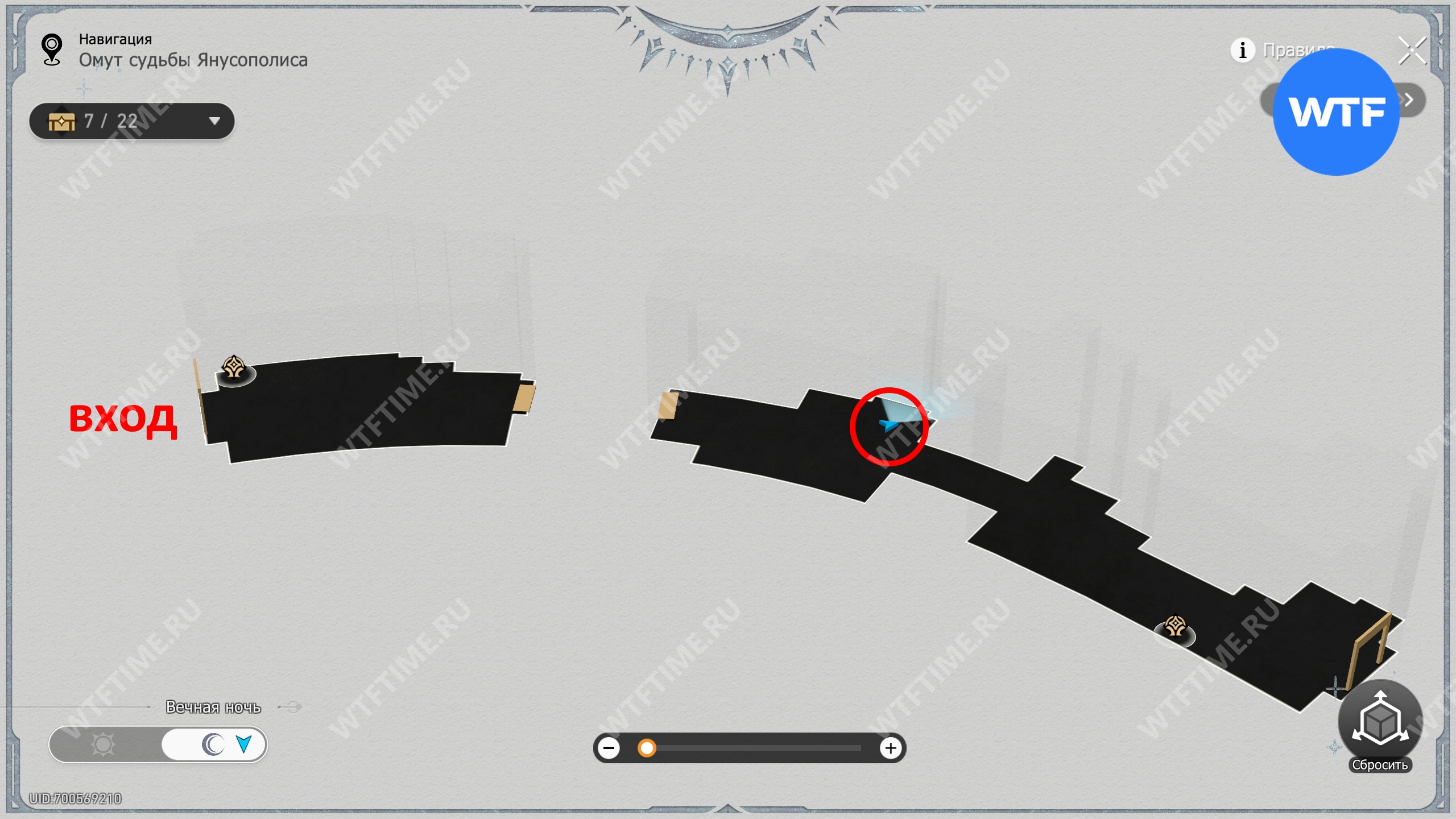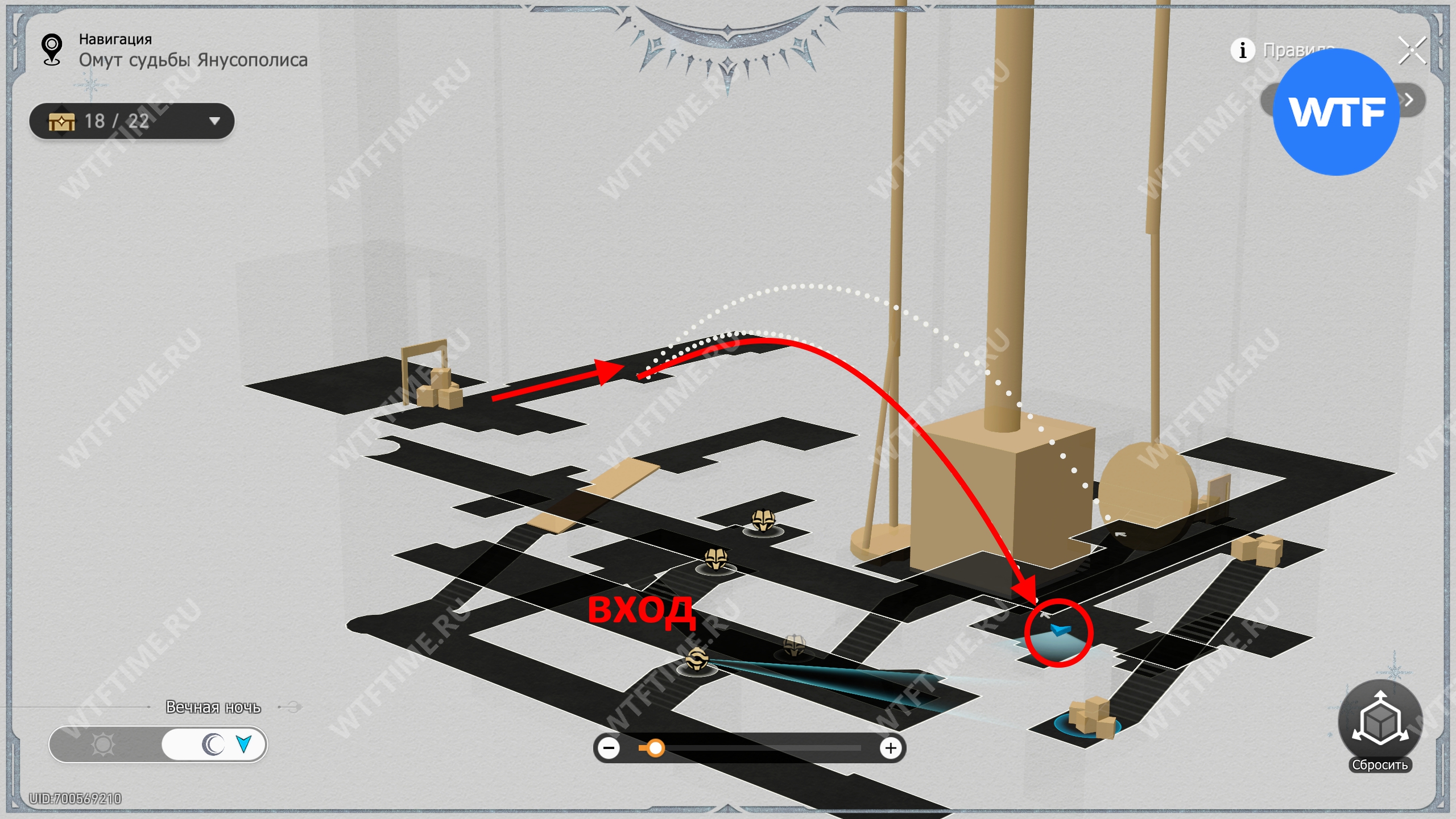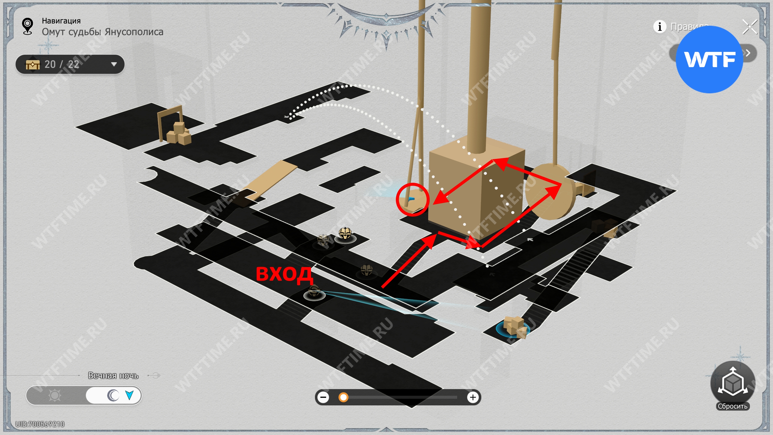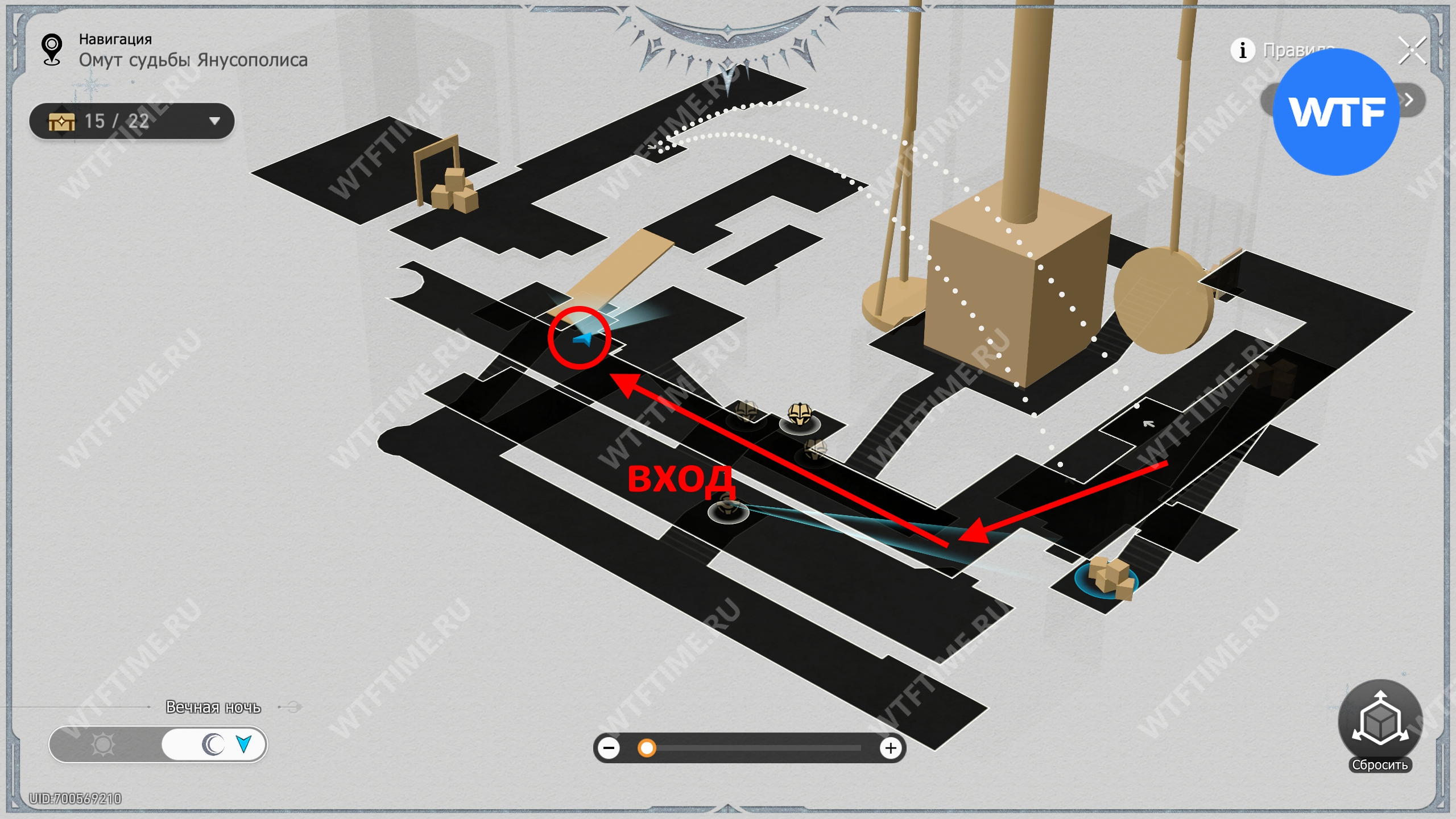 Вы окажетесь возле пространственного якоря «Гробница прерванного сна», а золотое руно отпущения будет прямо перед вами. Чтобы пройти это испытание, двигайтесь следующим образом: