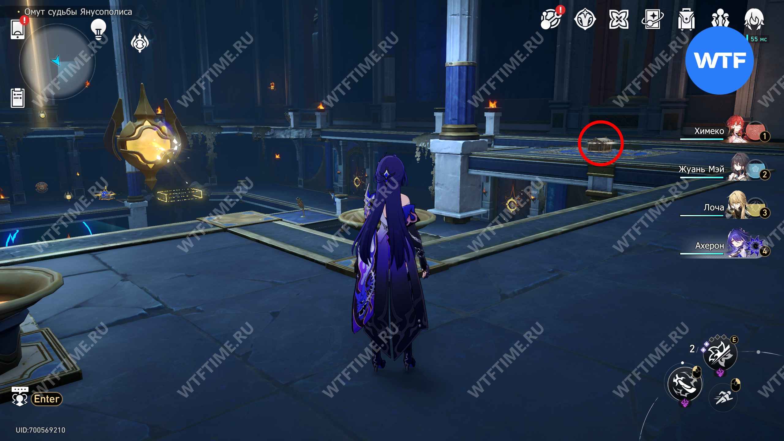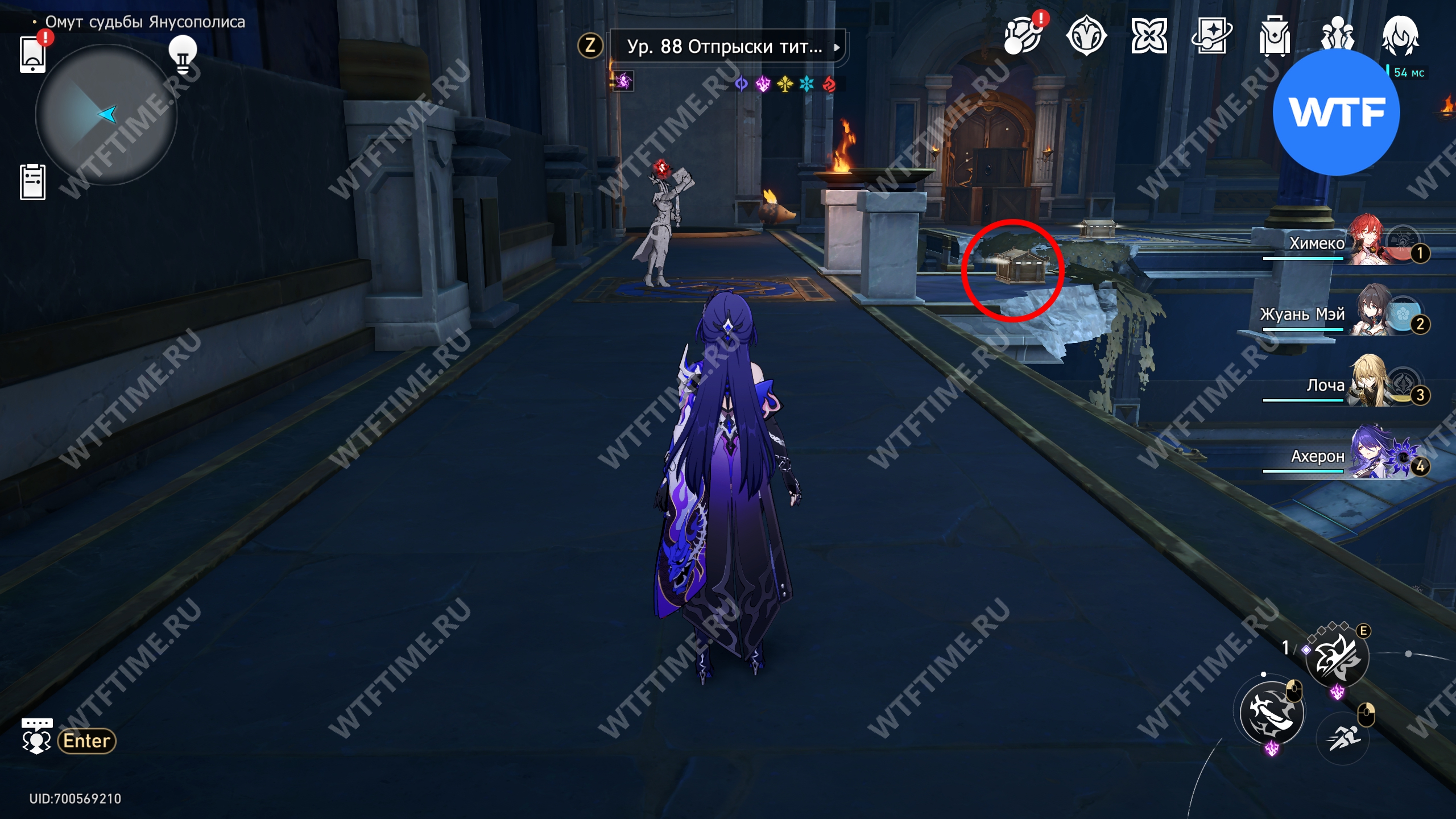 Следующий сундук вы найдете на левой чаше весов в режиме «Вечной ночи». Чтобы туда попасть, нужно подняться по лестнице в центре зала и пройти по кругу. Если путь заблокирован коробками — перенаправьте сферу чудес.