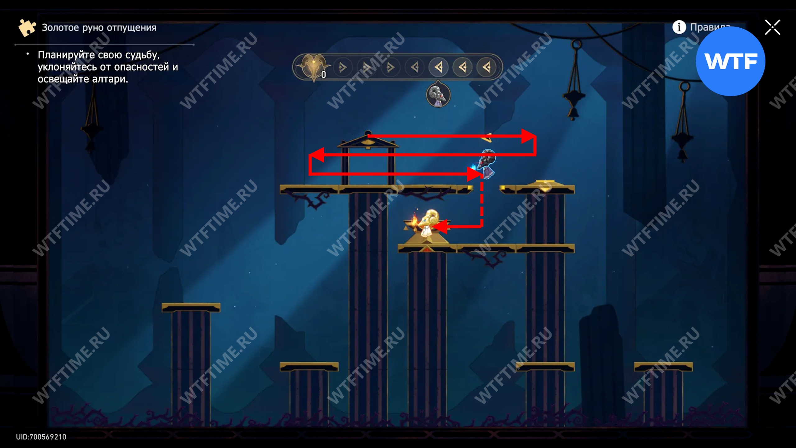 Золотое руно отпущения — это новый тип головоломок, который встретится вам на Амфореусе. Чтобы получить сундук, вы должны осветить алтарь священным пламенем за определенное количество ходов, не пересекаясь при этом со своей темной версией.