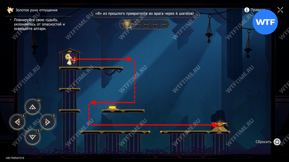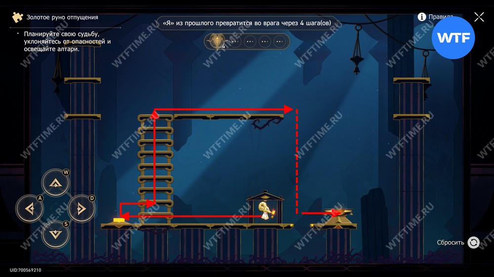 Чтобы решить головоломку золотого руна отпущения и снять печать, вы должны довести фигурку до алтаря, используя темную версию себя для нажатия на кнопки. Подробнее об этих испытаниях мы писали в отдельном гайде: