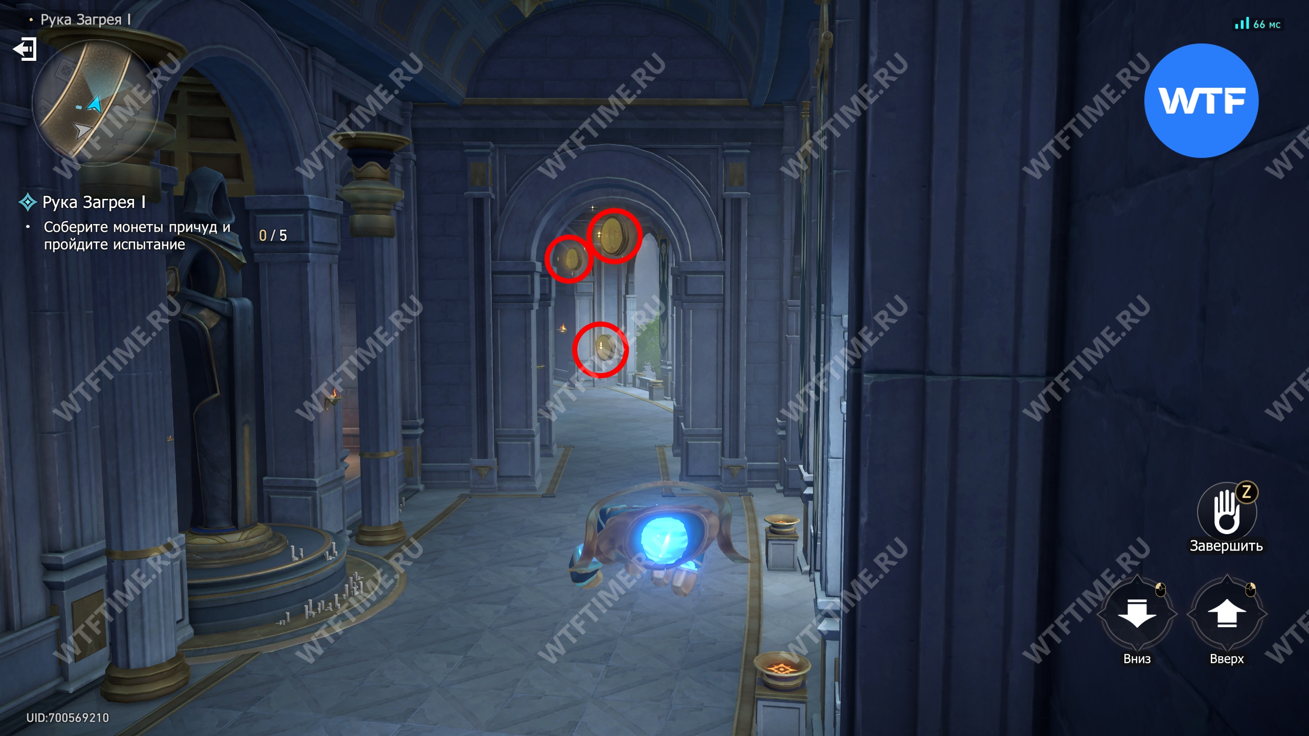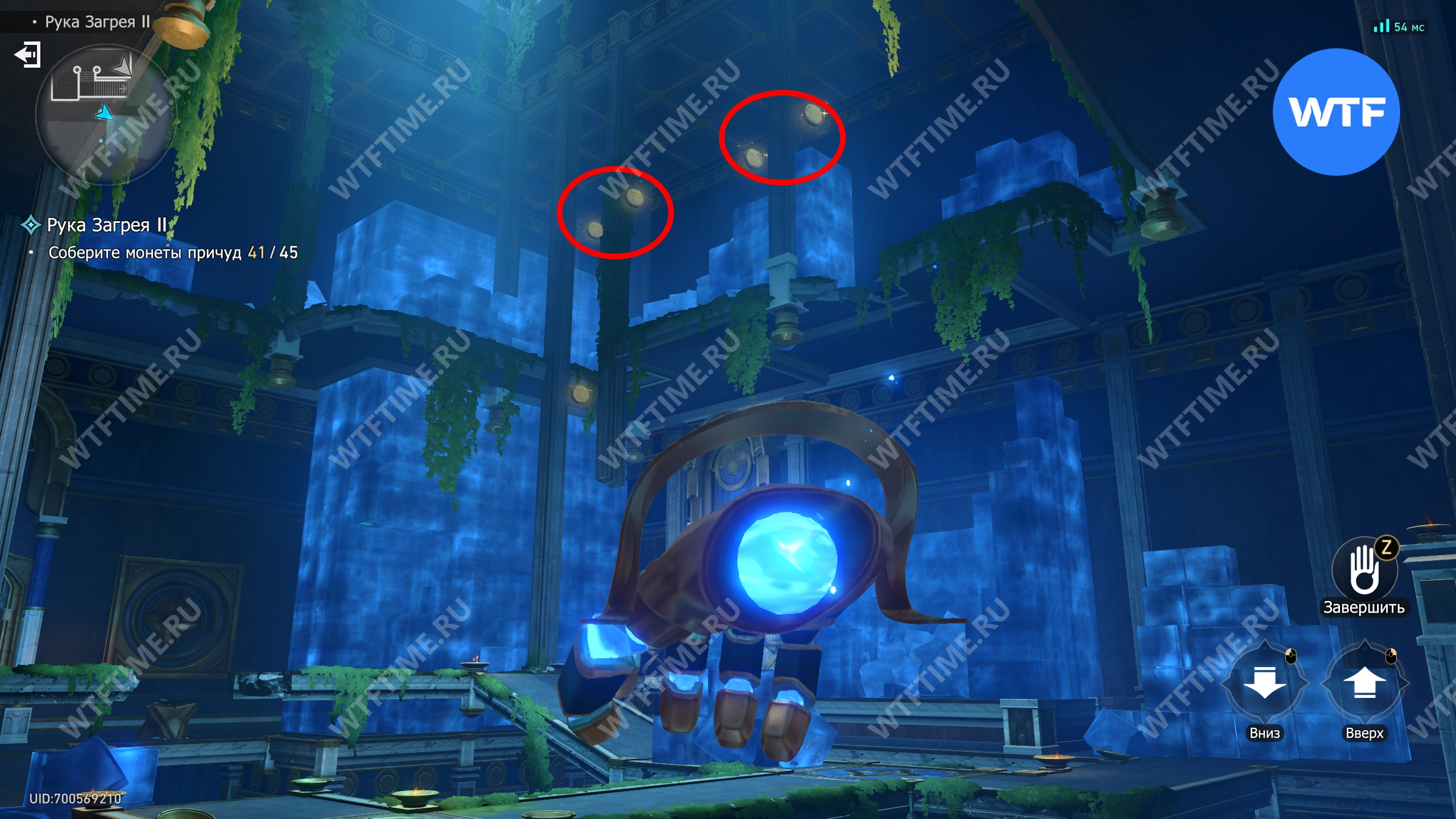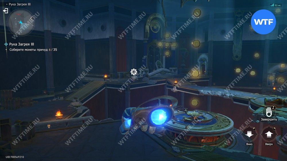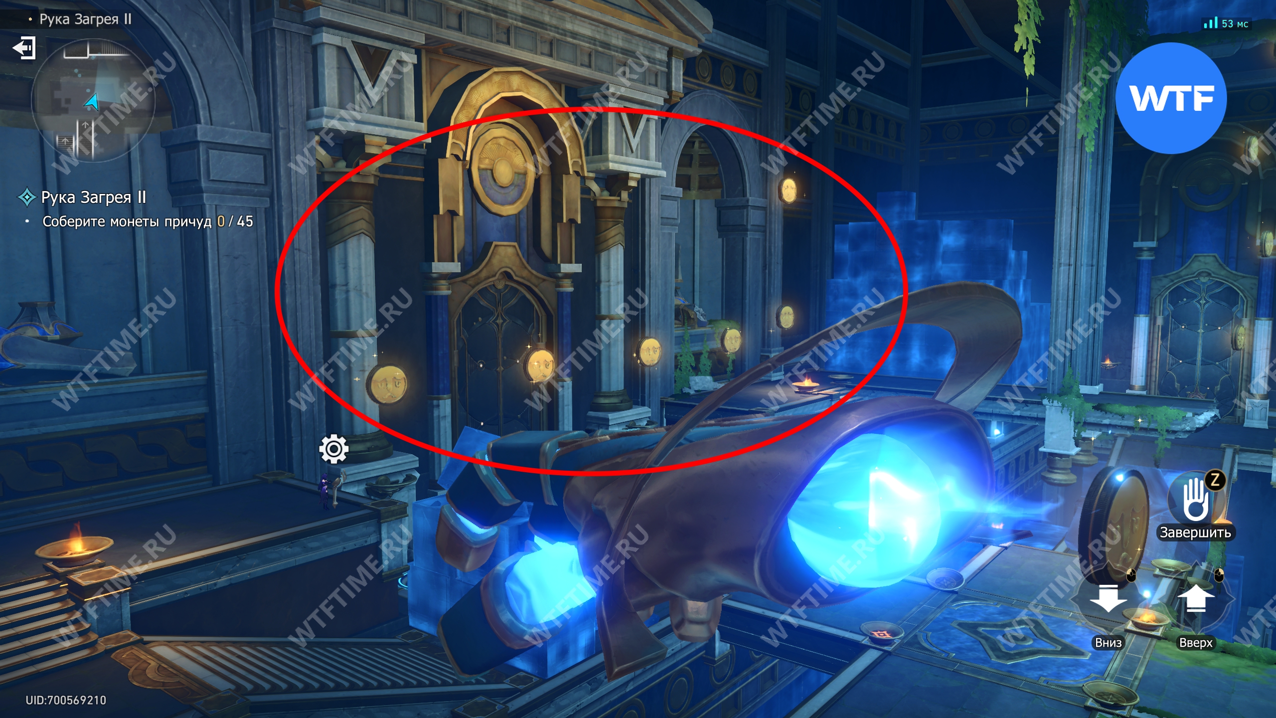 На этом этапе события «Таинственный гипогей» вы должны будет собрать определенное количество монет причуд, висящих в воздухе, управляя большой механической рукой.
