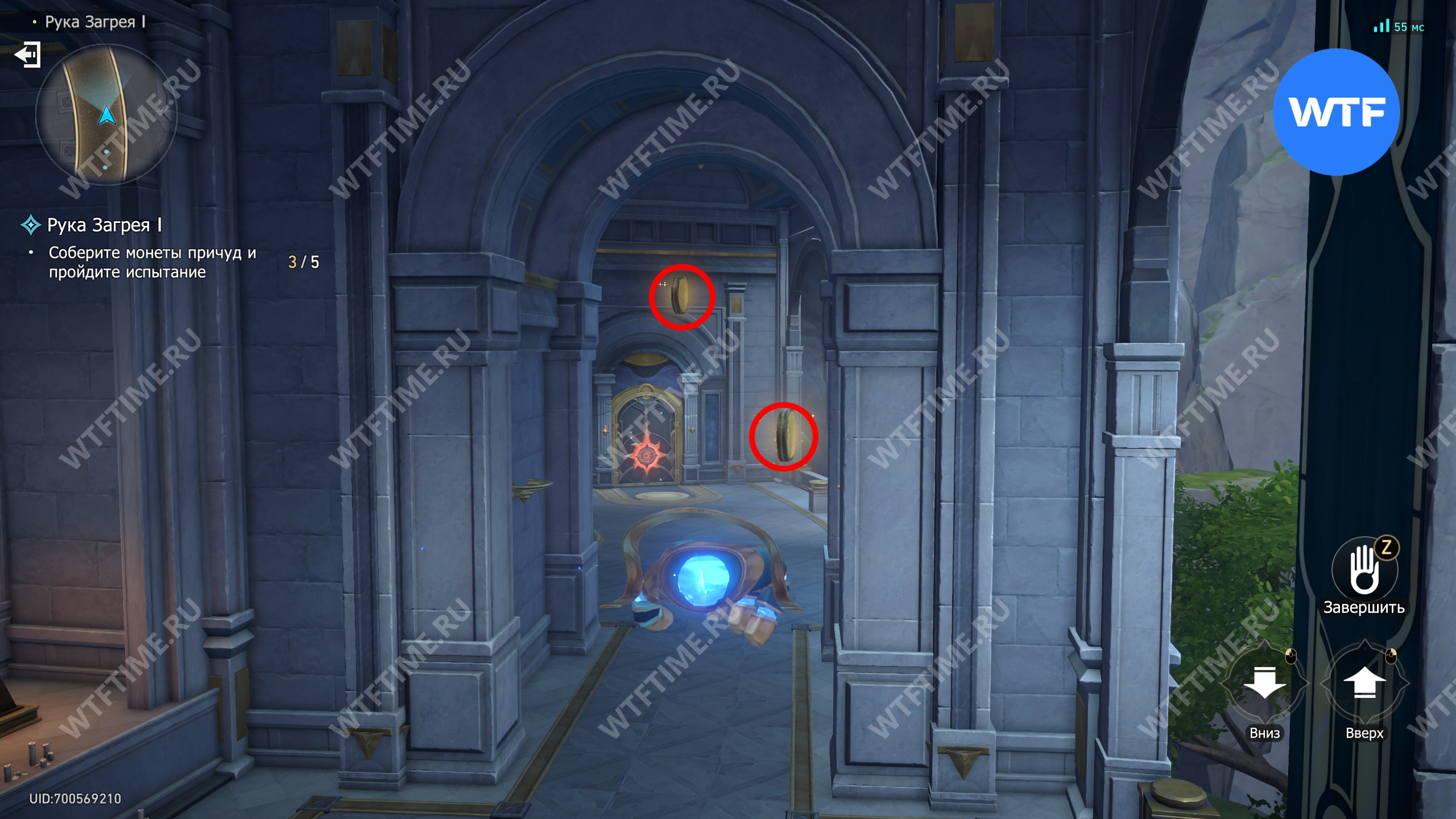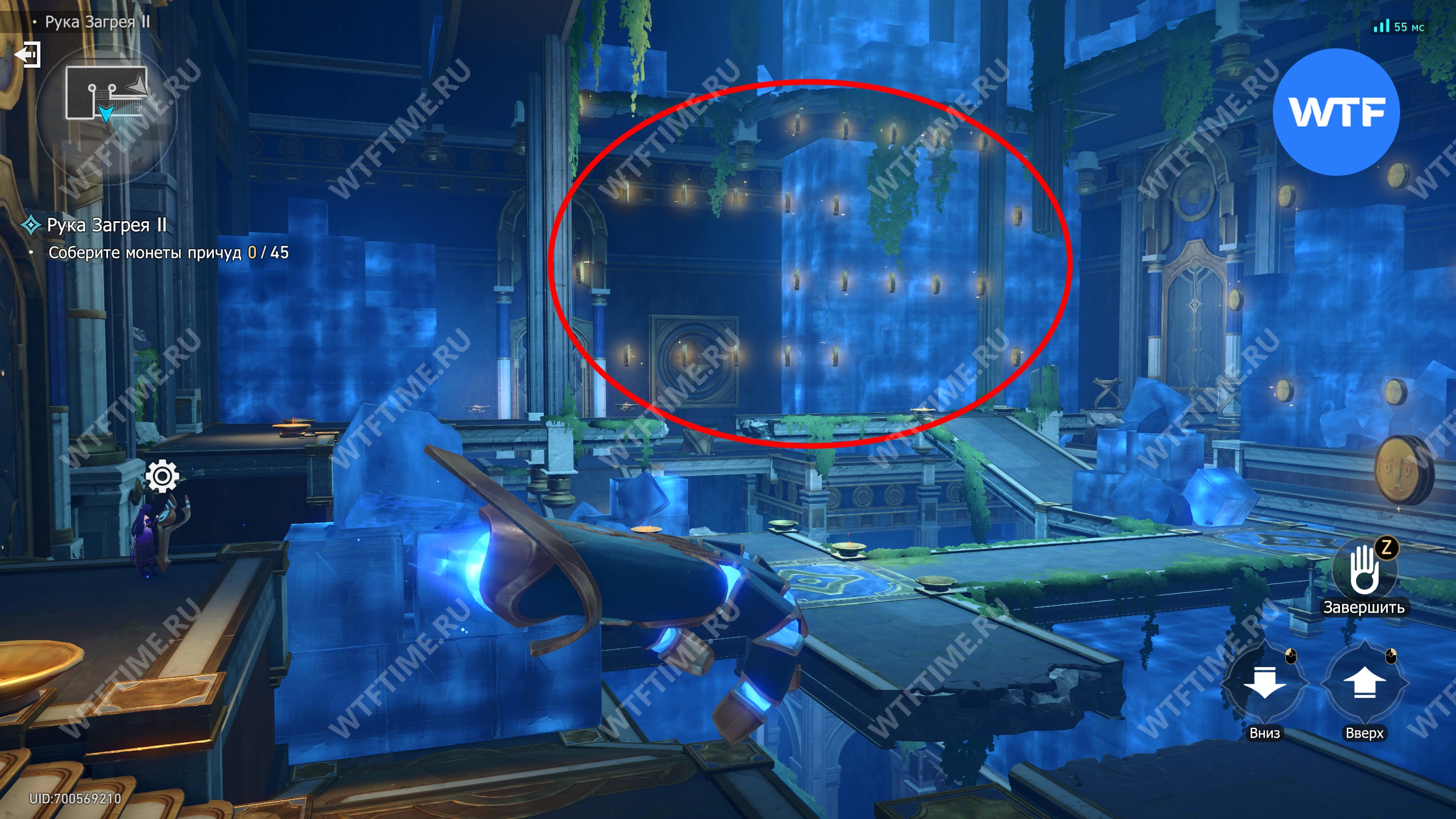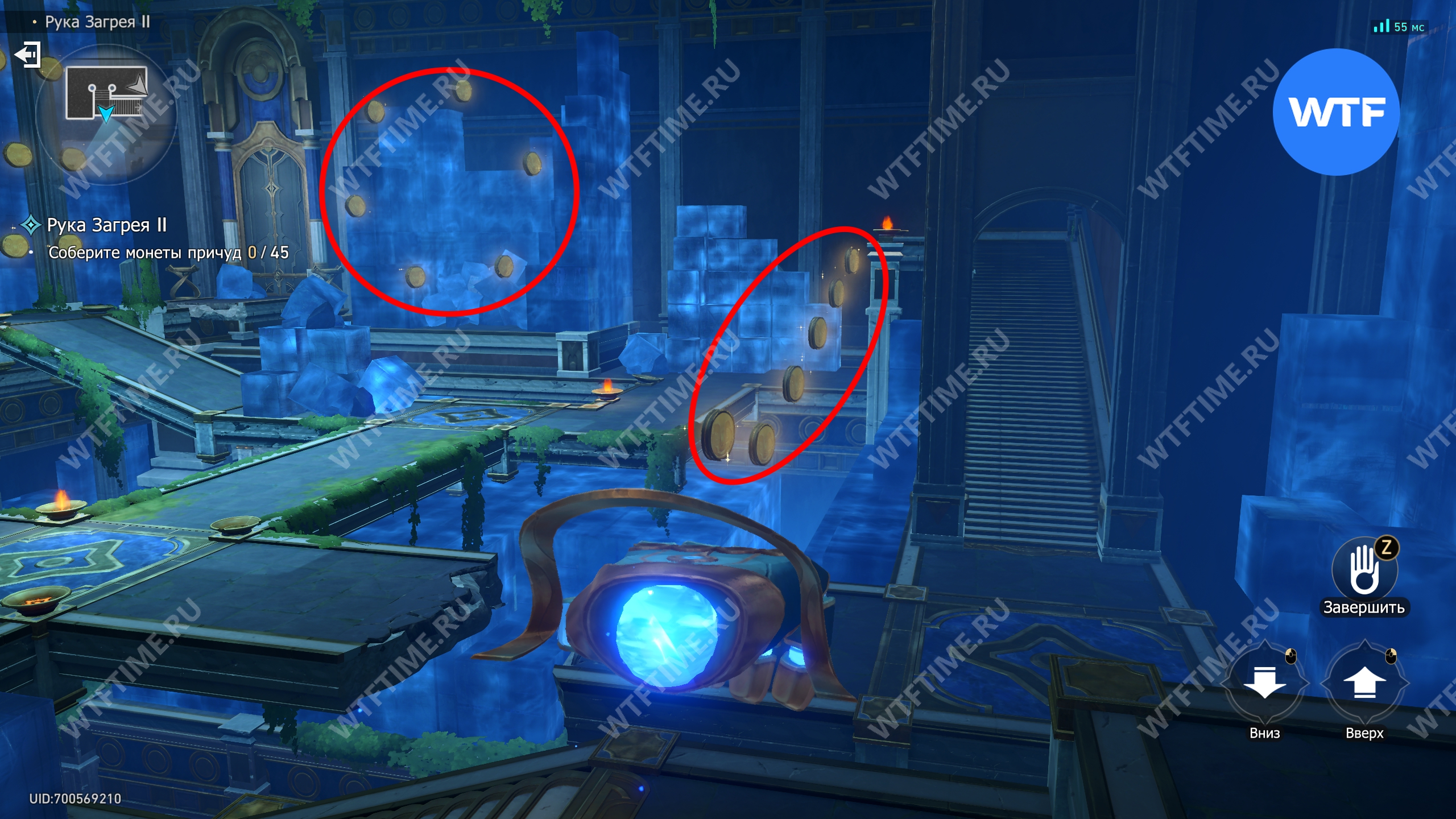 На этом этапе события «Таинственный гипогей» вы должны будет собрать определенное количество монет причуд, висящих в воздухе, управляя большой механической рукой.