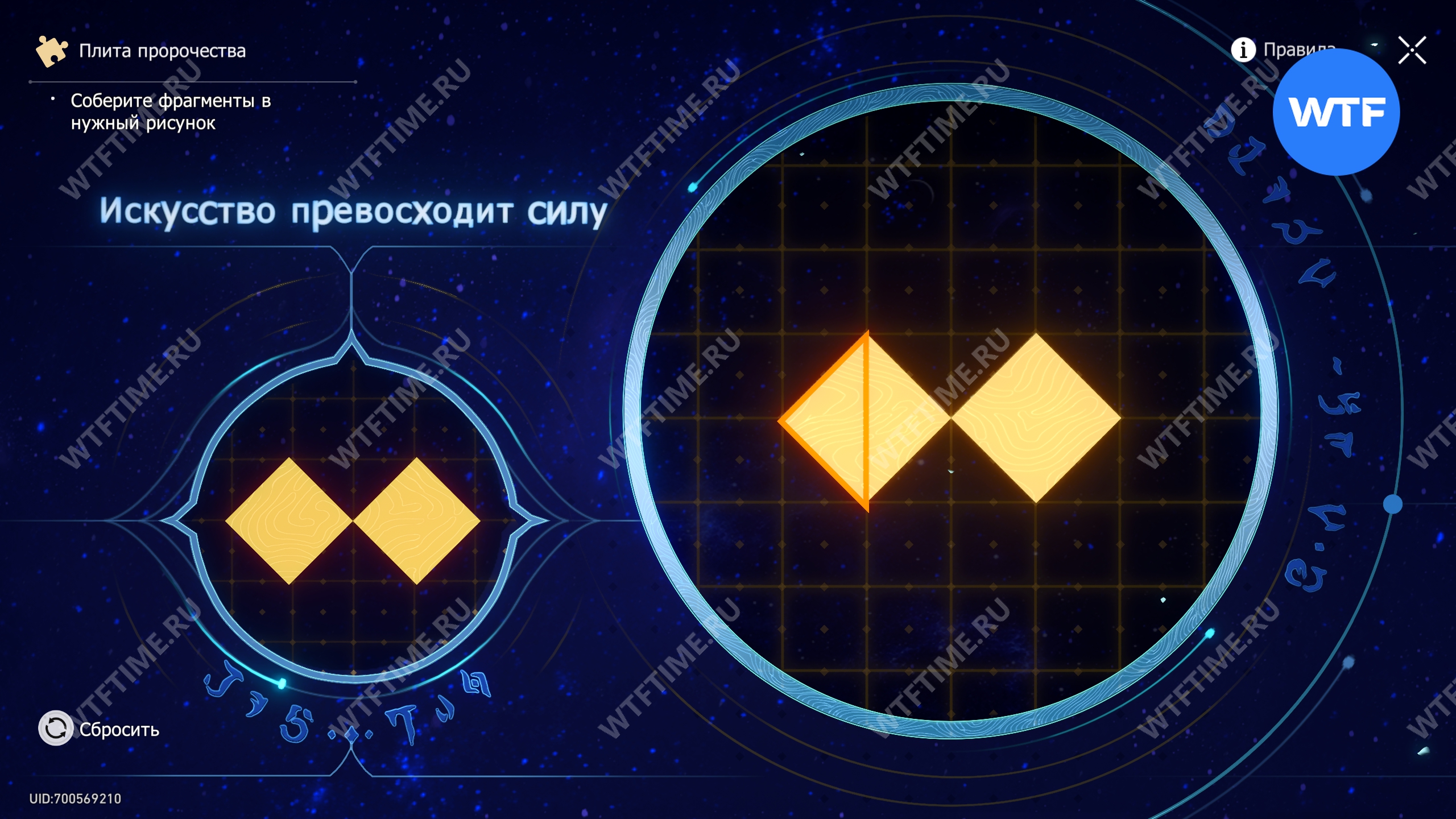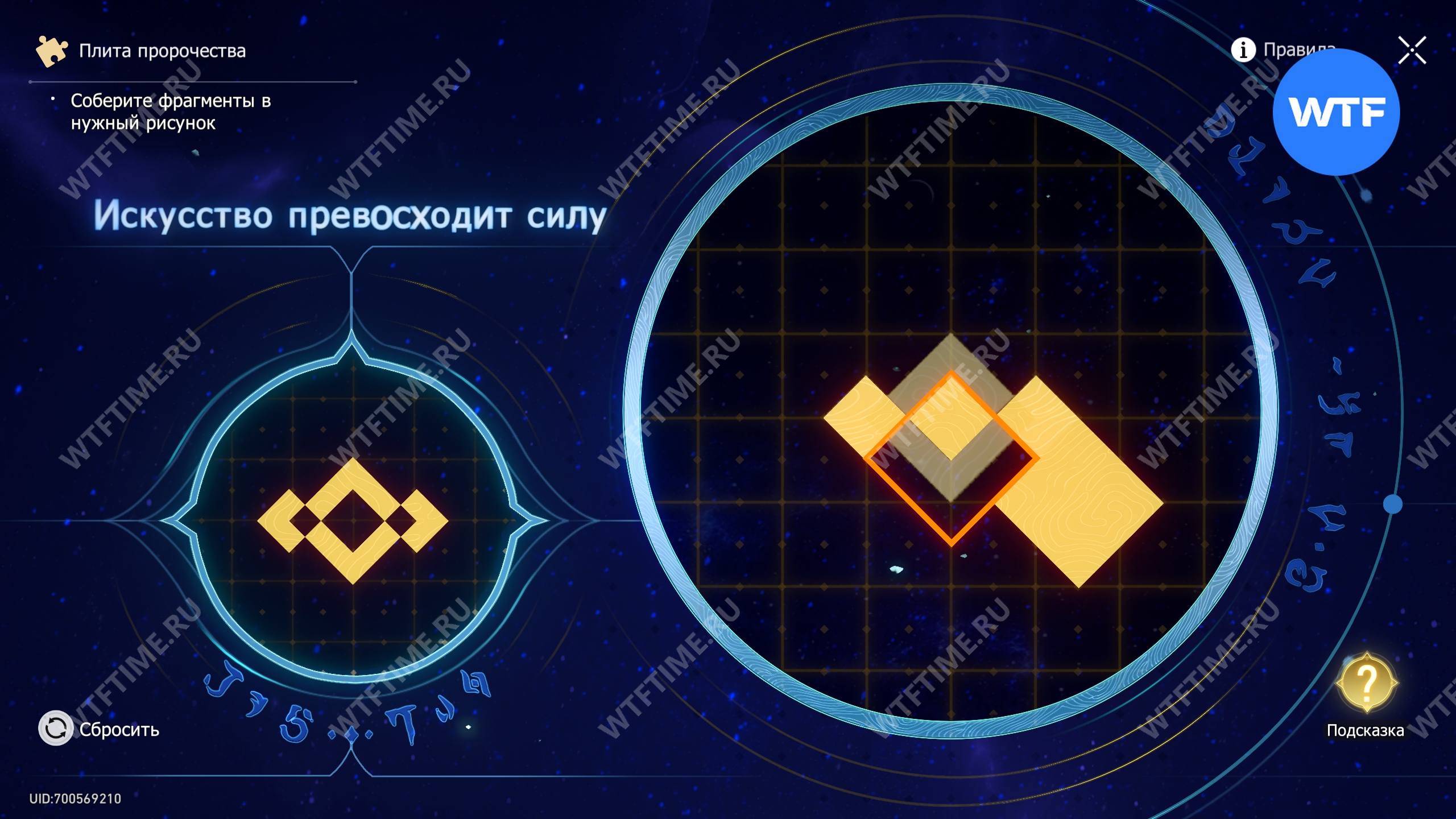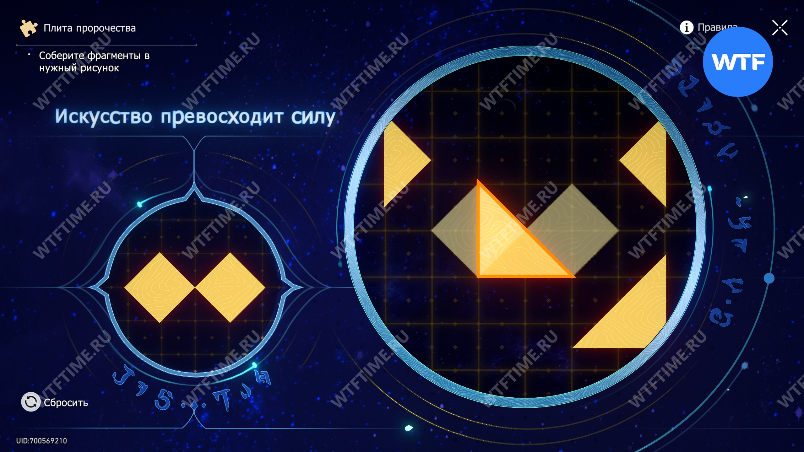 Плиты пророчества — это новый тип головоломок Амфореуса, добавленный в Хонкай Стар Рейл в патче 3.0. Здесь вам нужно расставить фрагменты в правой части экрана так, чтобы получился рисунок с левой части экрана.
