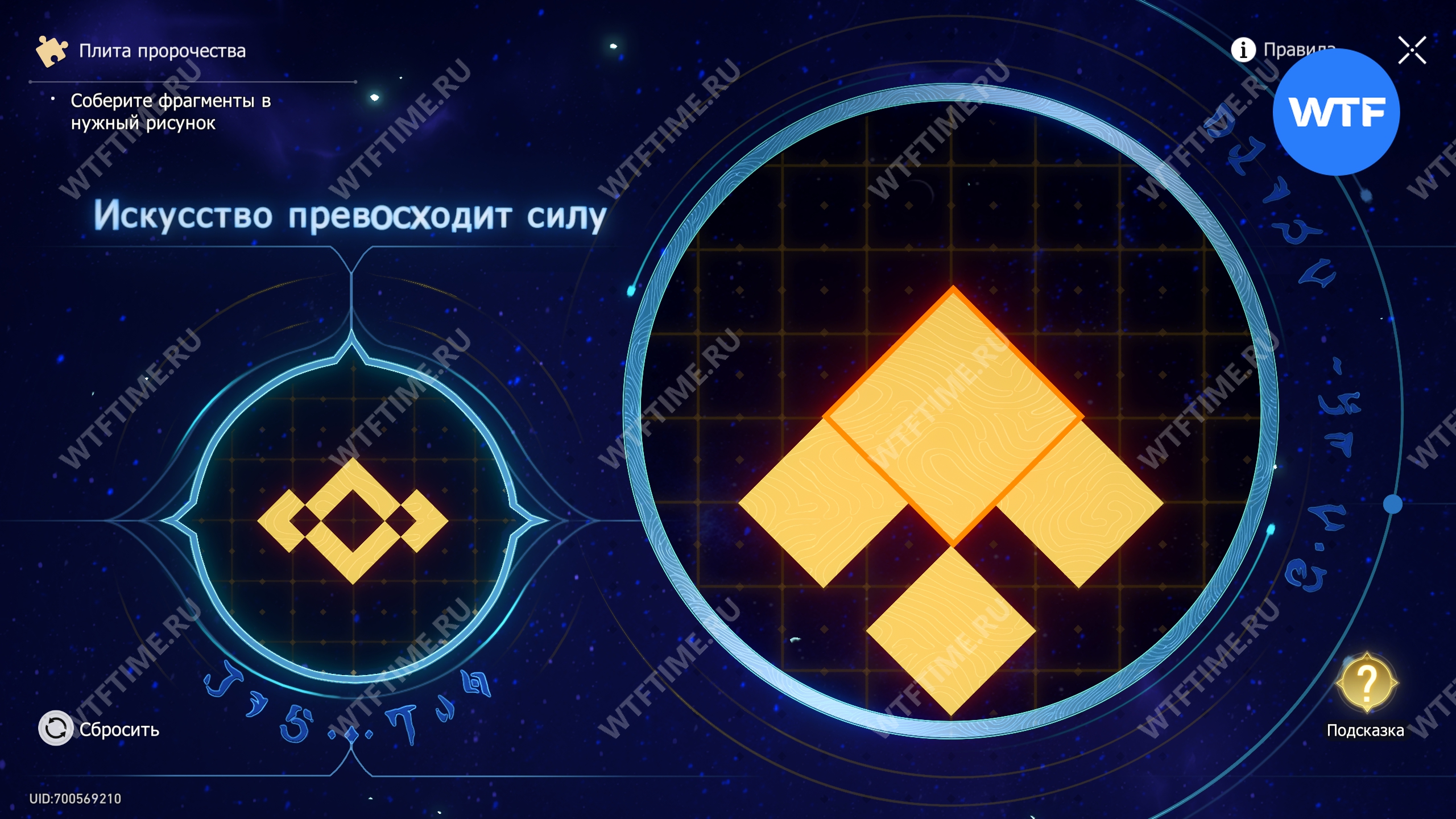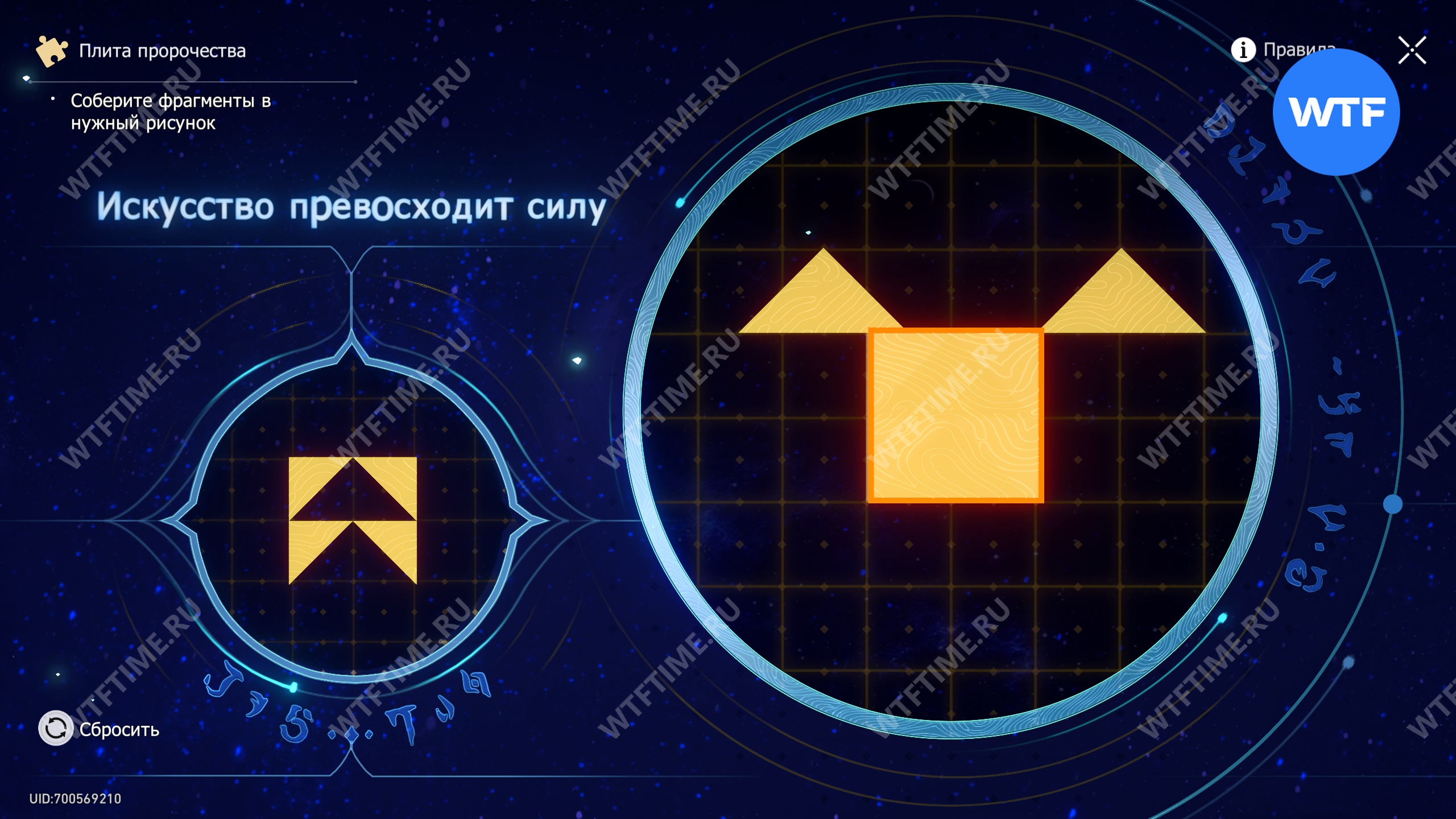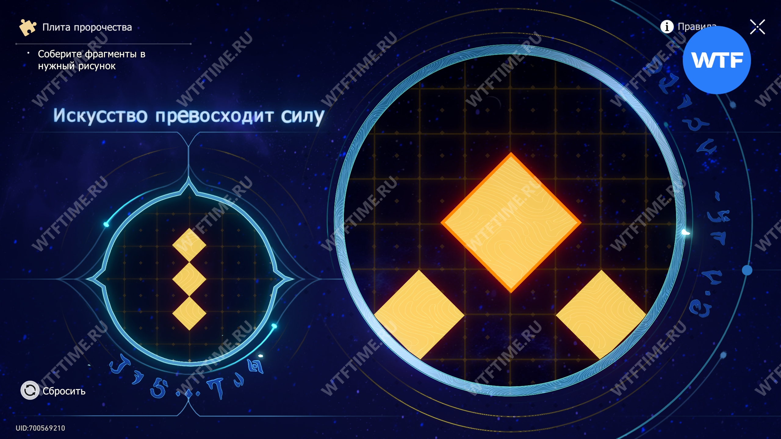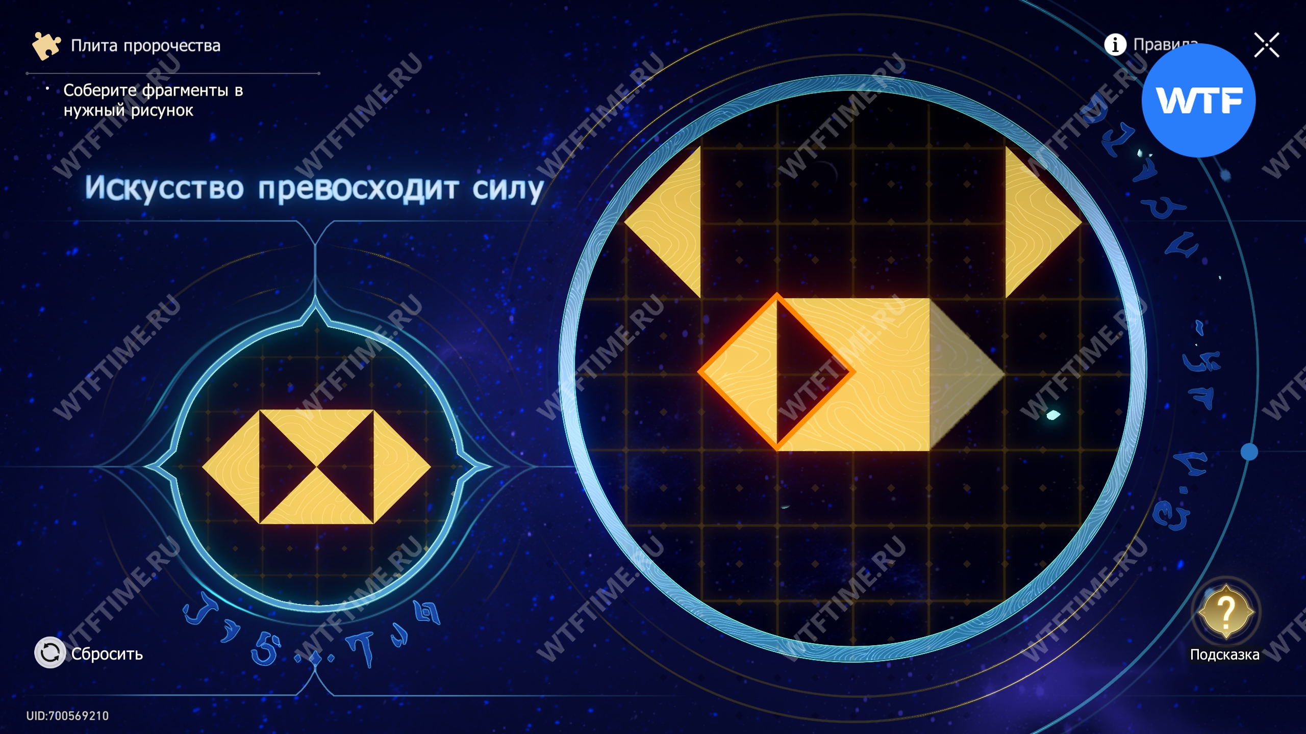 Плиты пророчества — это новый тип головоломок Амфореуса, добавленный в Хонкай Стар Рейл в патче 3.0. Здесь вам нужно расставить фрагменты в правой части экрана так, чтобы получился рисунок с левой части экрана.