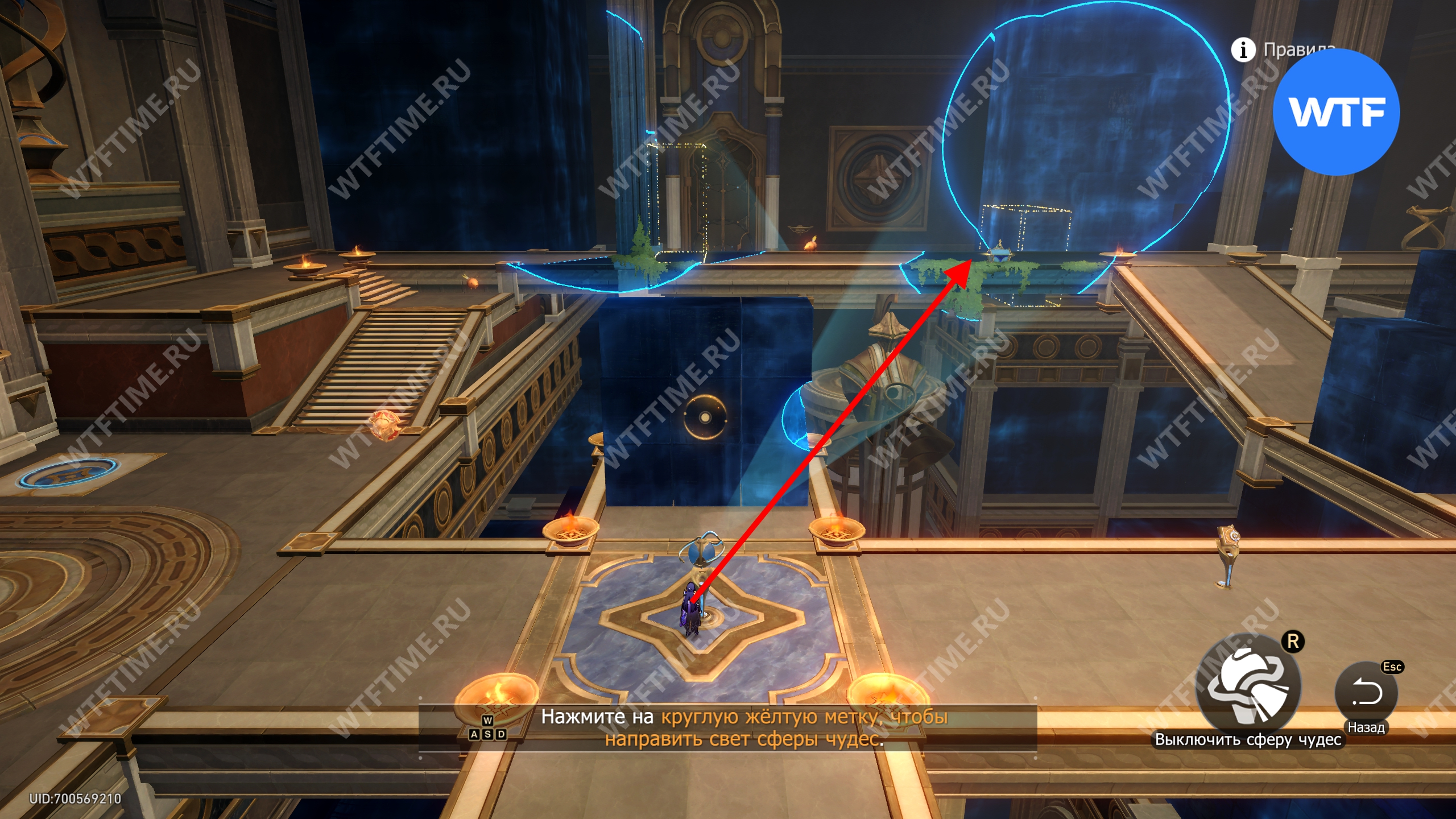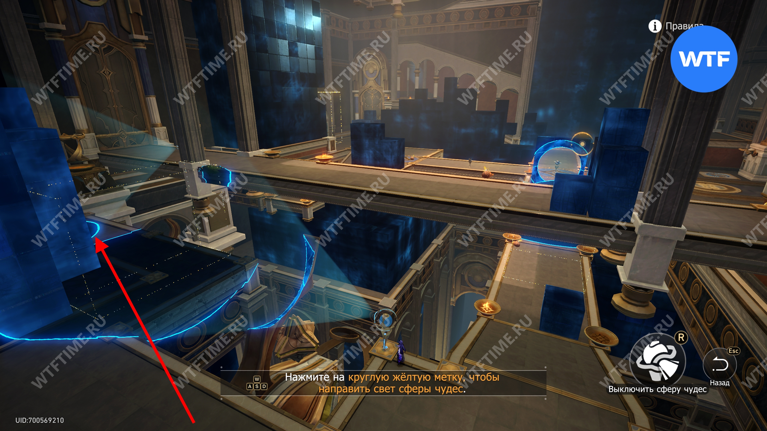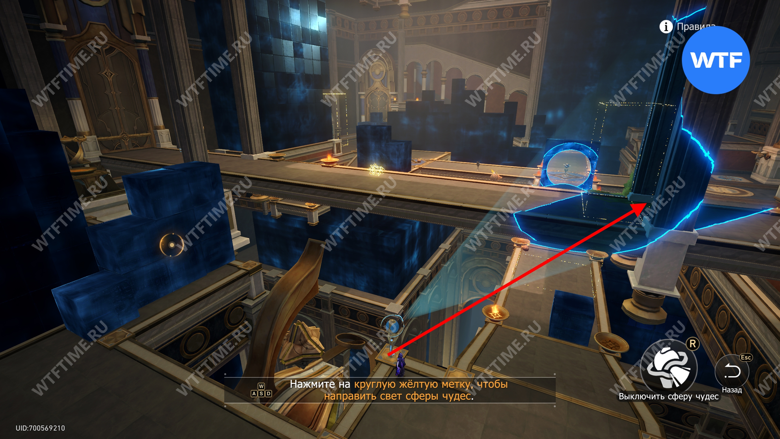 Используйте книгу чудес, чтобы добраться до центральной платформы. Затем включите сферу чудес, чтобы подсветить проход справа. Снова используйте книгу чудес, а затем бегите к ценному сундуку по проходу, подсвеченному сферой.