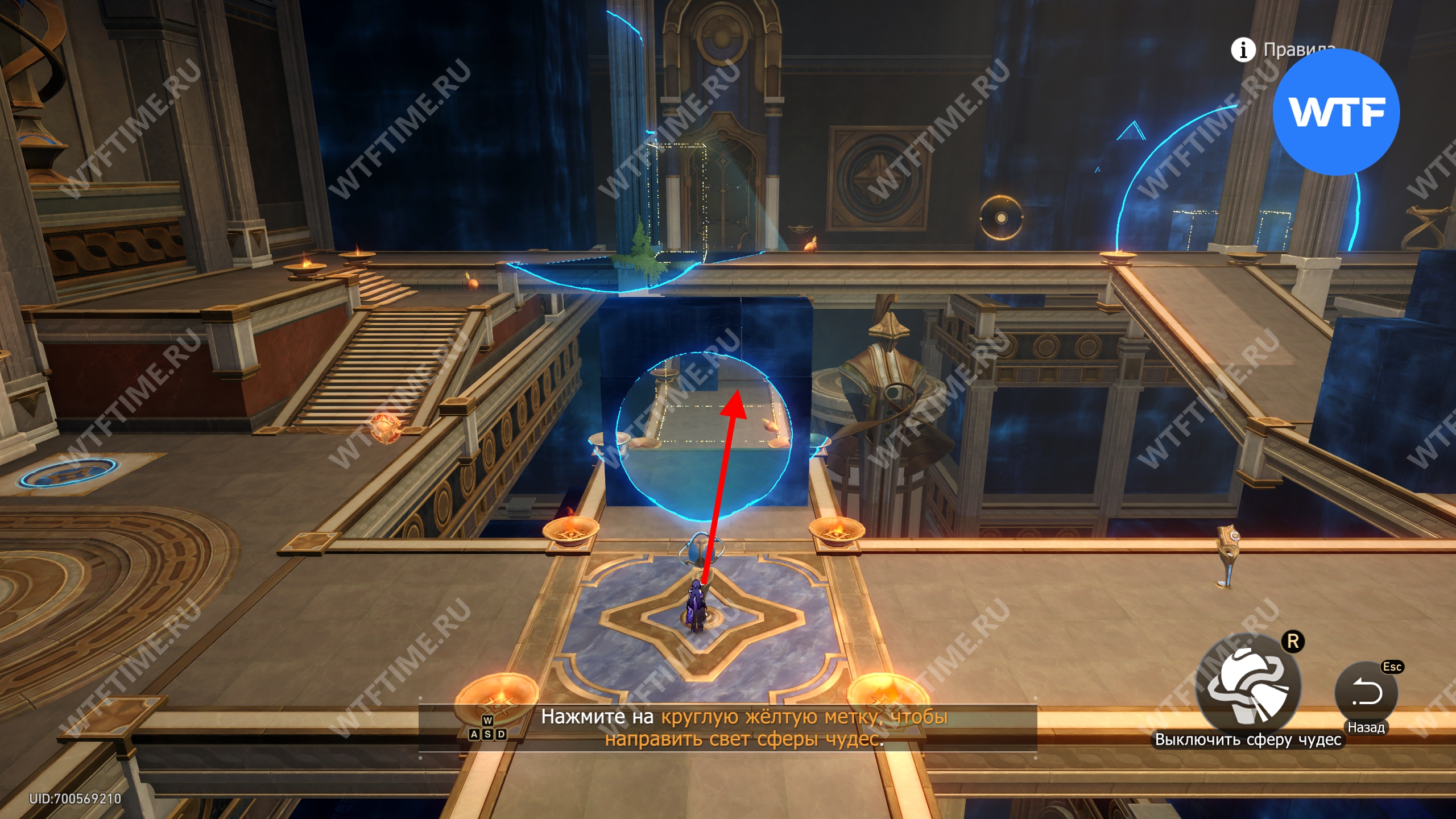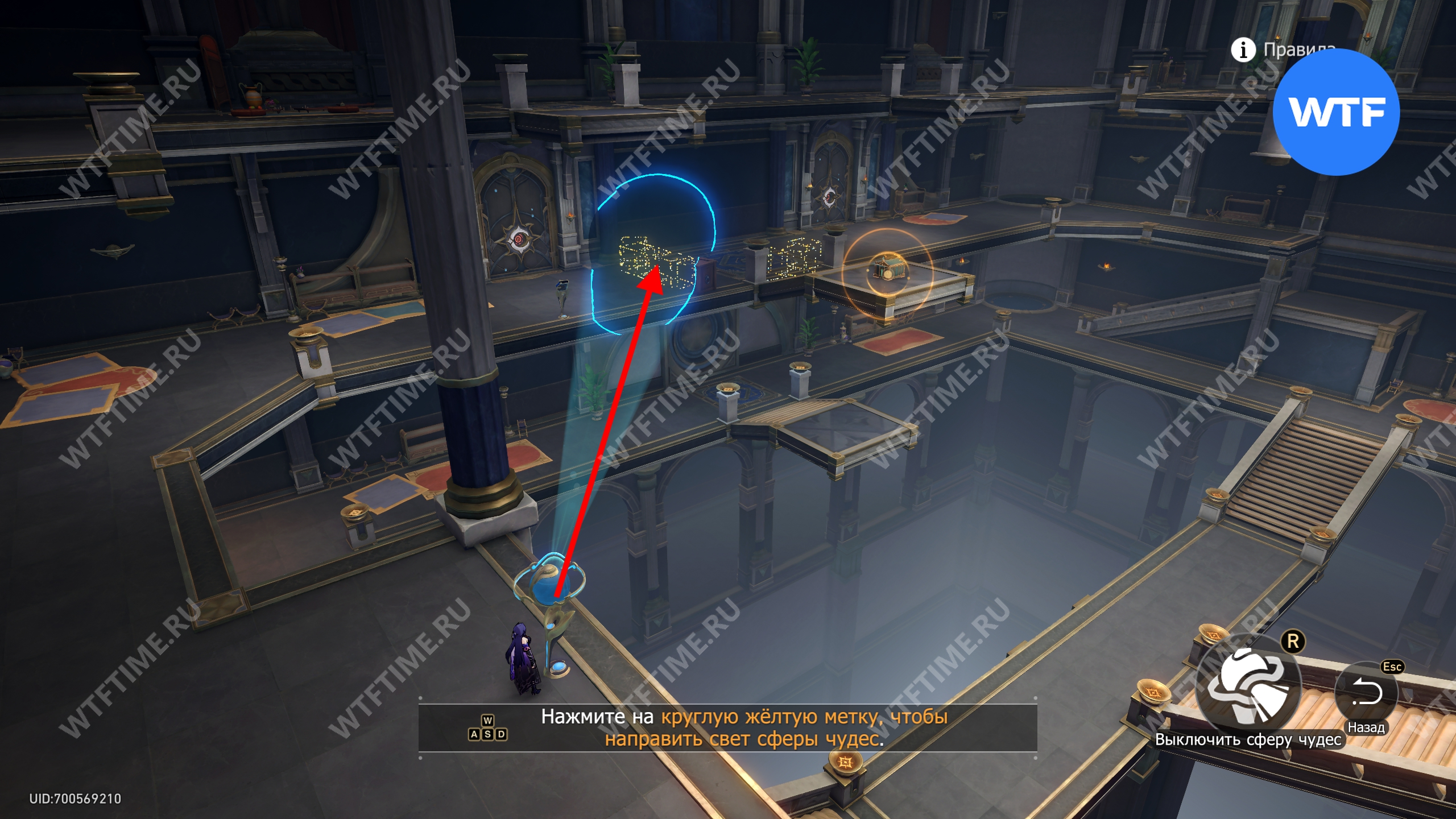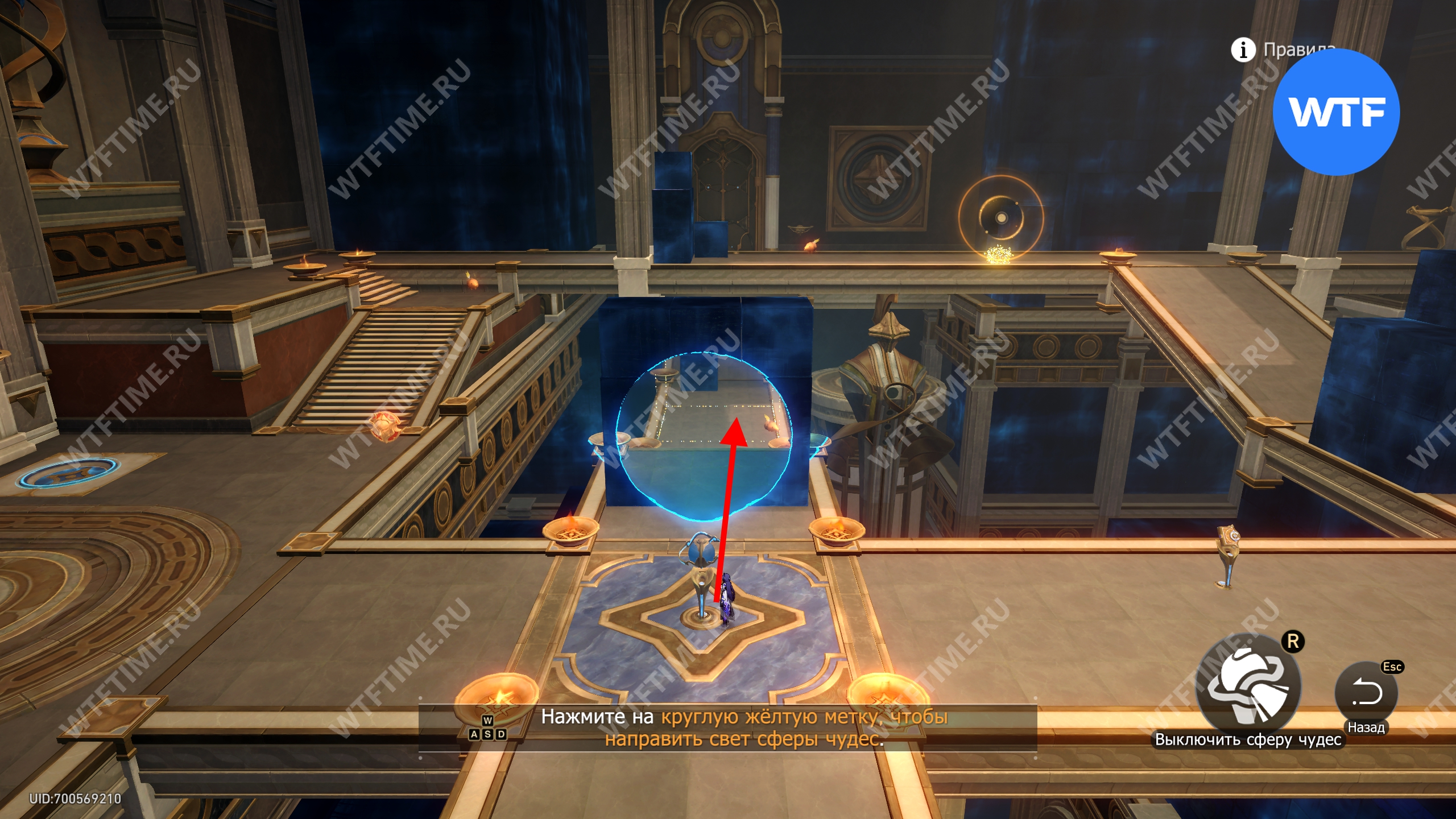 Используйте книгу чудес, чтобы добраться до центральной платформы. Затем включите сферу чудес, чтобы подсветить проход справа. Снова используйте книгу чудес, а затем бегите к ценному сундуку по проходу, подсвеченному сферой.