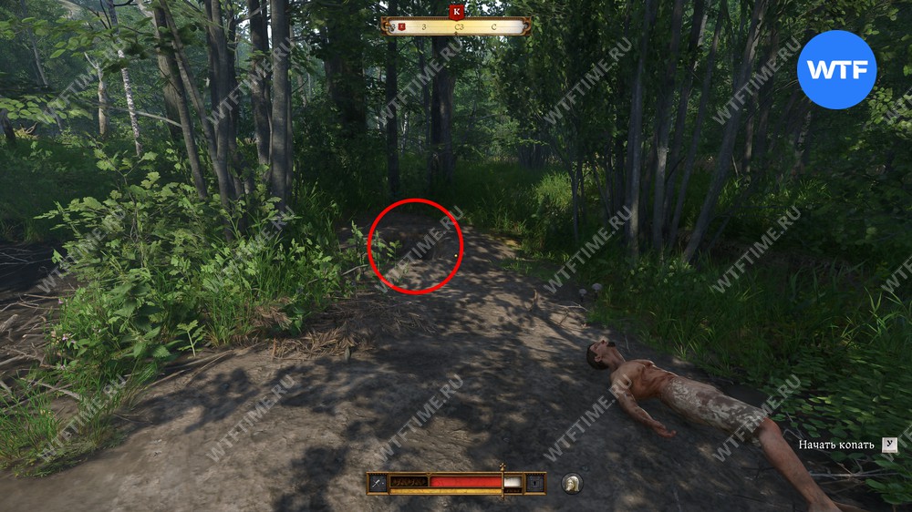Затем возьмите тело, выйдите через главный вход и следуйте за маркером I на вашем компасе. Это приведет вас прямиком к ручью, где можно легко выкопать могилку.