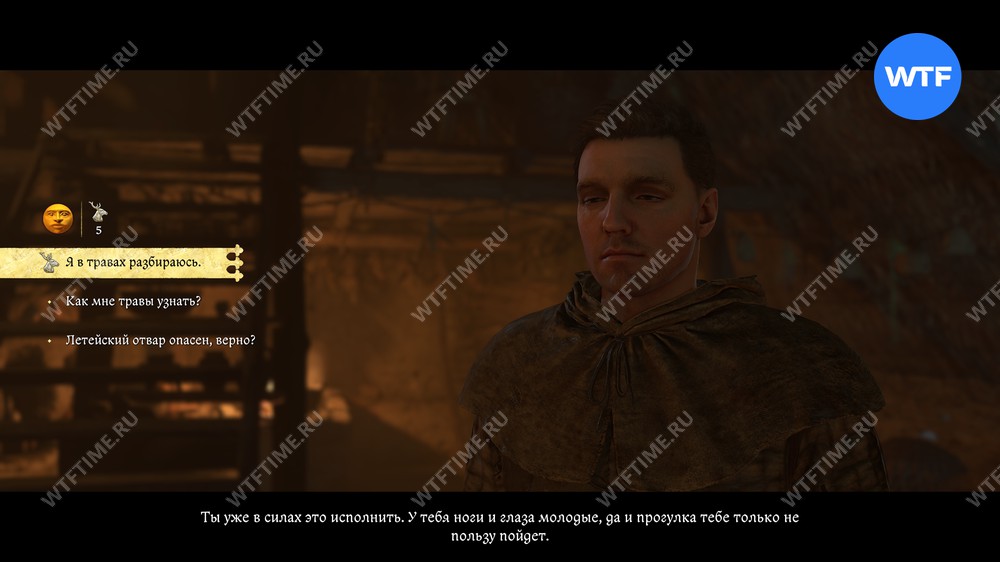 Закончив с приготовлениями, вернитесь в дом и поговорите с Боженой. Она попросит вас собрать ромашку и шалфей для приготовления летейского отвара, а также разобраться с телом у входа. Чтобы получить дополнительную репутацию, выбирайте следующие варианты ответа: