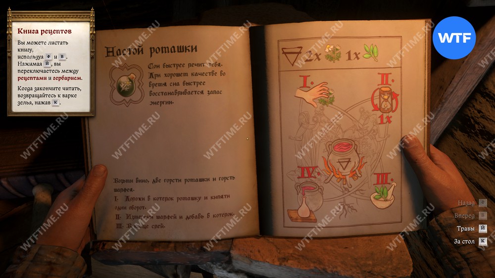 - Прочтите рецепт в книге, стоящей на подставке справа, а затем вернитесь за стол;