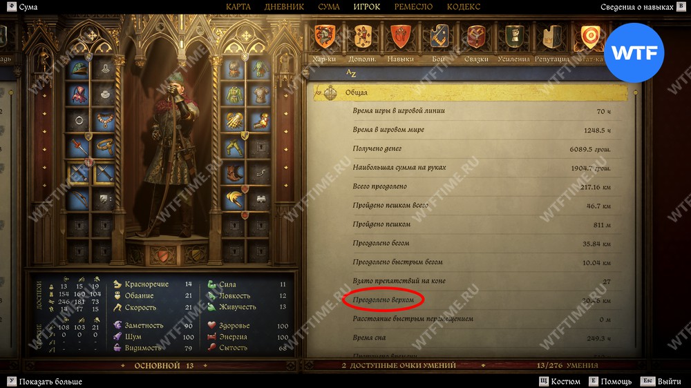 Посмотреть расстояние, которое вы уже преодолели верхом, можно в разделе с общей статистикой игрока. У Селёдки есть аналогичный скрытый перк «Королевская Селёдка», однако для его получения на ней нужно проехать еще 50 километров, что не мало. После этого характеристики Селёдки станут такими: