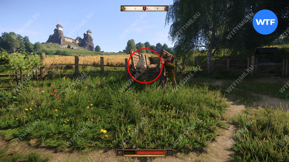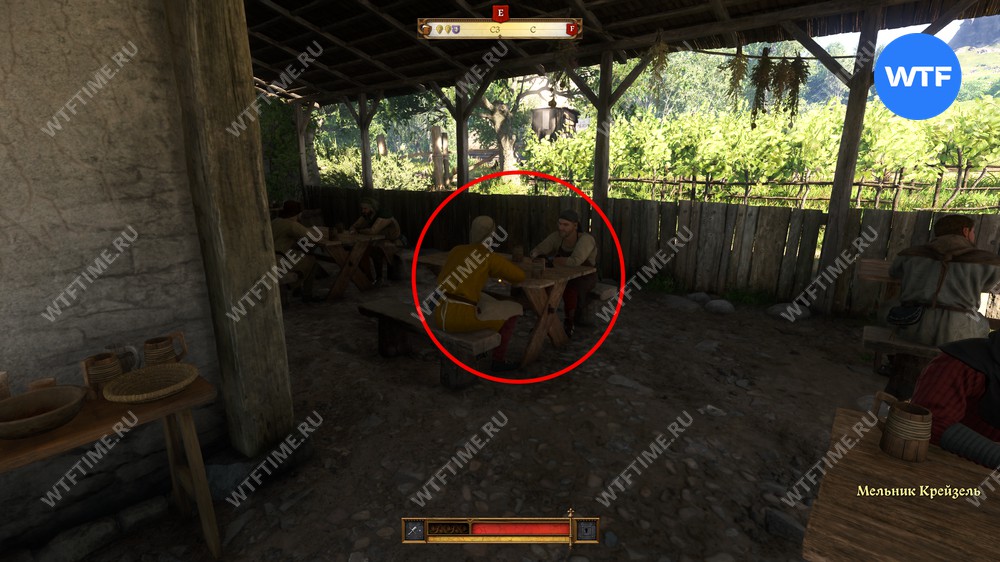 Когда со всеми разговорами будет покончено, придет время заняться работой для хозяйки корчмы. Подойдите к телеге, стоящей перед входом и возьмите мешок муки. Затем идите в корчму и сверните в первую дверь справа. Там вы найдете деревянный поддон, на который этот мешок можно поставить.
