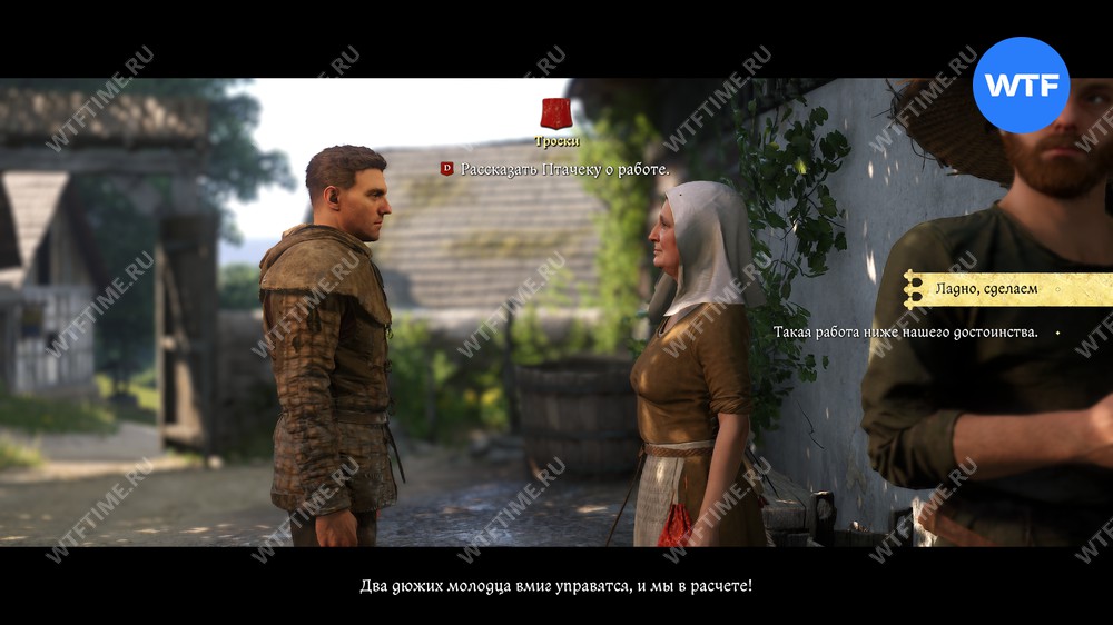 Теперь вы можете вернуться к Птачеку и рассказать ему о задании хозяйки корчмы. Он откажется вам помогать, ссылаясь на свое благородное происхождение. Если вы будете настаивать, это приведет к снижению репутации, поэтому выбирайте следующие ответы: