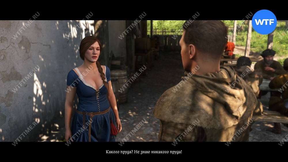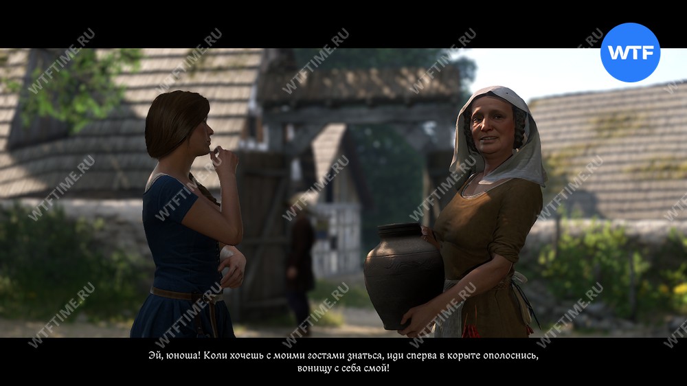 Не важно, что вы скажете девушке при первой встрече: вас в любом случае отправят мыться в бадье, стоящей возле входа в корчму. После этого вы сможете снова подойти к девушке и попытаться продолжить разговор.