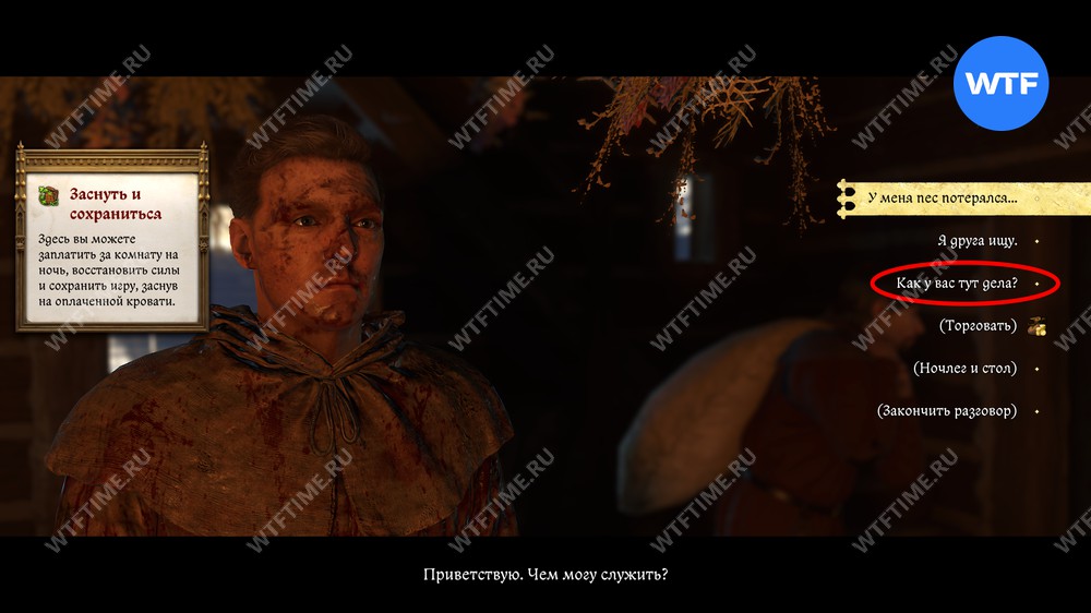 Спросите у него «Как у вас тут дела?» и послушайте местные слухи. Корчмарь расскажет вам про двух местных пареньков, которые уверяют, что нашли сокровище водяного.