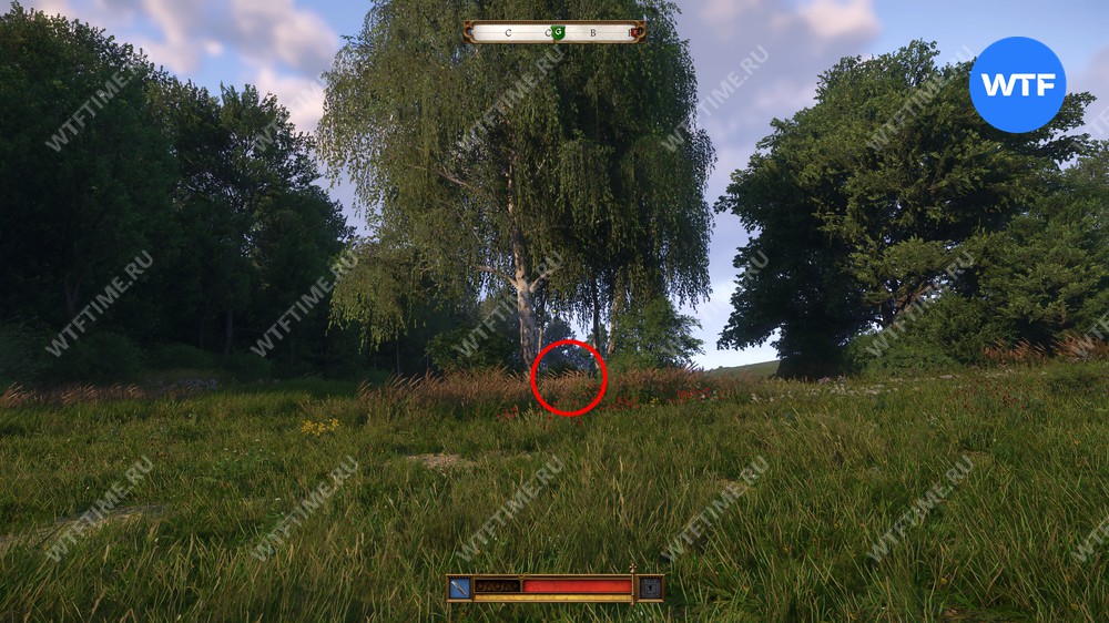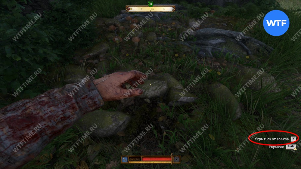 Теперь идите к кустам напротив березы и устройте засаду. Нажмите на кнопку укрытие, когда она появится в правом нижнем углу экрана, а затем идите туда, куда смотрит Индржих. Вам нужно найти такое место, где появится кнопка «Укрыться от волков».