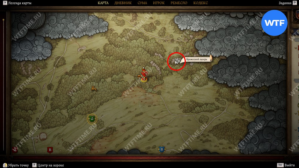 Для начала загляните к местному травнику к северо-востоку от места, где вы должны оставить приманку. Он расскажет вам о вражеском лагере и поставит отметку на карту.