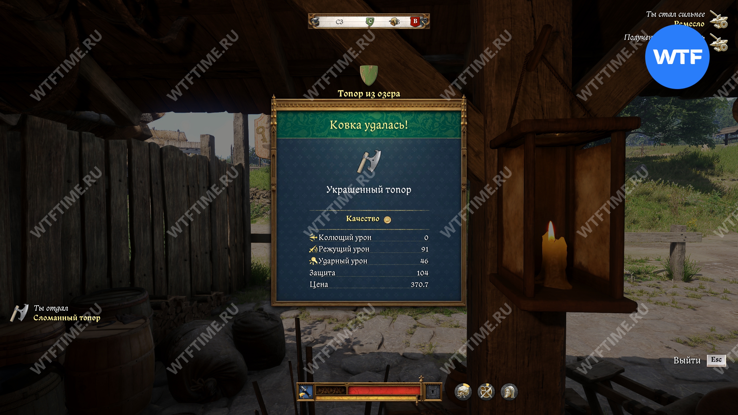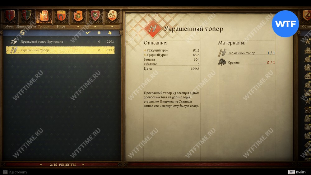 Чтобы починить топор из сказки, отправляйтесь обратно в Тахов и загляните в кузницу. Там вы должны не починить предмет как таковой, а изготовить Украшенный топор, чертеж которого стал вам доступен.