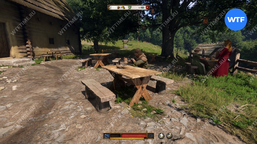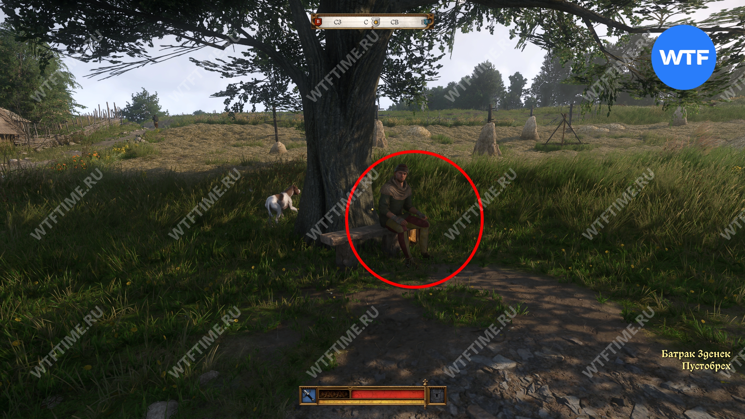 Прежде чем отправляться к сказителю, купите у корчмаря любой выпивки. Мы прихватили для него пива и это его вполне устроило. Найти батрака Зденека Пустобреха можно как за столиком в корчме, так и на лавочке под большим деревом рядом.