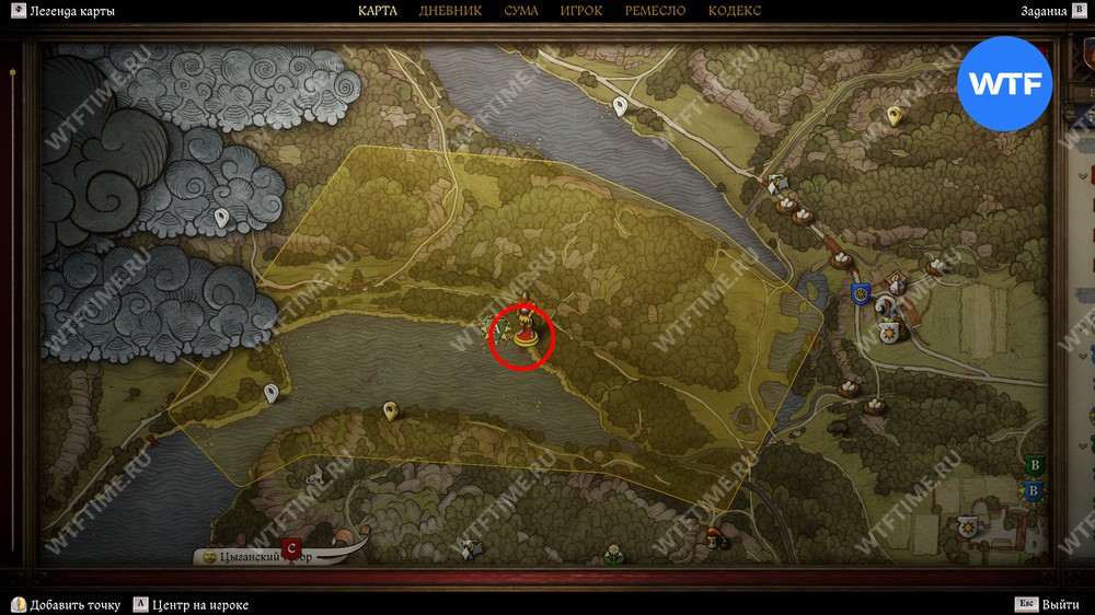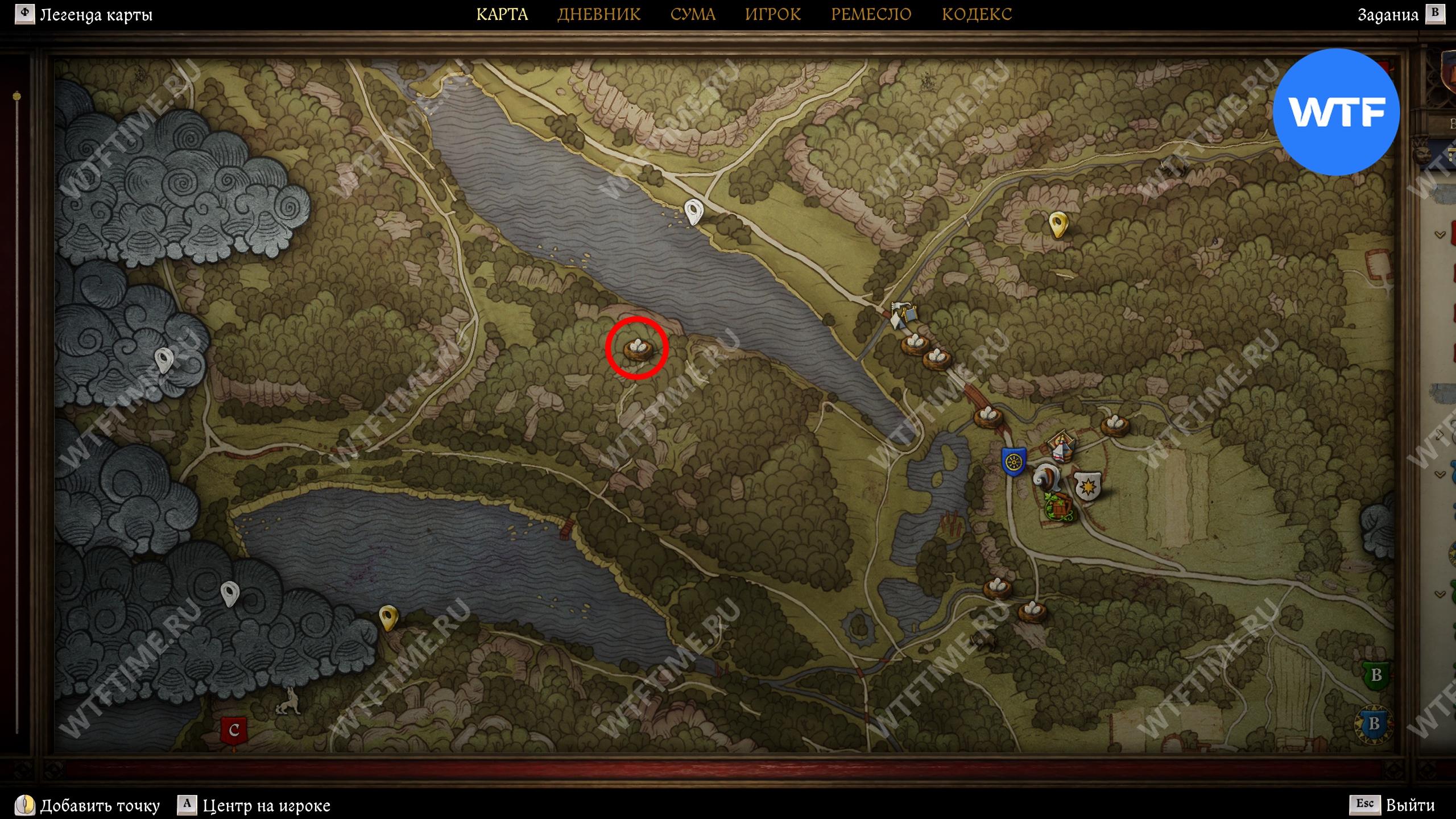 Чтобы найти топор из сказки, отправляйтесь на Желеевский постоялый двор, а оттуда на юго-запад, к большому пруду. Вам нужны деревянные мостки, расположенные примерно по центру желтой области поисков.