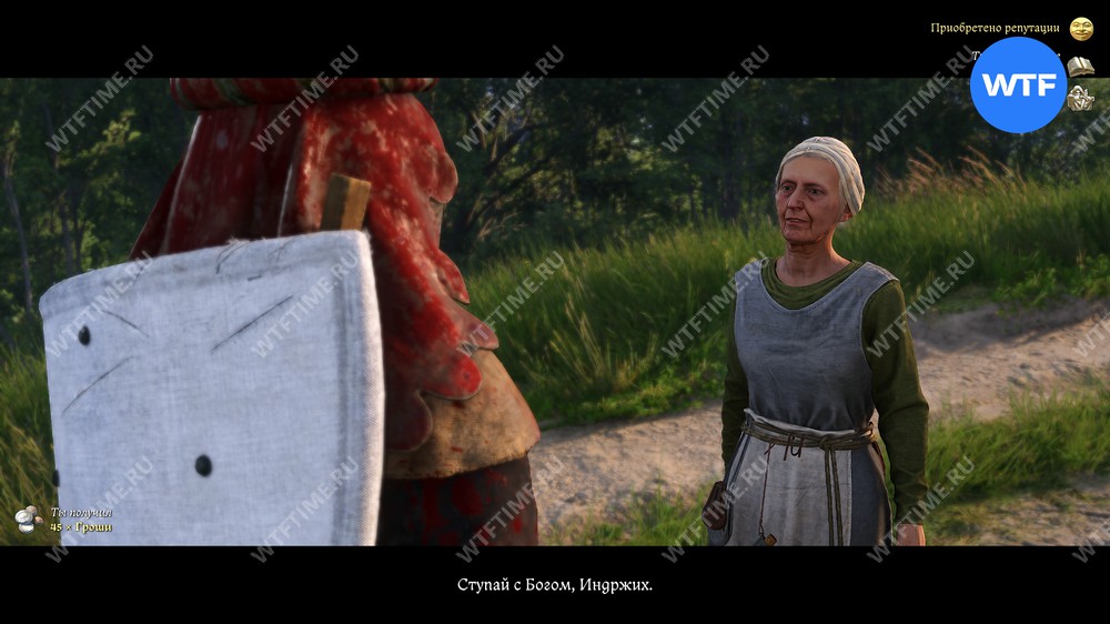 После этого снова поговорите с вдовой и расскажите, что дело сделано. В награду за ваши труды и молчание она даст вам 45 грошей. На этом выполнение задания «Грешная душа» в Kingdom Come Deliverance 2 будет завершено.