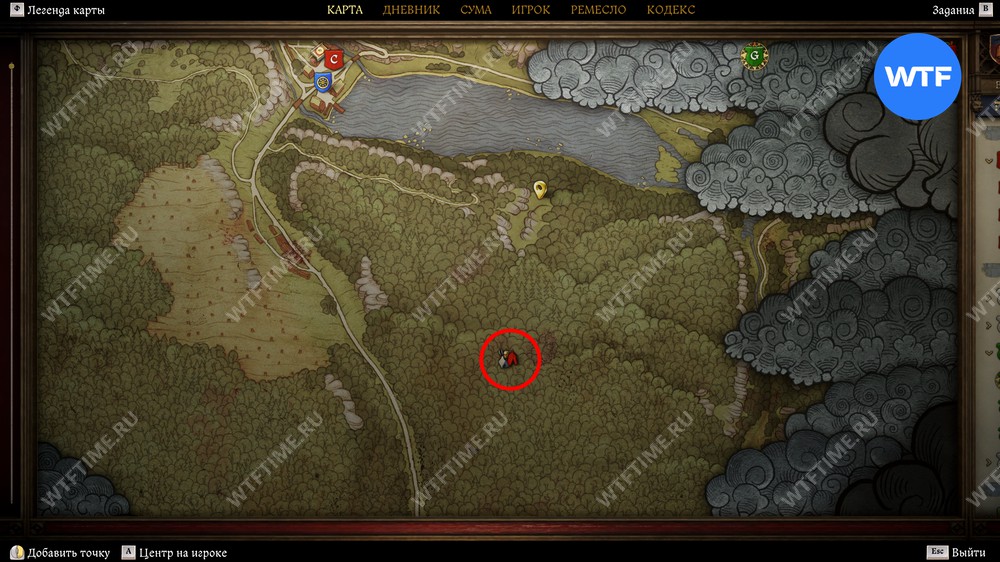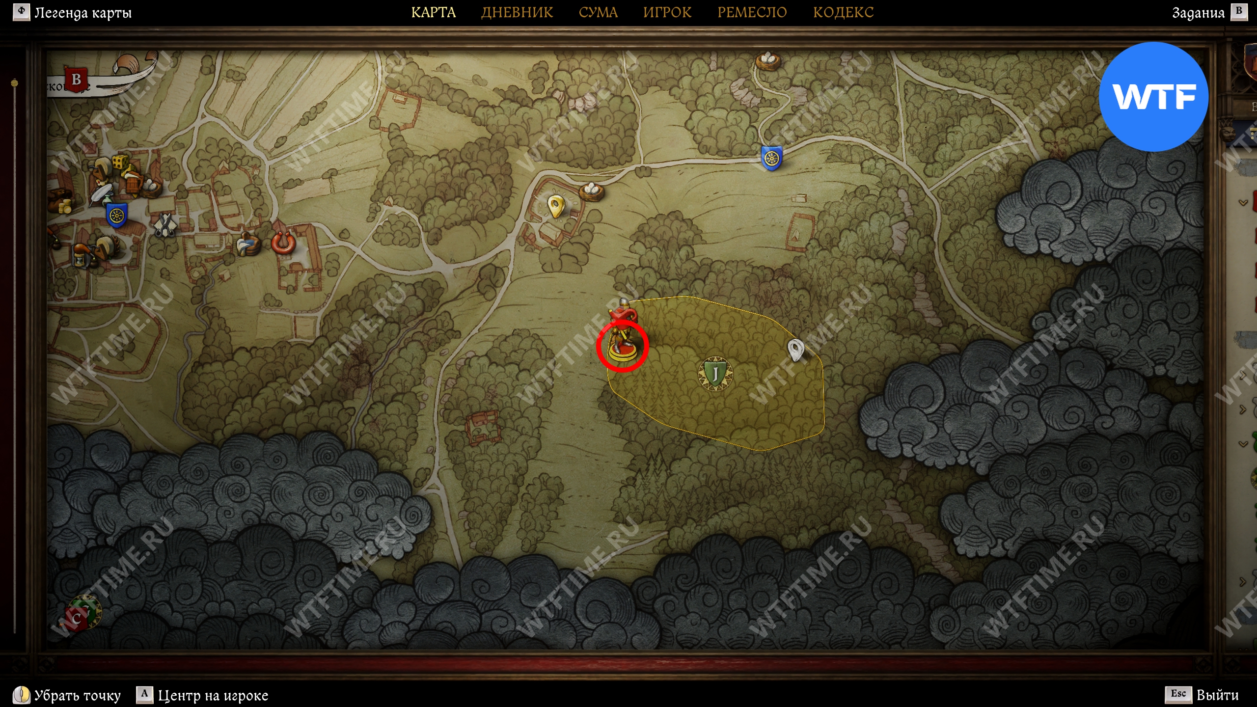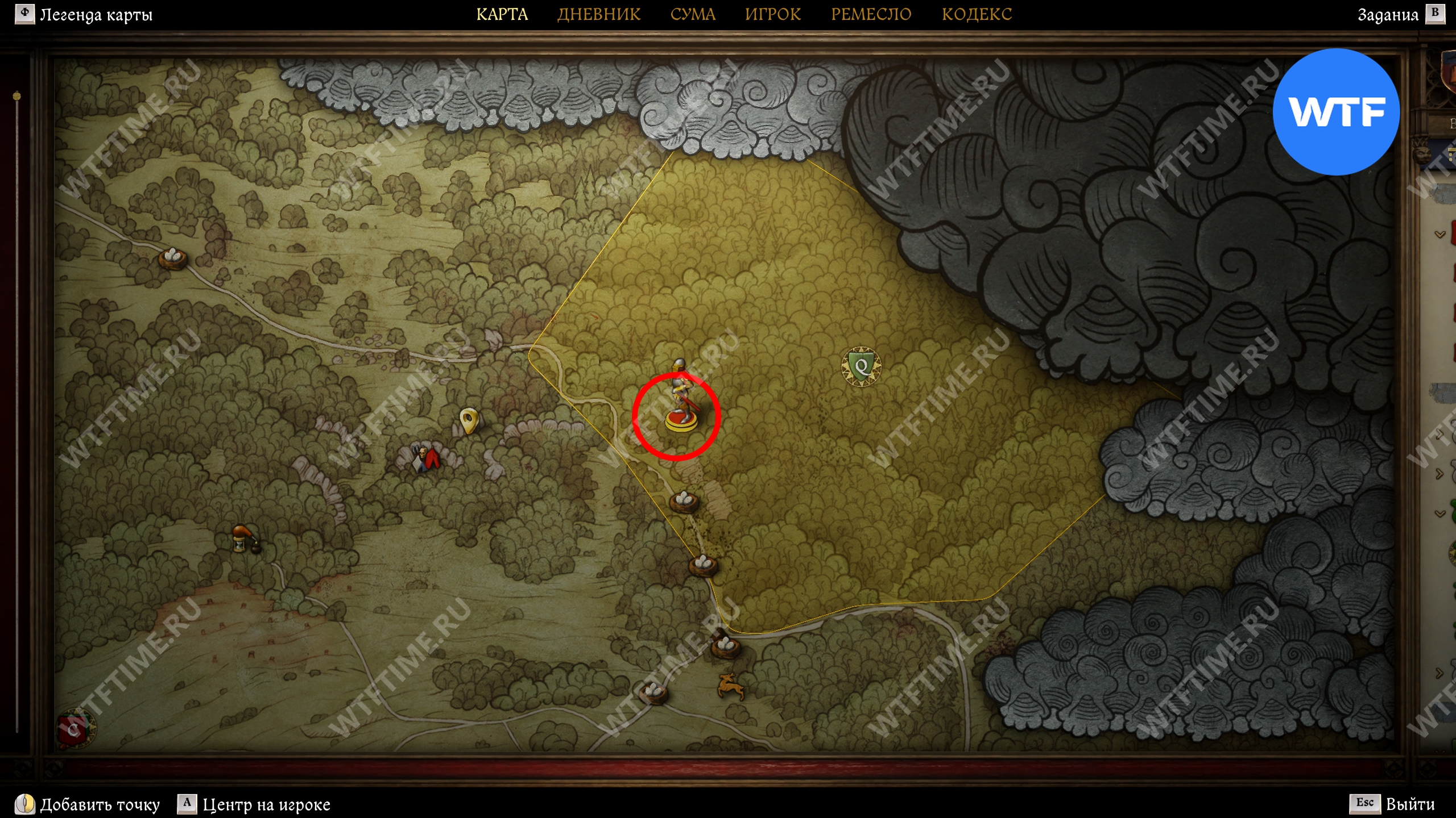 Первый дичекрад, которого вам нужно найти, разбил лагерь недалеко от Вежицкого пруда. Здесь и далее вы будете получать достаточно большую область поисков, прочесать которую самостоятельно может быть затруднительно.