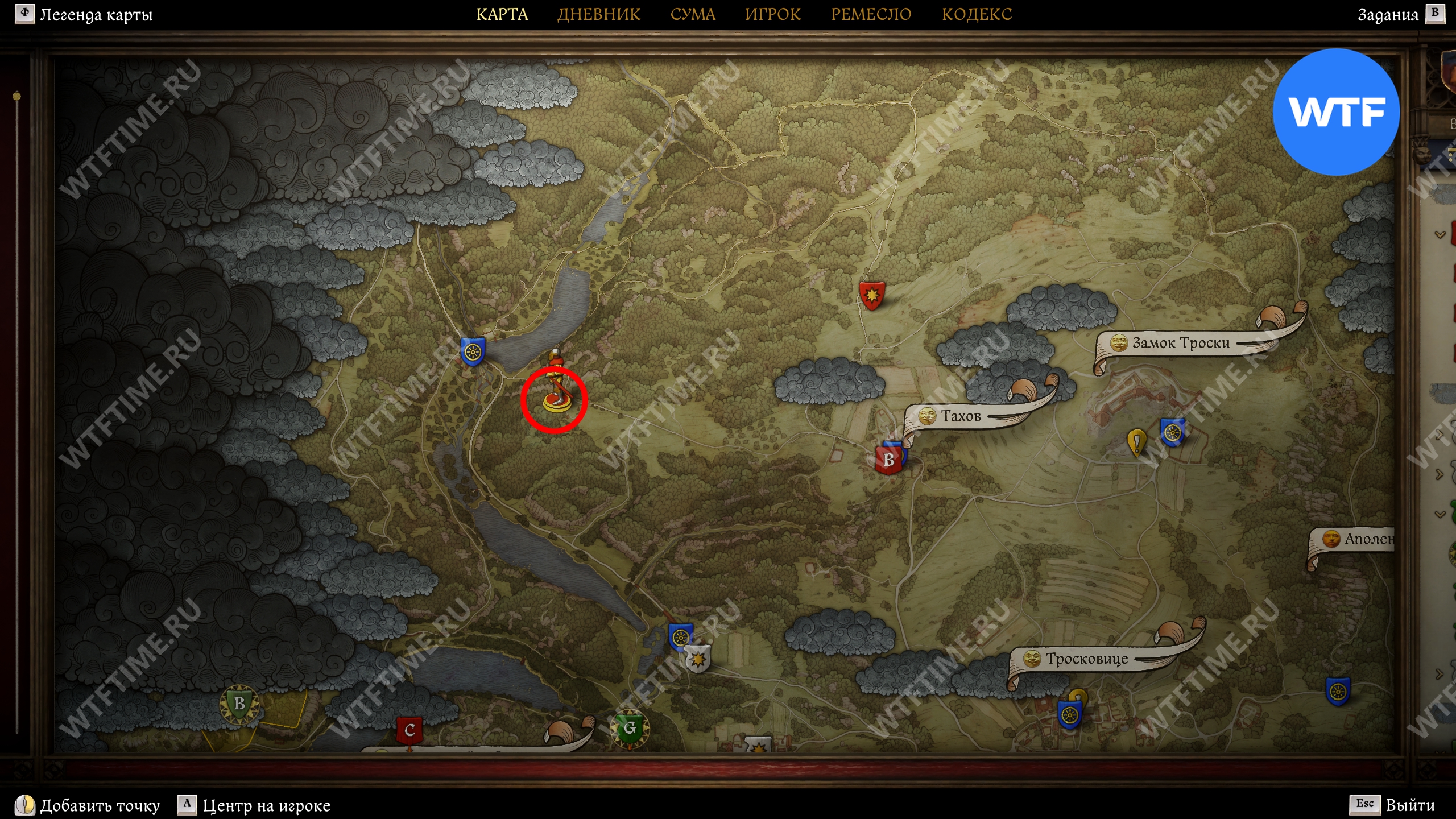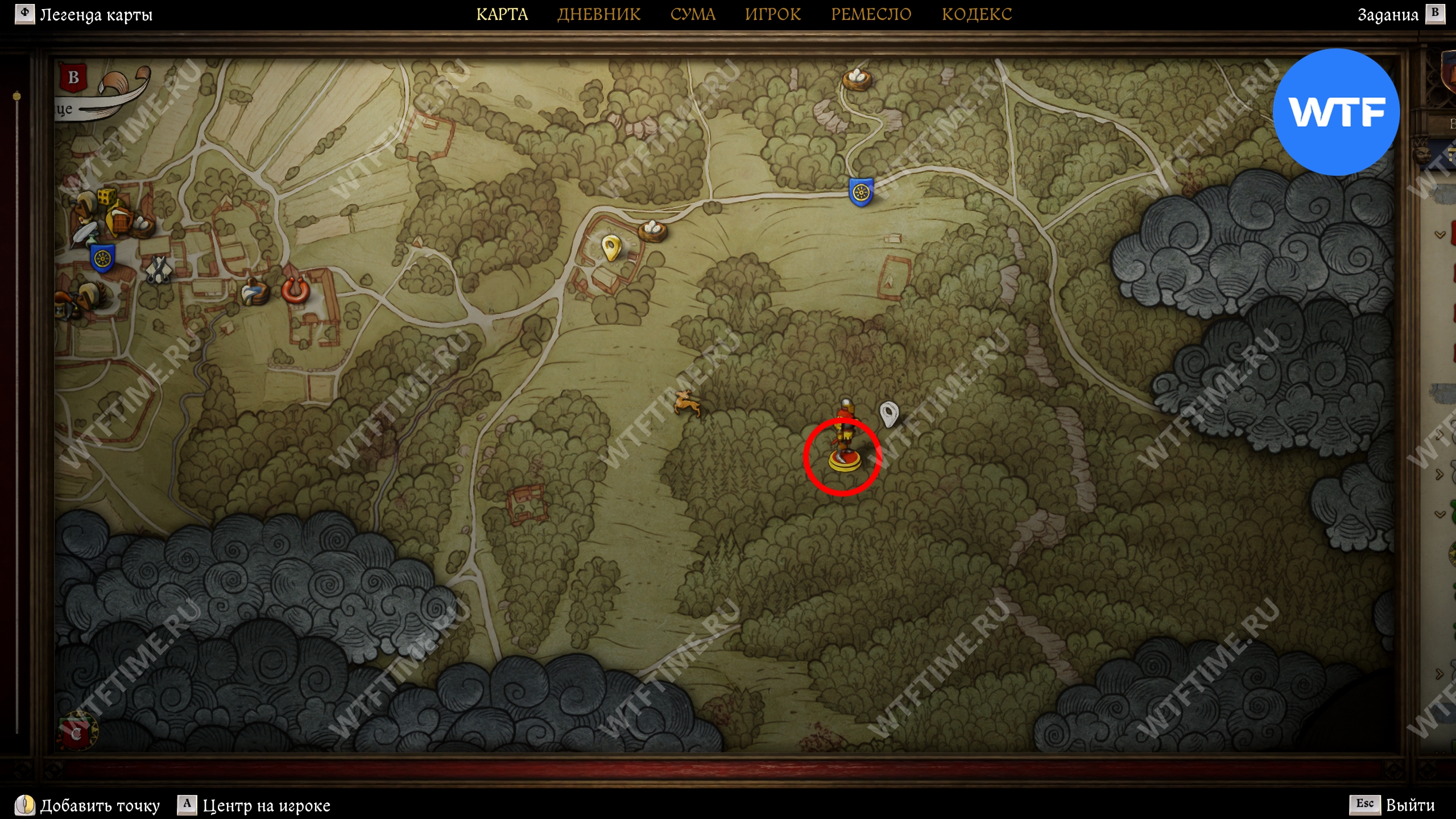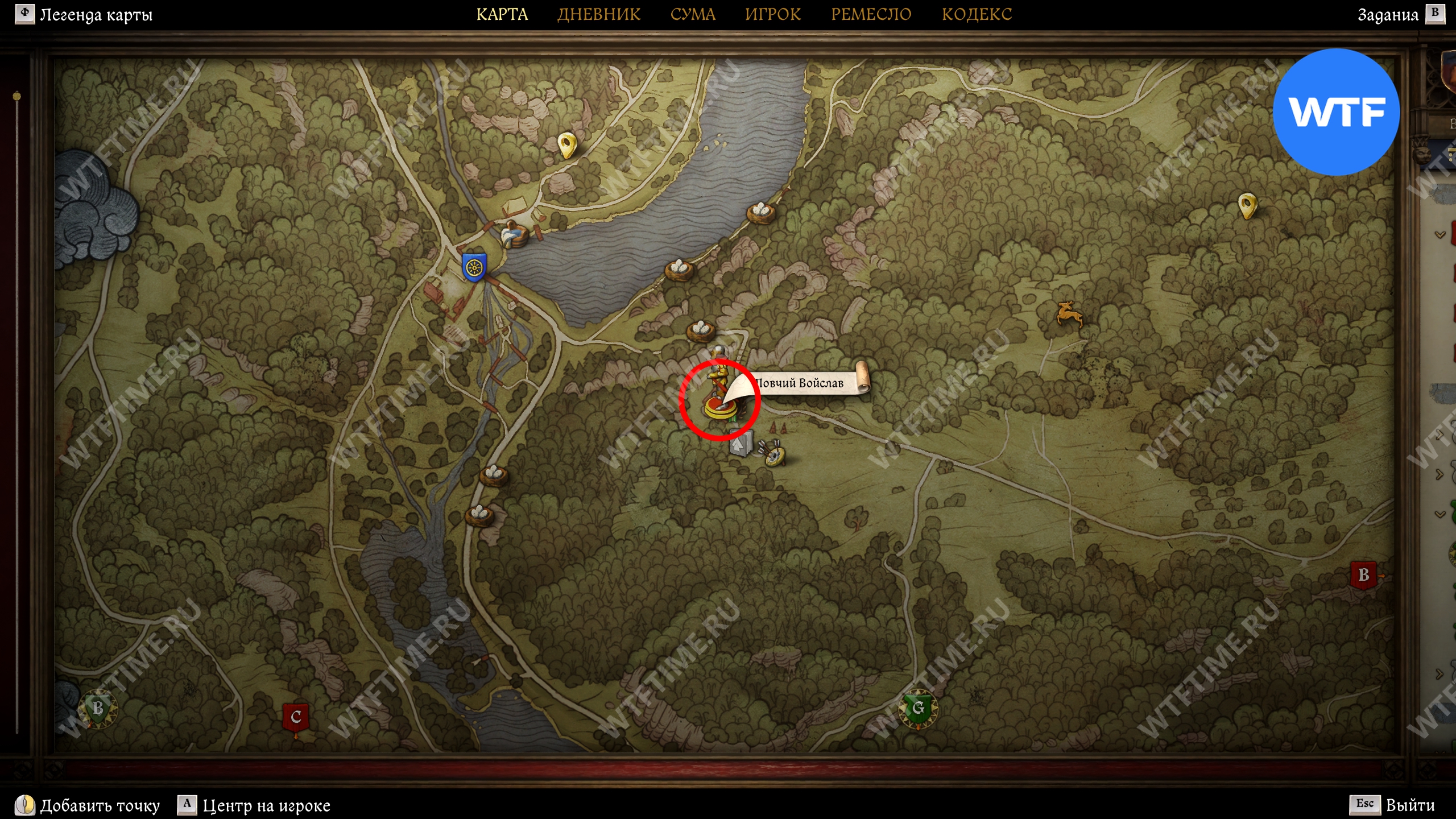 Первый дичекрад, которого вам нужно найти, разбил лагерь недалеко от Вежицкого пруда. Здесь и далее вы будете получать достаточно большую область поисков, прочесать которую самостоятельно может быть затруднительно.