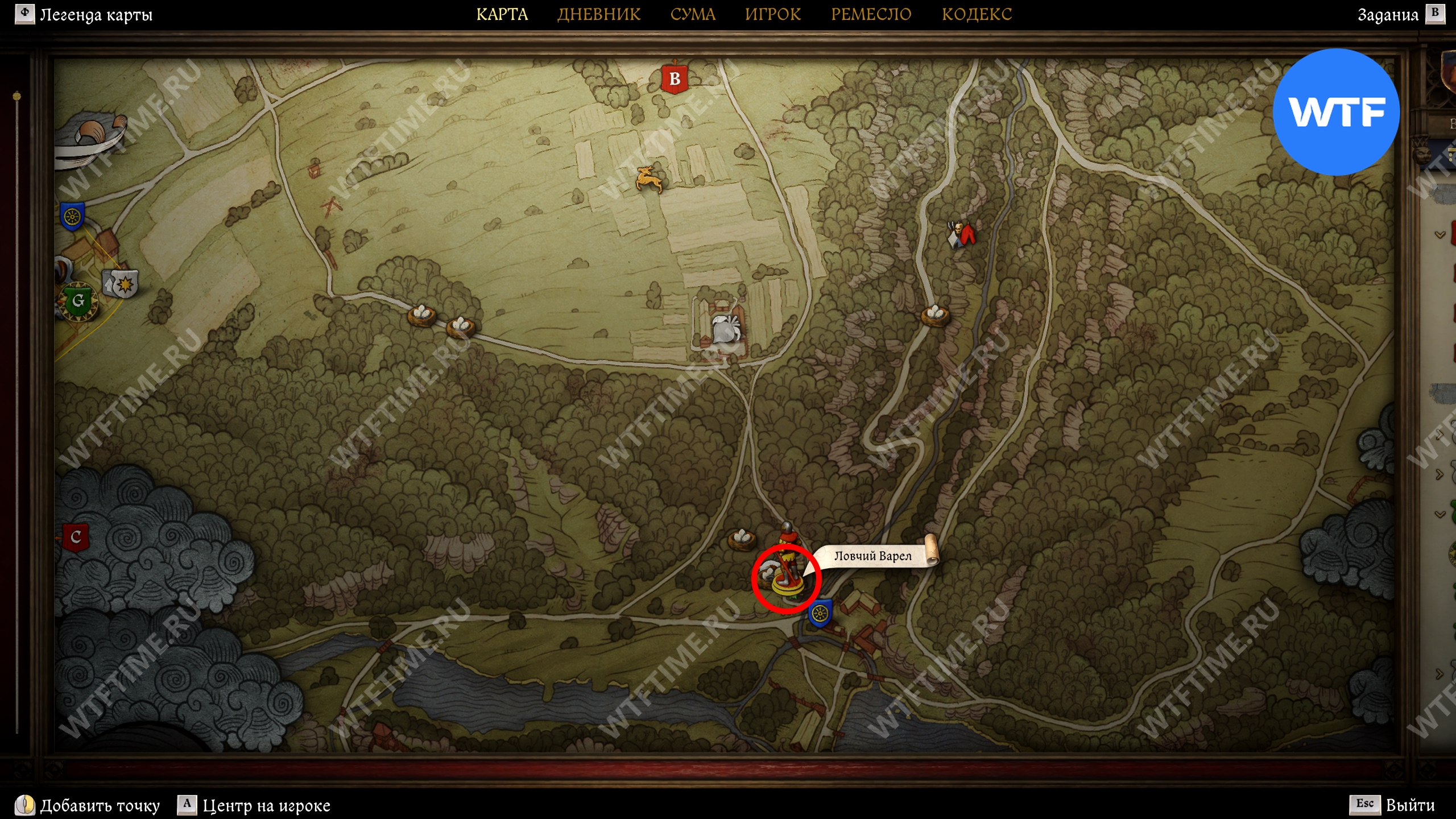 Прежде чем отправляться на поиски следующего лагеря дичекрадов, вы можете заглянуть к мельнику Крейзелю. Он отметит на вашей карте свое Логово и скажет, что искать нужно к югу от него.