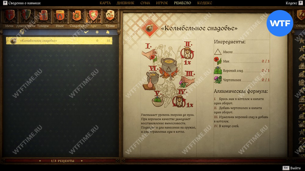 Первый ингредиент — вороний глаз — можно просто купить у местного аптекаря Эммериха за несколько грошей. Остальных ингредиентов из списка у него в продаже, к сожалению, не будет.