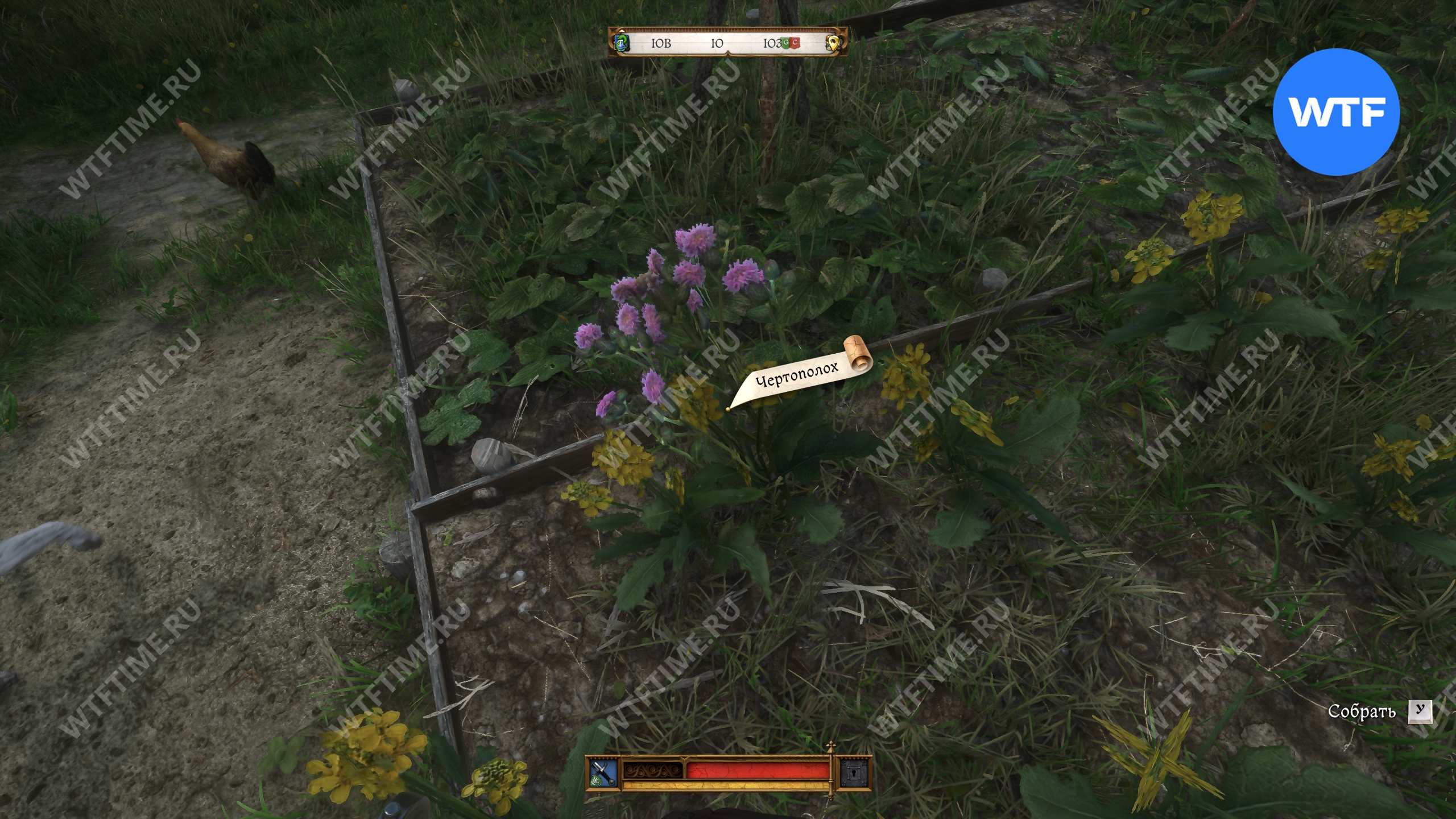 Выйдя из лавки аптекаря, поверните налево и пройдите через его сад. Сразу за оградой вы увидите клумбу с желтыми цветами, на которой растет одинокий фиолетовый кустик — это и есть чертополох. Еще два кустика есть под деревом чуть дальше.