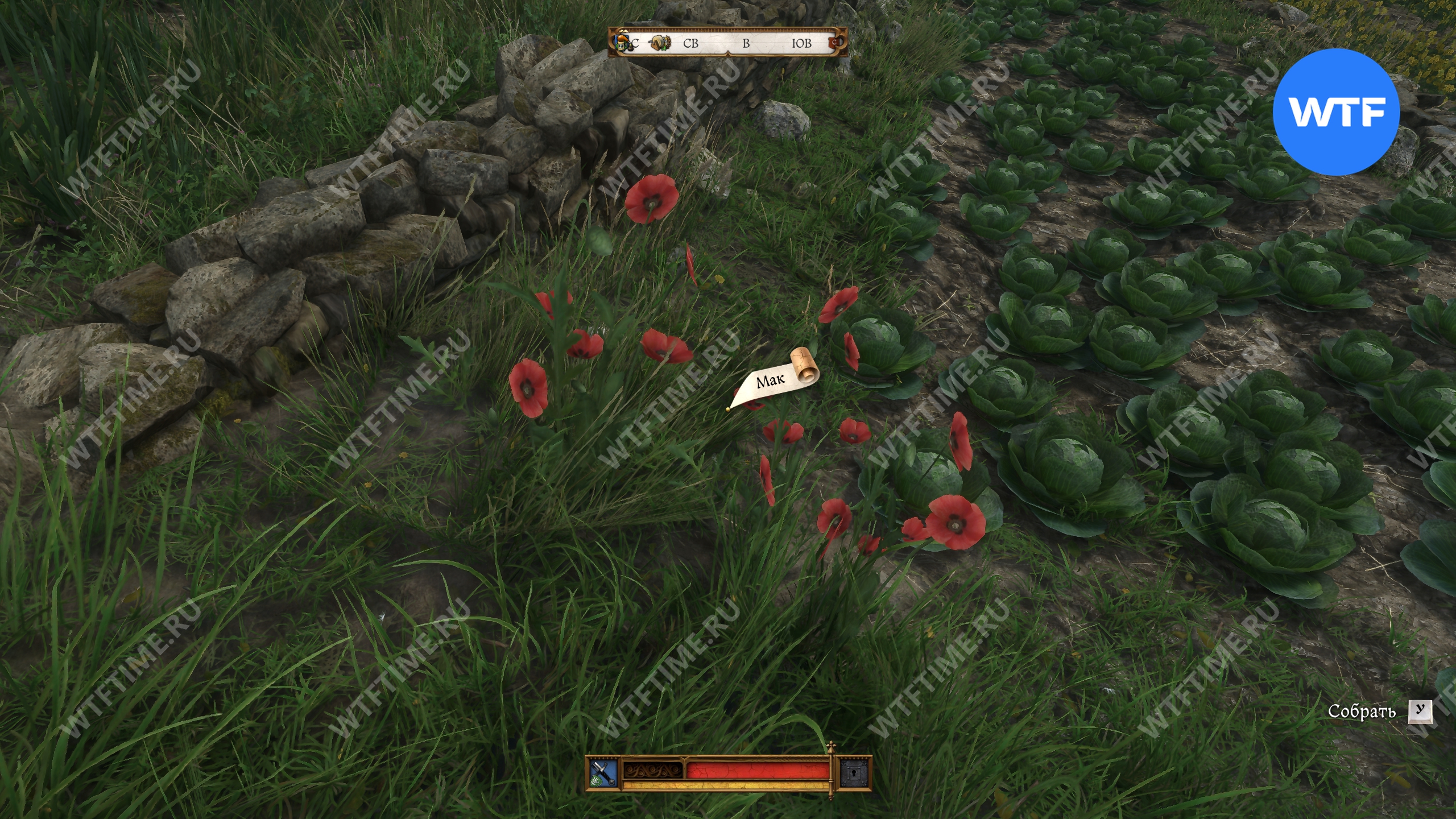 Мак также можно собрать на поле неподалеку: если выйти из аптеки, то вам налево, немного вперед и снова налево. У него ярко-красные цветы, так что видно должно быть издалека.