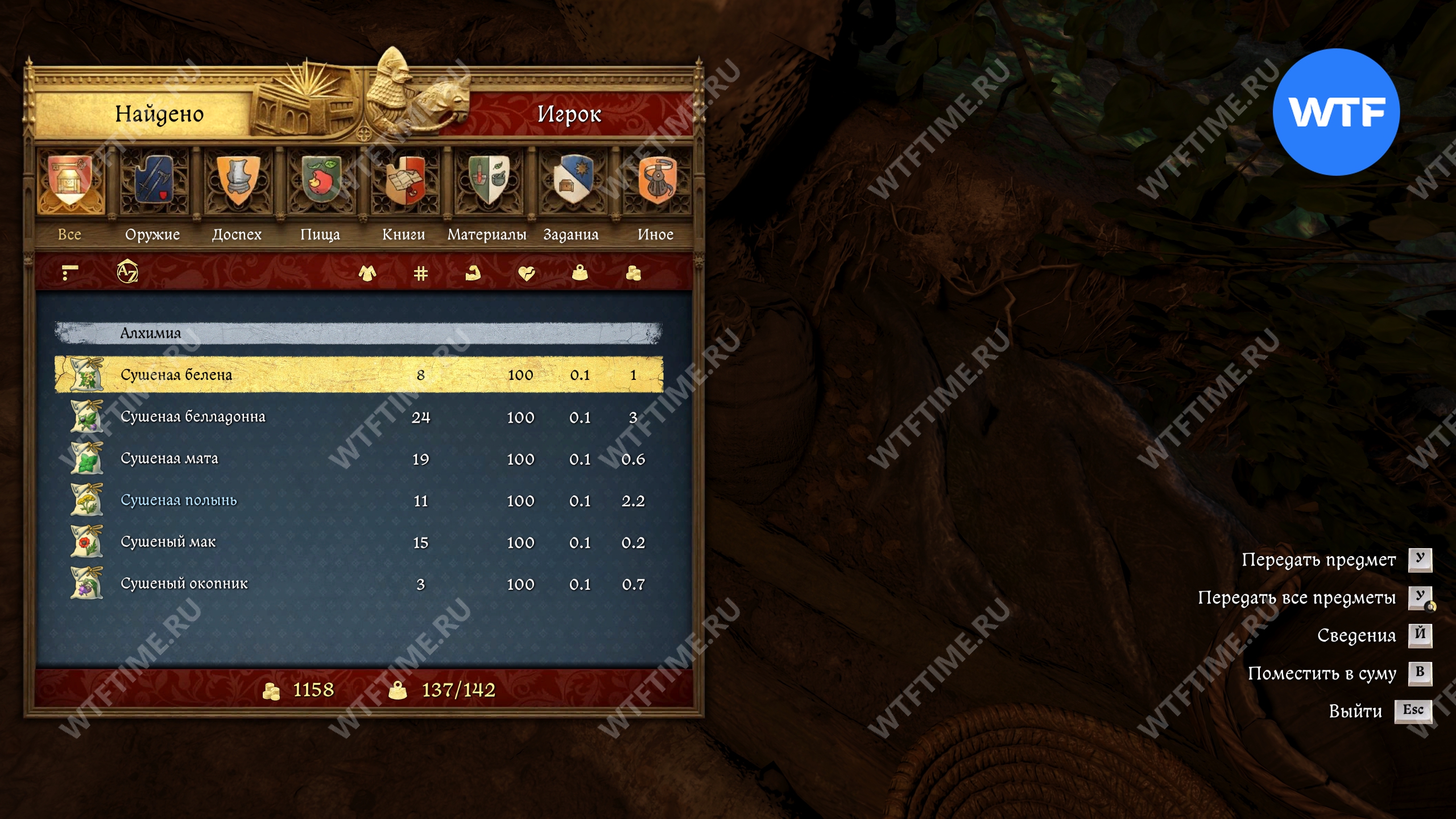 Также обыщите мешок, стоящий в углу, чтобы забрать оттуда коллекцию сушеных трав. Особую ценность здесь представляет белладонна, которая является одним из ингредиентов для создания Спасительного шнапса:
