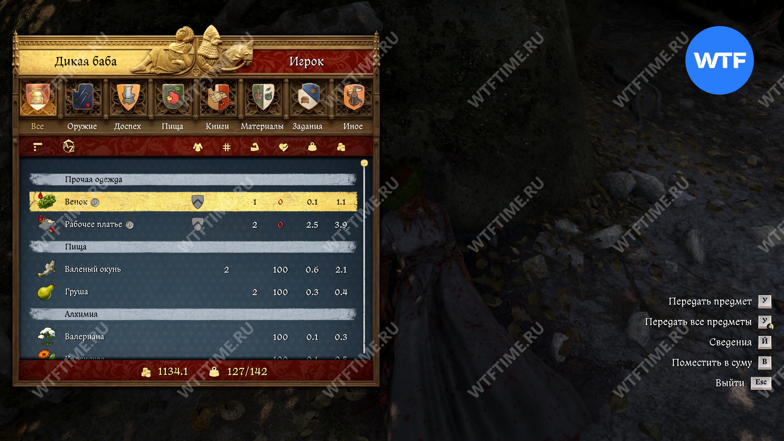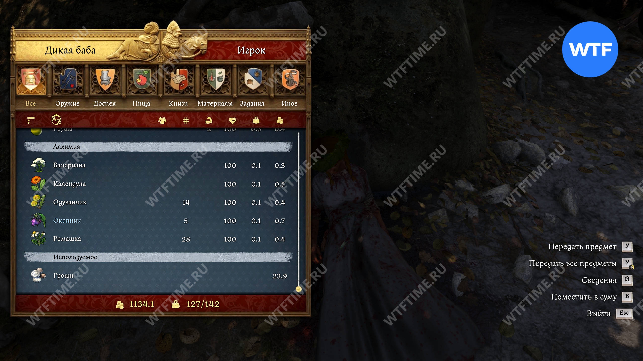 Прямо перед входом в хижину вы найдете тело убитой дикой бабы, которая больше всего похожа на самую обычную травницу. С её тела помимо венка, рабочего платья, денег и еды можно забрать целый букет ингредиентов: