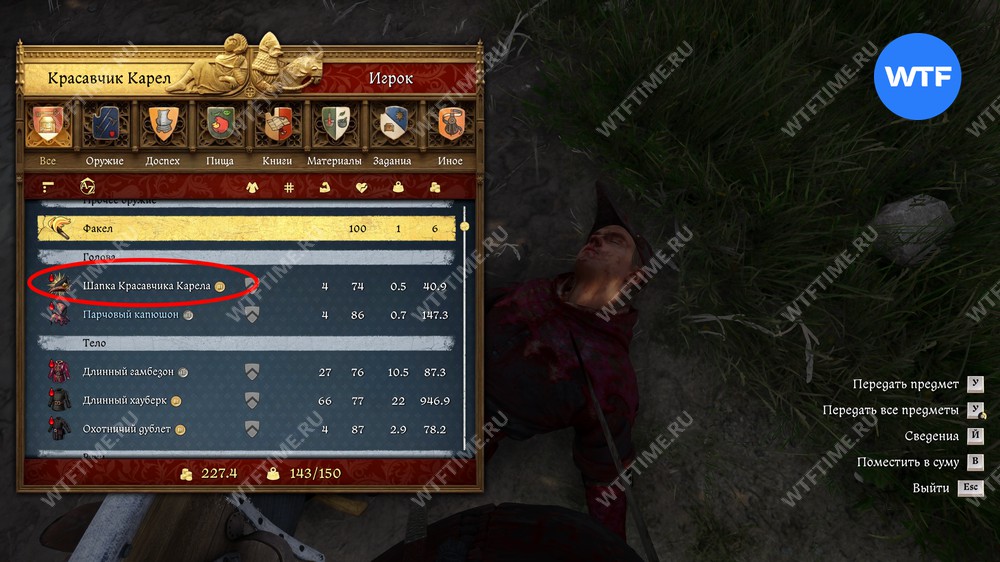 Когда вы разберетесь с Красавчиком Карелом, остальные углежоги разбегутся. Заберите с его тела все что посчитаете нужным, но главное — не забудьте про шапку. В карманах вы также найдете ключи, которые открывают местные сундуки.