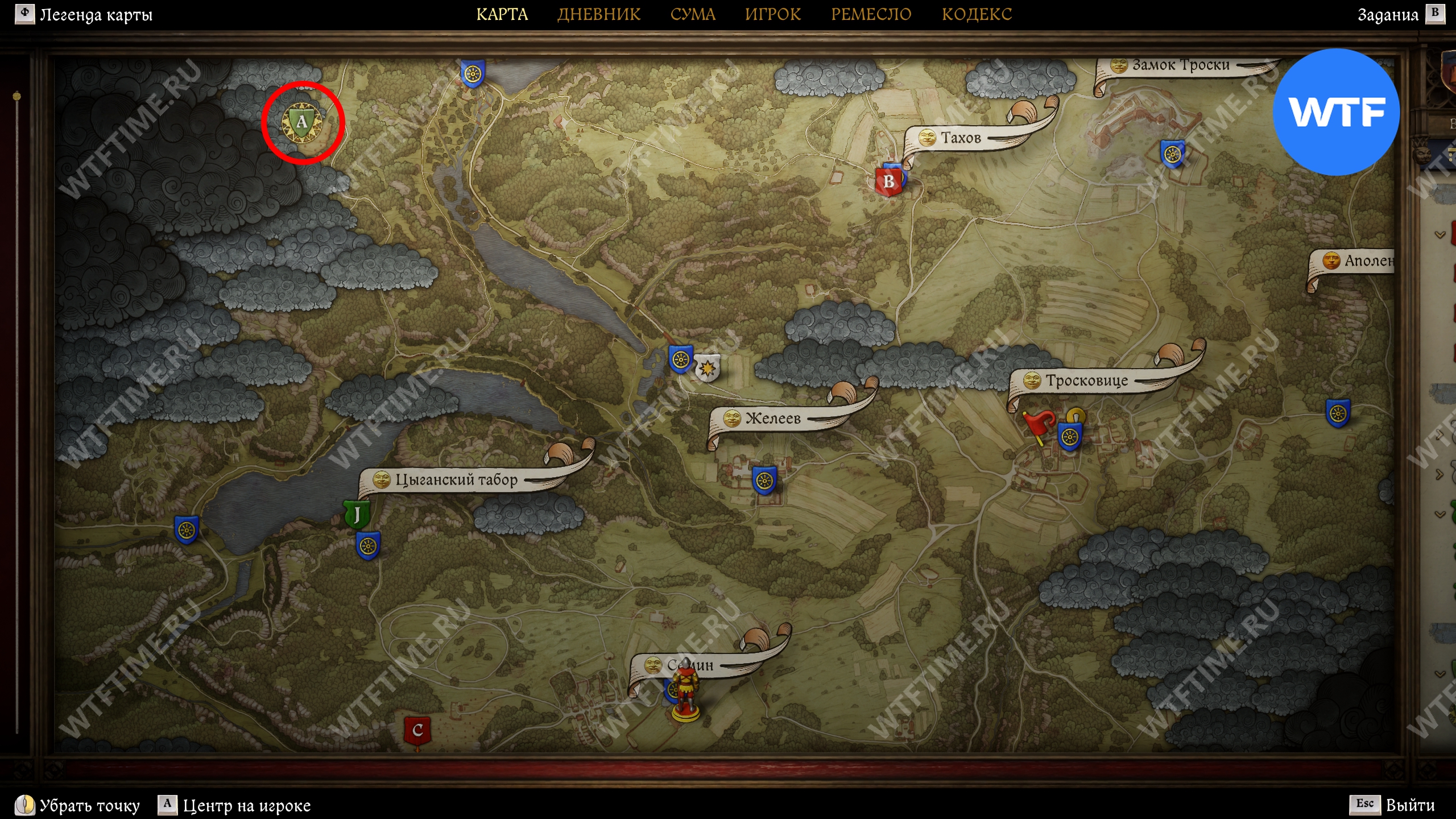 Найти Рудого можно в Семине к юго-западу от Тросковице. Днем он носит красные доспехи и находится где-то в крепости. Вечером броня сменяется на зеленый плащ и искать его стоит где-то в округе, либо спящим в караульном помещении.