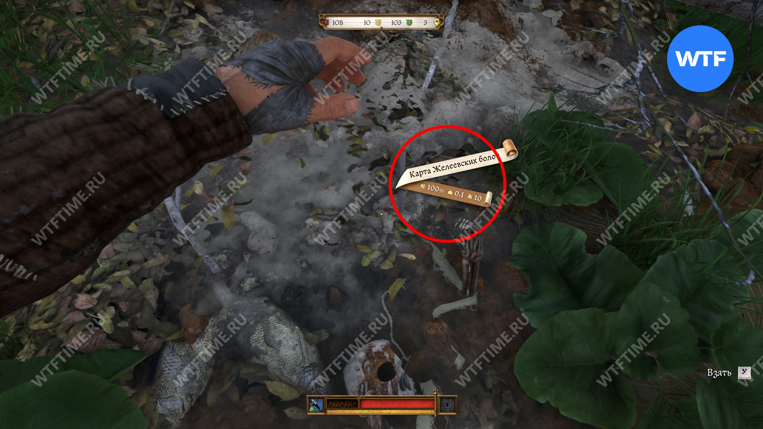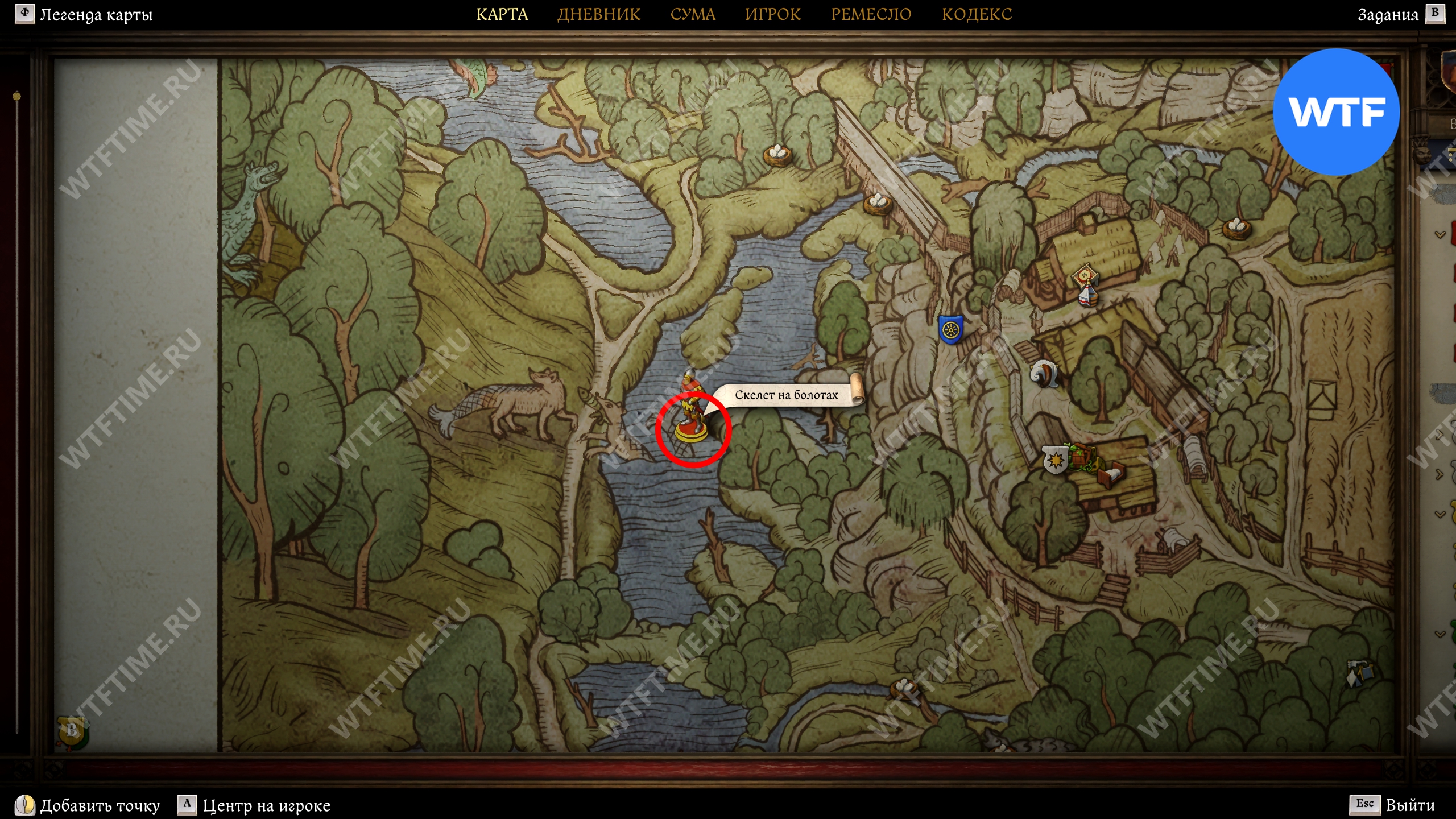 Карта Желеевских болот в Kingdom Come Deliverance 2: скелет на болотах